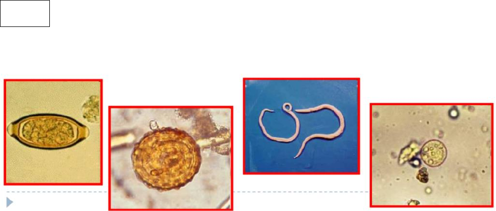 AULA PRÁTICA 1 (28/08/20) MÉTODOS LABORATORIAIS PARA IDENTIFICAÇÃO DE PROTOZOÁRIOS E HELMINTOS Materiais biológicos para pesquisa de parasitos Fezes; Sangue; Tecidos; Secreções... Pesquisa de enteroparasitos e suas formas evolutivas eliminadas nas fezes (trofozoítos e cistos de protozoários; ovos e larvas de helmintos); O correto diagnóstico e identificação dos parasitos depende da amostra entregue ao laboratório. Coleta e conservação: • Coletar pontos alternados do material fecal; • Mais adequado: 3 amostras em dias alternados (evita-se períodos falso-negativos); • O ideal é o processamento das fezes recém coletadas. • Conservação em geladeira (5 a 10oC) – evita putrefação das fezes (até 48hs); • Utilizar recipiente seco, limpo e de boca larga previamente identificado com: nome e idade do paciente, data e hora da coleta. Conservantes mais utilizados • 3 partes do conservante para 1 parte de fezes: • Formol ou formalina 10%: conserva ovos e larvas de helmintos e cistos e oocistos de protozoários; • MIF (Mercúrio cromo, Iodo, Formol): conserva ovos e larvas de helmintos e cistos e oocistos de protozoários; • SAF (acetato de sódio, ácido acético e formol): conservam cistos e trofozoítos. Métodos de processamento de amostras fecais para pesquisa de protozoário e helmintos – Exame parasitológico de Fezes (EPF) EXAME MACROSCÓPICO Observar a consistência, odor e cor da amostra Verificar a presença de MUCO, SANGUE, proglotes de Taenia e vermes adultos EXAME MICROSCÓPICO o Métodos Qualitativos (Ausência e Presença): Exame direto a fresco Exame após concentração: Sedimentação espontânea ou por centrifugação e flutuação Pesquisa de Larvas FEZES Carol Seixas o Métodos Quantitativos (n° de ovos/g de fezes): Kato-Katz Stoll Simões Barbosa EXAME DIRETO A FRESCO o Aplicação: pesquisa de trofozoítos de protozoários que se evidenciam por sua motilidade. Outras formas (cistos, ovos e larvas) podem ser detectadas quando presente em grande quantidade. o Princípio: diagnóstico rápido nas infecções maciças permitindo observar os trofozoítos vivos. o Amostra: colhida de preferência no próprio laboratório, pois devem ser examinadas em, no máximo, 30min após a emissão. o Técnica: Colocar 1 ou 2 gotas de solução salina em uma lâmina de microscopia; Com um palito de sorvete, pegar uma pequena porção de fezes e diluir na salina; Cobrir a preparação com uma lamínula; Observar ao microscópio óptico. • Examinar 3 lâminas em caso negativo; • Difícil visualização dos detalhes estruturais identificação coloração (hematoxilina férrica). TÉCNICAS DE CONCENTRAÇÃO Muitas vezes o número de formas parasitárias eliminadas nas fezes é pequeno técnicas de enriquecimento para concentrá-las aumenta a sensibilidade; TÉCNICAS SEDIMENTAÇÃO (OU MÉTODO HOFFMANN) - Possibilitam o aumento do número de elementos parasitários recuperação de cistos de protozoários, ovos e larvas de helmintos; - Este método é recomendado para a pesquisa de ovos pesados, como o do Shistosoma mansoni, revelando também ovos e larvas de outros helmintos. Mesmo não sendo ideal para a pesquisa de cistos, estes poderão ser observados, especialmente se for corado a preparação. - Consiste basicamente na mistura das fezes com água, sua filtração por uma gaze cirúrgica (ou parasitofiltro) e manutenção em repouso, formando uma consistente sedimentação dos restos fecais ao fundo do cálice. Uma alíquota do sedimento é pipetada sobre lâmina, é feito um esfregaço e observado em microscópio. Este método detecta a presença de ovos nas fezes, principalmente os pesados, após coloração com lugol. Materiais: - Cálice de sedimentação - Gaze - Palito de madeira - Frasco de borrel ou copos descartáveis - Lâmina e lamínula - Pipetas pasteur - Lugol TÉCNICAS FLUTUAÇÃO Aplicação: Pesquisa de cistos de protozoários e alguns ovos de helmintos considerados leves. • Eliminação de detritos fecais. • Identificação do parasito mesmo quando presente em pequeno número maior sensibilidade. Princípio: Concentração através da flutuação dos elementos parasitários na superfície de um líquido de alta densidade > solução de sulfato de zinco (ZnSO4) a 33% com densidade 1,180 g/ml. - São encontrados Schistosoma, larvas de Strongyloides, assim como cistos de protozoários PESQUISA DE LARVAS Larvas de Strongyloides stercoralis e de Ancilostomídeos; Princípio: Termo-hidrotropismo positivo das larvas associado à ação da gravidade; Amostra: Não refrigerar e não utilizar conservantes. Expressão do Resultado do EPF - Todos os parasitos, patogênicos ou não, deverão ser reportados nos seus nomes científicos, dando ênfase ao estágio de diagnóstico identificado. Resultado: positivo ou negativo Protozoários: Ausência ou Presença Helmintos: Ausência ou Presença • Detecção de protozoários e helmintos sanguíneos Plasmodium spp. e Trypanosoma cruzi (protozoários), Wuchereria bancrofti (helminto); Métodos: - Direto a fresco; - Esfregaços corados (camada delgada e gota espessa); - Reação em cadeia da polimerase (PCR)... • Pesquisa de protozoários (Leishmania spp., Trypanosoma cruzi, Toxoplasma gondii) e helmintos intestinais; SANGUE TECIDOS • Pesquisa de protozoários (Trichomonas vaginalis) e larvas de helmintos em secreções pulmonares; • Direto a fresco, esfregaços corados; SECREÇÕES