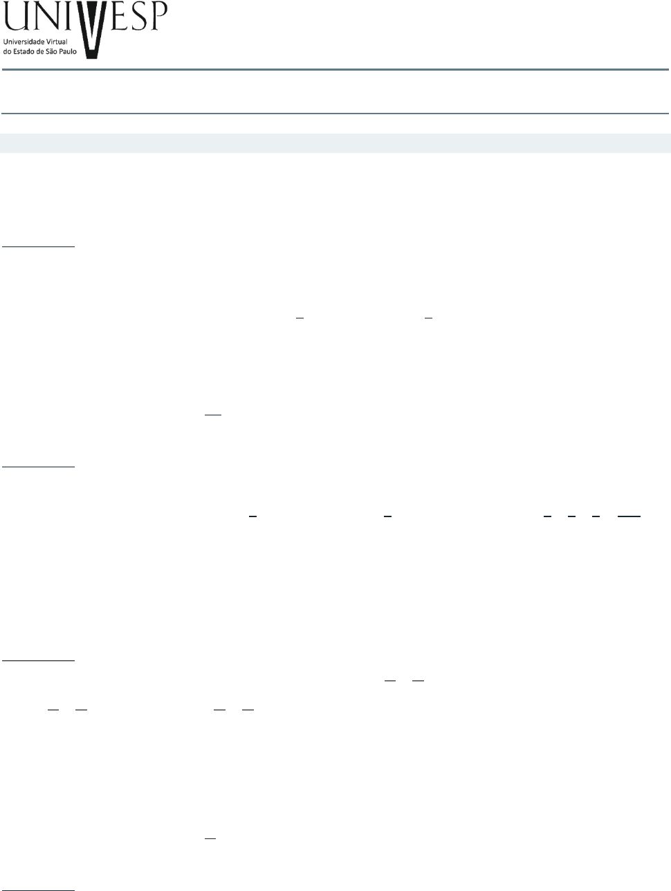 GABARITO DISCIPLINA MCA003 - Cálculo III APLICAÇÃO 30/06/2020 CÓDIGO DA PROVA P003 QUESTÕES OBJETIVAS Questão 1.1 A resposta correta é: 0. Justificativa A região de integração é simétrica em relação ao eixo y e o integrado é ímpar em x. Portanto, a integral se anula. ∬𝑥2 𝐷 𝑦𝑑𝑥𝑑𝑦 = ∫ ∫ 𝑦 1−𝑥2 0 1 −1 x𝑑𝑦𝑑𝑥 = 1 2 ∫ (1 − 𝑥2)2 1 −1 𝑥𝑑𝑥 = 1 2 ∫ (𝑥5 − 2𝑥3 + 𝑥) 1 −1 𝑑𝑥 = 0 Questão 1.2 A resposta correta é: Opção 1 - 8 105 Justificativa Note que: ∬𝑥2 𝐷 𝑦𝑑𝑥𝑑𝑦 = ∫ ∫ 𝑦 1−𝑥2 0 1 −1 𝑥2𝑑𝑦𝑑𝑥 = 1 2 ∫ (1 − 𝑥2)2 1 −1 𝑥2𝑑𝑥 = 1 2 ∫ (𝑥6 − 2𝑥4 + 𝑥2) 1 −1 𝑑𝑥 = 1 7 − 2 5 + 1 3 = 8 105 Questão 1.3 A resposta correta é: 0 Justificativa O campo vetorial em questão é conservativo, já que �⃗� = 𝛻 ( 𝑥2 2 + 𝑦2 2 ). �⃗� = 𝛻 ( 𝑥2 2 + 𝑦2 2 ), em que 𝜑(𝑥, 𝑦) = 𝑥2 2 + 𝑦2 2 é sua função potencial. Como o caminho é simples e fechado, seja 𝛾(𝑡) a função que descreve C, para qualquer ponto inicial 𝑎 e final 𝑏 temos 𝛾(𝑎) = 𝛾(𝑏), e como o campo é conservativo, então ∮ �⃗� 𝐶 ⋅ 𝑑𝑠 = 𝜑(𝛾(𝑏)) − 𝜑(𝛾(𝑎)) = 0. Questão 1.4 A resposta correta é: Opção 5 - 32 5 Justificativa O sólido de Steinmetz como o da figura é a interseção dos cilindros 𝑦2 + 𝑧2 ≤ 1e 𝑥2 + 𝑧2 ≤ 1. Vemos que nos planos (x,z) e (y,z), ambas regiões de integração correspondem ao interior de uma circunferência de raio 1 e, portanto, os limites de integração serão: 𝑥2 ≤ 1 + 𝑧2e 𝑦2 ≤ 1 − 𝑧2 A massa total será, então: ∭𝜌𝑑𝑣𝑜𝑙 = ∫ ∫ ∫ (𝑧2 − 2𝑧 + 1) √1−𝑧2 −√1−𝑧2 √1−𝑧2 −√1−𝑧2 1 −1 𝑑𝑥𝑑𝑦𝑑𝑧 = 4∫ (𝑧2 − 2𝑧 + 1) 1 −1 (1 − 𝑧2)𝑑𝑧 = 4∫ (𝑧2 + 1) 1 −1 (1 − 𝑧2)𝑑𝑧 = 4∫ (1 − 𝑧4) 1 −1 𝑑𝑧 = 32 5 sendo que, no último passo, eliminamos os termos de potência ímpares em z pela simetria dos limites da integração, i.e., usamos explicitamente que: ∫ 𝑧 1 −1 (1 − 𝑧2)𝑑𝑧 = 0. QUESTÕES DISSERTATIVAS Questão 2 Seja o campo vetorial de ℝ3, dado por �⃗� = 𝛻 × �⃗⃗⃗� , sendo �⃗⃗⃗� = 𝑦𝑘. Determine o fluxo de �⃗� através da esfera de raio unitário, centrada na origem, e orientada com seu vetor normal apontando para fora. RESOLUÇÃO Tal fluxo é nulo. Do teorema de Gauss, sabemos que o fluxo em questão será: ∯ �⃗� 𝜕𝑆 ⋅ 𝑛𝑑𝑎 = ∭ 𝛻 𝑆 ⋅ �⃗� 𝑑𝑣 = ∭ 𝛻 ⋅ (𝛻 × �⃗⃗⃗� ) 𝑆 = 0, pois 𝛻 ⋅ �⃗� = 𝛻 ⋅ (𝛻 × �⃗⃗⃗� ) = 0, para qualquer campo vetorial �⃗⃗⃗� . Para o caso em particular desta questão, temos: �⃗� = 𝛻 × �⃗⃗⃗� = || 𝑖 𝑗 𝑘 𝜕 𝜕𝑥 𝜕 𝜕𝑦 𝜕 𝜕𝑧 0 0 𝑦 || = �̂� em que se vê que 𝛻 ⋅ �⃗� = 0. Rubricas | critérios de correção O estudante deveria ser capaz de responder essa questão sem fazer nenhum cálculo, apenas invocando o teorema de Gauss e a propriedade de divergência nula de campos rotacionais. Caso use o teorema de Gauss, mas falhe ao reconhecer que 𝛻 ⋅ �⃗� = 0, deve ganhar 1.0 ponto. Caso escreva corretamente a integral do fluxo, não use o teorema de Gauss e erre o resultado final, deve ganhar 0.5 ponto. Questão 3 Calcule: ∬(4 − 𝑥2 − 𝑦2) 𝐷 𝑑𝑥𝑑𝑦 sendo D a região interior do contorno delimitado por arcos de circunferências e segmentos de reta como mostrado abaixo: RESOLUÇÃO Em coordenadas polares, a região de integração corresponde à 0 ≤ 𝜃 ≤ 𝜋 2 e 1 ≤ 𝑟 ≤ 2 com 𝑥 = 𝑟𝑐𝑜𝑠𝜃, 𝑦 = 𝑟𝑠𝑒𝑛𝜃 e 𝑑𝑥𝑑𝑦 = 𝑟𝑑𝑟𝑑𝜃. A integral em questão, em coordenadas polares, é ∬(4 − 𝑥2 − 𝑦2) 𝐷 𝑑𝑥𝑑𝑦 = ∫ ∫ (4 − 𝑟2) 2 1 𝜋 2 0 𝑟𝑑𝑟𝑑𝜃 = 𝜋 2 ∫ (4𝑟 − 𝑟3) 2 1 𝑑𝑟 = 𝜋 2 (2𝑟2 − 𝑟4 4 ) 1 2 = 9𝜋 8 . Rubricas | critérios de correção Os passos usuais para a solução do problema são: 1) Parametrizar corretamente a região D (0.5 ponto). 2) Fazer a mudança de variáveis corretamente na integral (0.5 ponto). 3) Resolver corretamente a integral final (1.0 ponto).