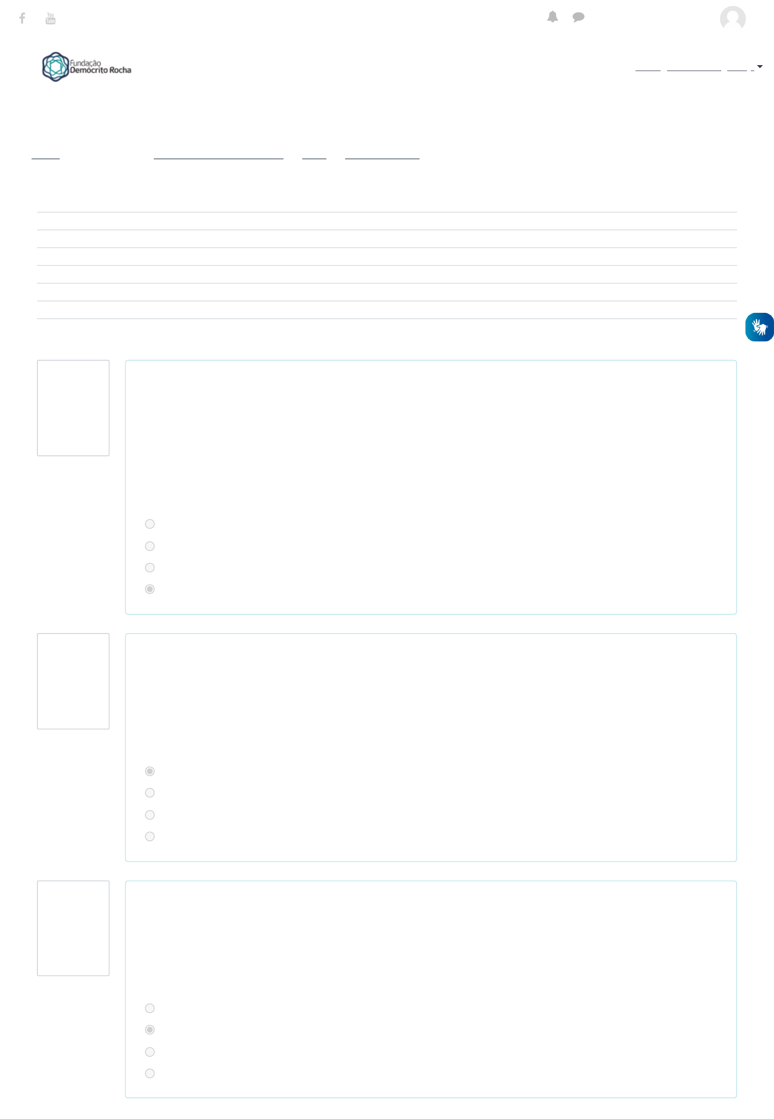 Painel / Meus cursos / Literatura Cearense - 2020.1 / Geral / PROVA ON-LINE Literatura Cearense Questão 1 Correto Atingiu 1,0 de 1,0 Questão 2 Correto Atingiu 1,0 de 1,0 Questão 3 Incorreto Atingiu 0,0 de 1,0 Iniciado em quarta, 9 Set 2020, 21:00 Estado Finalizada Concluída em quarta, 9 Set 2020, 22:31 Tempo empregado 1 hora 31 minutos Notas 18,0/20,0 Avaliar 9,0 de um máximo de 10,0(90%) Comentários Parabéns!!! Você foi aprovado(a)! Valeu a dedicação aos estudos! Leia e analise o texto abaixo: “Se tomarmos por critério as evidências ________, de registros históricos, levando em conta o critério da produção _______, concordamos com Dolor Barreira e Sânzio de Azevedo, que defendem os _________ como sendo os primeiros registros da literatura no Ceará, pois não há registros anteriores a essas manifestações”. Assinale a alternativa que completa corretamente a lacuna do texto: Escolha uma: a. Simbólicas, escrita, Oiteiros. b. Subjetivas, orais, Oiteiros. c. Materiais, estética, Oiteiros. d. Materiais, escrita, Oiteiros. Antônio Candido, em A formação da Literatura Brasileira (edição original de 1959) nos a�rma que “é uma tradição [...] isto é, transmissão de algo entre os homens, e o conjunto de elementos transmitidos, formando padrões que se impõem ao pensamento ou ao comportamento, e aos quais somos obrigados a nos referir, para aceitar ou rejeitar. (1981, p. 24). Portanto, para Cândido, sem tradição não há literatura como: Escolha uma: a. Fenômeno de civilização. b. Fenômeno regional. c. Fenômeno nacional. d. Fenômeno estético. Além da lírica ‘verdejante’ e do folclore, Juvenal Galeno também se manifestou em outro gênero literário no qual expôs sua posição contrária aos desmandos políticos daquela época. Em qual gênero essa expressão de inconformismo tem lugar: Escolha uma: a. Literatura infantil. b. Artigos jornalísticos. c. Teatro/drama. d. Livros de medicina natural. Português - Brasil (pt_br) Jucinaldo Souza Azevedo https://cursos.fdr.org.br/my/ https://cursos.fdr.org.br/course/view.php?id=31 https://cursos.fdr.org.br/course/view.php?id=31#section-0 https://cursos.fdr.org.br/mod/quiz/view.php?id=1263 https://cursos.fdr.org.br/ https://www.facebook.com/fundacaodemocritorocha https://www.youtube.com/c/Funda%C3%A7%C3%A3oDem%C3%B3critoRochaOficial Questão 4 Correto Atingiu 1,0 de 1,0 Questão 5 Correto Atingiu 1,0 de 1,0 Questão 6 Correto Atingiu 1,0 de 1,0 A idealização do indígena foi vista, posteriormente, como dissociada da realidade e gerou várias críticas ao movimento romântico. Marque a alternativa que melhor sintetiza a revisão por que os escritores românticos passaram: Escolha uma: a. A distância entre o modelo romântico indianista e o índio real revelava uma visão distorcida e ilusória dos indígenas, movida pela imaginação. b. Os escritores não tinham compromisso com as nações indígenas e estavam apenas preocupados com sua promoção nos meios intelectuais. c. Politicamente era interessante criar uma imagem bondosa do índio, para justi�car os massacres cometidos ou a conversão forçada ao cristianismo. d. A mestiçagem ocorrida entre índios e brancos enfraquecia as futuras gerações de brasileiros. Foi tipógrafo, publicou seus primeiros poemas nos jornais Zé�ro e A Revolução. Faleceu no Rio de Janeiro. O Barão de Studart descreve poeticamente sua passagem: “...no oceano em calma, da Baía da Guanabara, sepultou para sempre as tempestades de sua alma a�ita e revoltada.” O texto acima faz referência a que poeta romântico? Escolha uma: a. Barbosa de Freitas. b. Joaquim de Sousa. c. Álvares de Azevedo. d. Juvenal Galeno. Sobre o Byronismo, marque “V” para Verdadeiro e “F” para falso. ( ) George Gordon Byron, ou simplesmente Lord Byron, é um poeta britânico e uma das �guras mais in�uentes do Romantismo no mundo. “Don Juan” e “A peregrinação de Childe Harold”, poemas narrativos, são duas de suas publicações mais conhecidas. ( ) Joaquim de Sousa foi jocosamente apelidado de “Byron da Canalha”, pelas características byronianas de sua poética e pelo acento satânico de seus versos. ( ) Barbosa de Freitas escreveu o poema “Dom Juan Cacique”; pelo próprio título do poema percebe-se a in�uência direta de Byron. ( ) O poema intitulado “À minha irmã”, de autoria de Joaquim de Sousa, é considerado por Sânzio de Azevedo um dos melhores poemas do autor e de todo o Romantismo cearense. A alternativa que contém a resposta correta, observando-se a sequência de cima para baixo é: Escolha uma: a. F, F, V, V. b. V, V, V, F. c. F, F, F, V. Português - Brasil (pt_br) Jucinaldo Souza Azevedo https://cursos.fdr.org.br/ https://www.facebook.com/fundacaodemocritorocha https://www.youtube.com/c/Funda%C3%A7%C3%A3oDem%C3%B3critoRochaOficial Questão 7 Correto Atingiu 1,0 de 1,0 Questão 8 Correto Atingiu 1,0 de 1,0 Questão 9 Correto Atingiu 1,0 de 1,0 Questão 10 C d. V, V, V, V. Conforme estudado neste fascículo em relação aos periódicos que circularam no século XIX, relacione-os de acordo com suas respectivas agremiações: (1) – A Quinzena ( ) Padaria Espiritual (2) – O Pão ( ) Academia Cearense (3) – Iracema ( ) Clube Literário (4) – Revista da Academia Cearense ( ) Centro Literário Escolha uma: a. 3,4,1,2. b. 2,4,1,3. c. 1,4,3,2. d. 2,4,3,1. Autora que se destacou na literatura cearense no século XIX, escreveu o romance A divorciada e foi a primeira mulher a lecionar na Escola Normal do Ceará, na época em que somente os homens eram os lentes das instituições educacionais: Escolha uma: a. Ana Facó. b. Adília de Albuquerque Moraes. c. Francisca Clotilde. d. Alba Valdez. Sobre o romance Aves de arribação, de Antônio Sales, veri�que se a informação de cada tópico é verdadeira (V) ou falsa (F): ( ) Tem semelhanças com o realismo de Madame Bovary, de Gustave Flaubert. ( ) Faz um estudo psicossocial do provinc