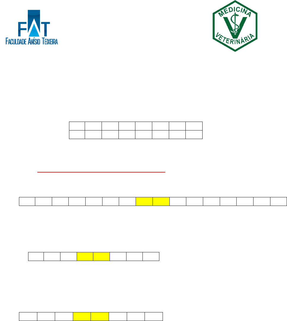 FACULDADE ANÍSIO TEIXEIRA Curso de Medicina Veterinária Disciplina: Estatística Básica Professora: Eva Clícia de Jesus Almeida EXERCÍCIOS DE FIXAÇÃO SEPARATRIZES - QUARTIS: Resolução 1) Os níveis de acido úrico, em (mg/100 ml), encontrados nos exames bioquímicos de sangue de 16 animais de uma certa raça em um laboratório, são os seguintes: a) Determine o Q1, Q2 e Q3 RESOLUÇÃO: Amostra de tamanho par: 1ª mediana: Calcular a média dos dois valores do meio: Q2 = (5,7+6,0) / 2 = 5,85 2ª mediana: Calcular a média dos dois valores do meio. Considerando o limite inferior ao Q2: Q1 = (5,2+5,5) / 2 = 5,35 3ª mediana: Calcular a média dos dois valores do meio. Considerando o limite superior ao Q2: Q3 = (6,4 + 7,0) /2 = 6,7 2) Considere os seguintes dados referentes ao peso (em Kg) de 40 animais: 4,3; 6,8; 9,2; 7,2; 8,7; 8,6; 6,6; 5,2; 8,1; 10,9; 7,4; 4,5; 3,8; 7,6; 6,8; 7,8; 8,4; 7,5; 10,5; 6,0; 7,7; 8,1; 7,0; 8,2; 8,4; 8,8; 6,7; 8,2; 9,4; 7,7; 6,3; 7,7; 9,1; 7,8; 7,9; 7,9; 9,4; 8,2; 6,7; 8,2; a) Determine o intervalo dos 25% menores pesos e o intervalo dos 25% maiores pesos da amostra. 4,0 5,0 9,0 5,2 5,5 5,5 7,0 5,7 6,0 6,0 8,0 6,4 5,5 7,5 6,2 5,1 4,0 5,0 5,1 5,2 5,5 5,5 5,5 5,7 6,0 6,0 6,2 6,4 7,0 7,5 8,0 9,0 4,0 5,0 5,1 5,2 5,5 5,5 5,5 5,7 6,0 6,0 6,2 6,4 7,0 7,5 8,0 9,0 b) Se tivesse que apresentar um valor tal que 50% dos animais tivessem um peso inferior ou igual a esse valor, qual apresentaria? RESOLUÇÃO: Amostra de tamanho par: 1) Ordenar os dados 2) Obter Q2 – 1ª mediana Q2 = (7,8+7,8) / 2 = 7,8 3) Obter Q1 – 2ª mediana – considerando limite inferior ao Q2 Q1 = (6,8 + 6,8) / 2 = 6,8 4) Obter Q3 – 3ª mediana– considerando limite superior ao Q2 Q1 = (8,4 + 8,4) / 2 = 8,4 a) 3,8 – 6,8 Intervalo dos 25% menores pesos 10,9 – 8,4 Intervalo dos 25% maiores pesos b) 7,8 50% dos pesos estão acima e 50% abaixo 3,8 4,3 4,5 5,2 6,0 6,3 6,6 6,7 6,7 6,8 6,8 7,0 7,2 7,4 7,5 7,6 7,7 7,7 7,7 7,8 7,8 7,9 7,9 8,1 8,1 8,2 8,2 8,2 8,2 8,4 8,4 8,6 8,7 8,8 9,1 9,2 9,4 9,4 10,5 10,9 3,8 4,3 4,5 5,2 6,0 6,3 6,6 6,7 6,7 6,8 6,8 7,0 7,2 7,4 7,5 7,6 7,7 7,7 7,7 7,8 7,8 7,9 7,9 8,1 8,1 8,2 8,2 8,2 8,2 8,4 8,4 8,6 8,7 8,8 9,1 9,2 9,4 9,4 10,5 10,9