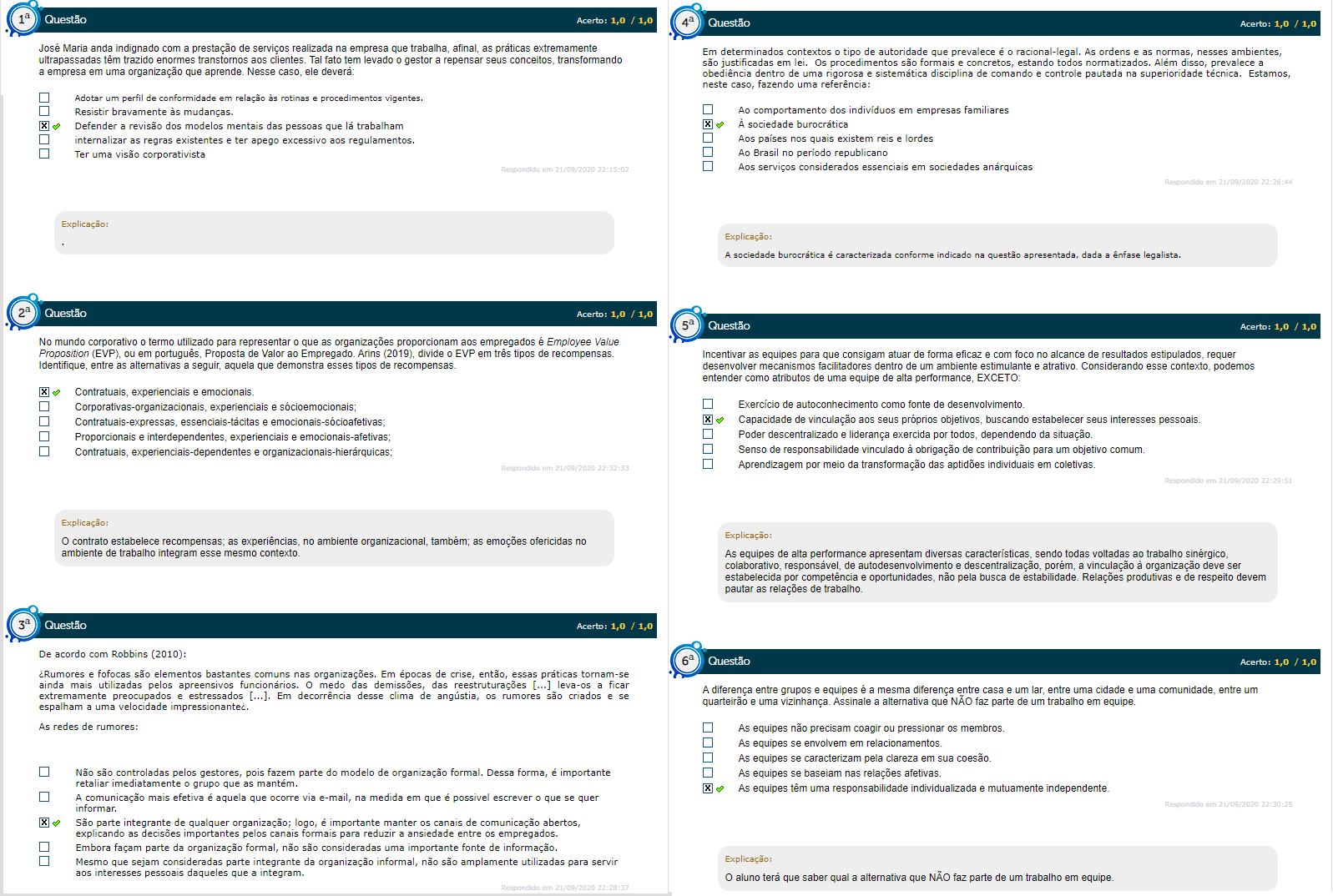 De acordo com Robbins (2010): Rumores e fofocas utilizadas sao comuns nas organizacoes. Em epocas de crise e reestruturacoes, essas praticas levam os funcionarios a ficarem extremamente preocupados e estressados. Assinale a alternativa que NAO faz parte de um trabalho em equipe. As equipes nao precisam coagir ou pressionar membros. As equipes se envolvem em relacionamentos. As equipes se caracterizam pela clareza em sua coesao. As equipes se baseiam nas relacoes afetivas. A comunicacao mais efetiva e aquela que ocorre via e-mail.