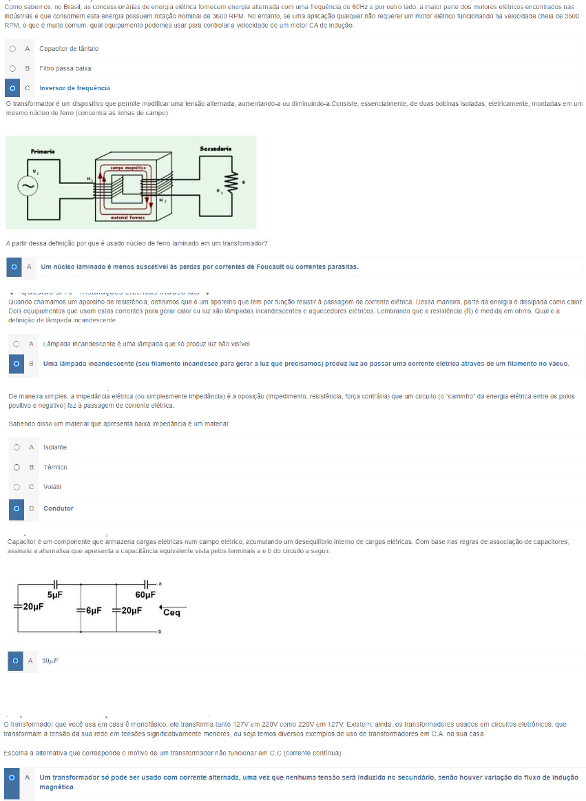 INSTALAÇÕES ELÉTRICAS INDUSTRIAIS PROVA OBJETIVA 2020