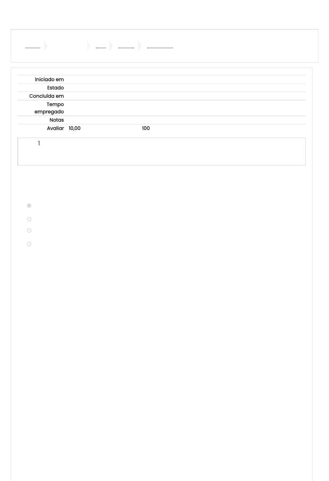 Painel Meus cursos SMT AULA 2 Atividades Iniciado em quarta, 23 Set 2020, 15:37 Estado Finalizada Concluída em quarta, 23 Set 2020, 15:38 Tempo empregado 1 minuto 1 segundo Notas 5,00/5,00 Avaliar 10,00 de um máximo de 10,00(100%) Questão 1 Correto Atingiu 1,00 de 1,00 Qual a NR que trata da Segurança em instalações e serviços em eletricidade? Escolha uma: a. NR-10 b. NR-6 c. NR-9 d. NR-18 Sua resposta está correta. A resposta correta é: NR-10. http://ead.cephas.org.br/my/ http://ead.cephas.org.br/course/view.php?id=9 http://ead.cephas.org.br/course/view.php?id=9#section-2 http://ead.cephas.org.br/mod/quiz/view.php?id=470 Questão 2 Correto Atingiu 1,00 de 1,00 A NR–35 trata da questão de: Escolha uma: a. Trabalho em altura. b. Equipamentos de proteção individual. c. Programa de prevenção de Riscos Ambientais. d. Trabalhos a céu aberto. Sua resposta está correta. A resposta correta é: Trabalho em altura.. Questão 3 Correto Atingiu 1,00 de 1,00 Questão 4 Correto Atingiu 1,00 de 1,00 O que são as Normas Regulamentadoras (NRs), segundo o Ministério do Trabalho e Emprego? Escolha uma: a. São obrigações trabalhistas que devem ser cumpridas por uma das partes. b. São recomendações trabalhistas que podem ou não ser cumpridas por todo contratante e contratado. c. São obrigações trabalhistas que devem ser cumpridas por todo contratante e contratado. d. Não são obrigações trabalhistas que devem ser cumpridas. Sua resposta está correta. A resposta correta é: São obrigações trabalhistas que devem ser cumpridas por todo contratante e contratado.. Qual NR tem como objetivo estabelecer regras claras para que as empresas evitem acidentes e protejam a saúde do trabalhador, prevenindo as chamadas doenças ocupacionais. Escolha uma: a. NR–6 b. NR-18 c. NR-9 d. NR-10 Sua resposta está correta. A resposta correta é: NR–6. http://ead.cephas.org.br/mod/resource/view.php?id=439 Questão 5 Correto Atingiu 1,00 de 1,00 Em relação as principais obrigações do contratante e contratado, em relação à segurança no trabalho, é correto afirmar: I - O contratado deve utilizar os Equipamentos de Proteção Individual (EPI) oferecidos pelo empregador. II - O contratante deve oferecer os Equipamentos de Proteção Coletivas (EPC) e Equipamentos de Proteção Individual (EPI) a todos os funcionários e fiscalizar o seu uso. III - O contratante deve dar todos os treinamentos e capacitações necessários a seus funcionários em horário normal de trabalho e remunerá-los para isso. IV - O contratante deve cumprir e fazer cumprir as normas de segurança. Escolha uma: a. Somente as afirmativas II, III e IV são verdadeiras. b. Somente as afirmativas I, II e IV são verdadeiras. c. Somente as afirmativas I, III e IV são verdadeiras. d. Todas as afirmativas são verdadeiras. Sua resposta está correta. A resposta correta é: Todas as afirmativas são verdadeiras.. Atividade anterior ◄ Normas Regulamentadoras Seguir para... Próxima atividade CIPA Comissão Interna de Prevenção de Acidentes, SESMT (Serviço Especializado em Engenharia de Segurança e Medicina do Trabalho), PPRA (Programa de Prevenção de Riscos Ambientais) e PCMSO (Programa de Controle Médico e Saúde Ocupacional) ► Manter contato http://cephas.org.br ead.cephas@fundhas.org.br Resumo de retenção de dados Obter o aplicativo para dispositivos móveis http://ead.cephas.org.br/mod/resource/view.php?id=439&forceview=1 http://ead.cephas.org.br/mod/resource/view.php?id=443&forceview=1 http://cephas.org.br/ mailto:ead.cephas@fundhas.org.br https://www.facebook.com/FundhasSJC/ https://www.linkedin.com/in/cephas-sjc/ http://ead.cephas.org.br/admin/tool/dataprivacy/summary.php https://download.moodle.org/mobile?version=2020061501.13&lang=pt_br&iosappid=633359593&androidappid=com.moodle.moodlemobile