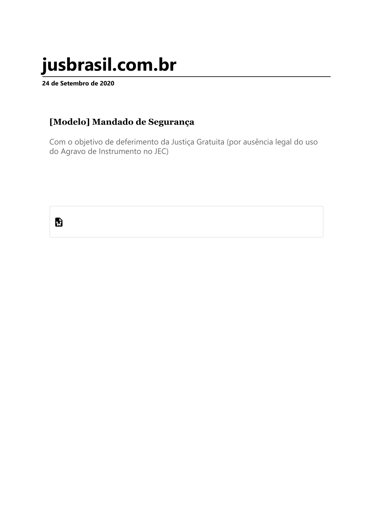 / jusbrasil.com.br 24 de Setembro de 2020 [Modelo] Mandado de Segurança Com o objetivo de deferimento da Justiça Gratuita (por ausência legal do uso do Agravo de Instrumento no JEC) [Modelo] Mandado de Segurança.docx DOWNLOAD COPIAR MODELO Entre no Jusbrasil para imprimir o conteúdo do Jusbrasil Acesse: https://www.jusbrasil.com.br/cadastro Disponível em: https://jhfrota.jusbrasil.com.br/modelos-pecas/737683681/modelo-mandado-de- seguranca