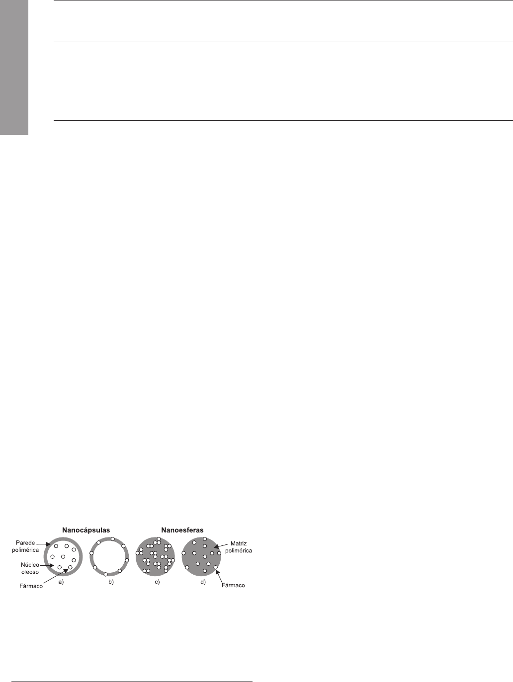 Quim. Nova, Vol. 26, No. 5, 726-737, 2003 R e v is ã o *e-mail: nanoc@farmacia.ufrgs.br CARACTERIZAÇÃO E ESTABILIDADE FÍSICO-QUÍMICA DE SISTEMAS POLIMÉRICOS NANOPARTICULADOS PARA ADMINISTRAÇÃO DE FÁRMACOS Scheila Rezende Schaffazick e Sílvia Stanisçuaski Guterres* Faculdade de Farmácia, Universidade Federal do Rio Grande do Sul, Av. Ipiranga 2752, 90610-000 Porto Alegre - RS Liane de Lucca Freitas e Adriana Raffin Pohlmann Instituto de Química, Universidade Federal do Rio Grande do Sul, Av. Bento Gonçalves, 9500, 91501-970 Porto Alegre - RS Recebido em 28/10/02; aceito em 27/2/03 PHYSICOCHEMICAL CHARACTERIZATION AND STABILITY OF THE POLYMERIC NANOPARTICLE SYSTEMS FOR DRUG ADMINISTRATION. Polymeric nanoparticle systems such as nanocapsules and nanospheres present potential applications for the administration of therapeutic molecules. The physico-chemical characteristics of nanoparticle suspensions are important pre-requisites of the success of any dosage form development. The purpose of this review is to present the state of the art regarding the physico-chemical characterization of these drug carriers, in terms of the particle size distribution, the morphology, the polymer molecular weight, the surface charge, the drug content and the in vitro drug release profiles. Part of the review is devoted to the description of the techniques to improve the stability of colloidal systems. Keywords: nanoparticles; polymers; characterization. INTRODUÇÃO O controle da liberação de fármacos em sítios de ação específi- cos, através da utilização de vetores, capazes de permitir a otimização da velocidade de cedência e do regime de dosagem das substâncias, tem sido uma área de intensa pesquisa nos últimos dez anos. Dentre os vetores, incluem-se as micropartículas e os sistemas coloidais (lipossomas e nanopartículas). As nanopartículas, constituídas por polímeros biodegradáveis, têm atraído maior atenção dos pesquisa- dores em relação aos lipossomas, devido às suas potencialidades te- rapêuticas, à maior estabilidade nos fluídos biológicos e durante o armazenamento1-3. As nanopartículas poliméricas são sistemas carreadores de fármacos que apresentam diâmetro inferior a 1 µm. O termo nano- partícula inclui as nanocápsulas e as nanoesferas, as quais diferem entre si segundo a composição e organização estrutural (Figura 1). As nanocápsulas são constituídas por um invólucro polimérico dis- posto ao redor de um núcleo oleoso, podendo o fármaco estar dissol- vido neste núcleo e/ou adsorvido à parede polimérica. Por outro lado, as nanoesferas, que não apresentam óleo em sua composição, são formadas por uma matriz polimérica, onde o fármaco pode ficar re- tido ou adsorvido2,4,5. Estes sistemas têm sido desenvolvidos visando inúmeras aplica- ções terapêuticas, sendo planejados, principalmente, para adminis- tração parenteral, oral ou oftálmica. Uma das áreas mais promisso- ras na utilização das nanopartículas é a vetorização de fármacos anticancerígenos2,6-8 e de antibióticos2,9,10, principalmente através de administração parenteral, almejando uma distribuição mais seletiva dos mesmos e, assim, um aumento do índice terapêutico. Com rela- ção à administração oral de nanopartículas, as pesquisas têm sido direcionadas especialmente à: a) diminuição dos efeitos colaterais de certos fármacos, destacando-se os antiinflamatórios não-esteróides (diclofenaco11,12, indometacina13-15), os quais causam freqüentemente irritação à mucosa gastrintestinal e b) proteção de fármacos degradáveis no trato gastrintestinal, como peptídeos16,17, proteínas8,18 e/ou hormônios19, aumentando a biodisponibilidade dos mesmos. Outro grande interesse nas nanopartículas é sua administração oftál- mica20-23, visando o controle da liberação, o aumento da biodispo- nibilidade ocular e/ou a diminuição dos efeitos colaterais devido à absorção sistêmica de certos fármacos. Existem vários métodos relatados na literatura para a preparação de nanopartículas poliméricas, os quais podem ser, de uma forma geral, classificados em métodos baseados na polimerização in situ de monômeros dispersos (cianoacrilato de alquila)24-28 ou na precipi- tação de polímeros pré-formados11,29-33, tais como poli(ácido lático) (PLA), poli(ácido lático-co-ácido glicólico) (PLGA), poli(ε-capro- lactona) (PCL) e, ainda, os copolímeros do ácido metacrílico e de um éster acrílico ou metacrílico. A Figura 2 apresenta as principais etapas dos diferentes métodos de preparação de nanopartículas34-36. Independentemente do método de preparação os produtos são obti- dos como suspensões coloidais aquosas. Entretanto, durante o tem- po de armazenamento, pode ocorrer a agregação das nanopartículas no meio, resultando na formação de precipitados37,38. Além disso, problemas de estabilidade química do polímero ou das demais maté- rias-primas, incluindo o fármaco, podem ocorrer39-41. A conseqüên- cia de uma estabilidade físico-química limitada, em função do tem- po, constitui um obstáculo para a aplicabilidade industrial das sus- Figura 1. Representação esquemática de nanocápsulas e nanoesferas poliméricas: a) fármaco dissolvido no núcleo oleoso das nanocápsulas; b) fármaco adsorvido à parede polimérica das nanocápsulas; c) fármaco retido na matriz polimérica das nanoesferas; d) fármaco adsorvido ou disperso molecularmente na matriz polimérica das nanoesferas) 727Caracterização e Estabilidade Físico-química de Sistemas PoliméricosVol. 26, No. 5 pensões aquosas de nanopartículas. Neste sentido, o interesse pelo desenvolvimento de formas farmacêuticas sólidas de nanopartículas é um ponto de convergência das pesquisas. Os problemas de estabi- lidade limitada podem ser minimizados através da secagem das sus- pensões42,43. A sublimação (liofilização) tem sido bastante utilizad