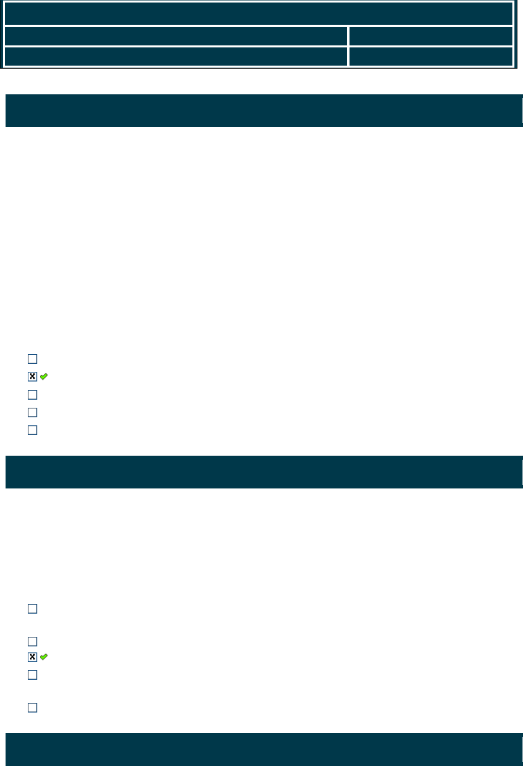 Disc.: MATEMÁTICA FINANCEIRA Aluno(a): Acertos: 9,0 de 10,0 09/2020 1a Questão Acerto: 1,0 / 1,0 Calcule as taxas de juros simples anuais equivalentes às seguintes taxas: I - 2% a.m. II - 1,5% a.s. III - 3% a.q. IV - 2,4% a.t. V - 0,3% a.b. Assinale a alternativa com a sequência de resultados correta: I - 20% a.a., II - 2% a.a., III - 8% a.a., IV -8,6% a.a., V - 1,5% a.a. I - 24% a.a., II - 3% a.a., III - 9% a.a., IV - 9,6% a.a., V - 1,8% a.a. I - 20% a.a., II - 5% a.a., III - 9% a.a., IV - 9,6% a.a., V - 1,5% a.a. I - 24% a.a., II - 5% a.a., III - 9% a.a., IV - 9,6% a.a., V - 1,5% a.a. I - 25% a.a., II - 3% a.a., III - 9% a.a., IV - 7,6% a.a., V - 1,8% a.a. 2a Questão Acerto: 1,0 / 1,0 Um banco ofereceu a seu cliente duas alternativas para descontar uma duplicata com valor de face de R$ 1.000,00, três meses antes de seu vencimento: utilizando desconto comercial simples a uma taxa de 5% a.m. ou utilizando desconto racional composto a uma taxa de 4% a.m. Qual a alternativa mais vantajosa para o cliente? Não é possível comparar as duas alternativas, pois estão em regimes de capitalização diferentes. O desconto comercial simples de 5% a.m O desconto racional composto de 4% a.m. Não é possível comparar as duas alternativas, pois as taxas são diferentes. As duas alternativas são equivalentes. 3a Questão Acerto: 1,0 / 1,0 Qual o valor presente de uma série uniforme de 10 pagamentos mensais de 1.000 reais, imediata e postecipada, dada a taxa de juros de 1% a.m.? 10.000,00 9.543,12 9.622,35 9.471,30 11.235,11 4a Questão Acerto: 1,0 / 1,0 Calcule o valor da primeira prestação mensal de um financiamento de 10.000 estruturado no sistema SAC, com prazo de 10 meses, e taxa de juros de 2% a.m. 1.200,00 1.100,00 1.210,00 1.115,78 1.212,56 5a Questão Acerto: 1,0 / 1,0 Calcule o valor da TIR do projeto com o fluxo ilustrado na figura abaixo 4,22% a.a. 3,48% a.a. 5,78% a.a. 3% a.a. 2,56% a.a. 6a Questão Acerto: 1,0 / 1,0 Qual das alternativas é falsa? Se a TMA >TIRM, o projeto deve ser rejeitado. Se o payback >TMR, o projeto deve ser aceito. Se o TRC > 0, o projeto deve ser aceito. Se o VPL < 0, o projeto deve ser rejeitado. Se a TIR > TMA, o projeto deve ser aceito. 7a Questão Acerto: 1,0 / 1,0 Após identificar que dois projetos mutuamente exclusivos eram ambos viáveis, o CFO de uma empresa verificou que os projetos tinham o mesmo prazo, mas valores de investimento inicial bastante distintos. Qual método você recomendaria que o CFO utilizasse para escolher o melhor projeto? VPLa VPL TIR TIR incremental TIR modificada 8a Questão Acerto: 1,0 / 1,0 Qual dos critérios abaixo não levaria à escolha do projeto A em detrimento do projeto B.? TIRA< TIRB TIRMA> TIRMB VPLa(A) >VPLa(B) VPLA> VPLB TIR(B-A)< TMA 9a Questão Acerto: 1,0 / 1,0 Quando a taxa de juros real se torna negativa? Quando a inflação é maior do que a taxa aparente. Nunca. Quando a inflação é igual à taxa aparente. Quando o Copom reduz a taxa básica de juros. Quando a inflação é menor do que a taxa aparente. 10a Questão Acerto: 0,0 / 1,0 Determine o valor presente líquido de um projeto cujo fluxo inicial é de - 40.000 reais e que paga 100 reais por mês indefinidamente, considerando- se uma taxa mínima de atratividade igual a 0,2% a.m. 0 -45.000 -20 2.000 10.000