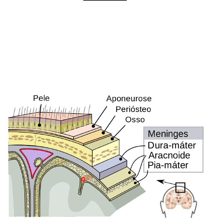MENINGES - OS EVOLTÓRIOS PROTETORES DO SNC COMO UM TODO. ACOMPANHAM OS NERVOS CRANIANOS. HOSPEDAM OS SEIOS VENOSOS. - NÃO CONFUNDIR COM EPINEUROS, QUE SÃO OS REVESTIMENTOS DOS NERVOS (SNP). - 3 FOLHETOS: DURA-MÁTER, ARACNÓIDE E PIA-MÁTER. - PAQUIMENINGE = DURA-MÁTER - LEPTOMENINGE = ARACNÓIDE E PIA-MÁTER - DURA-MÁTER: ENTRE O CRÂNIO E A ARACNÓIDE. A MAIS ESPESSA DE TODAS. SE DIVIDE EM 2 FOLHETOS NO CRÂNIO (CRANIAL / PARIETAL E INTERNO / VISCERAL). NA MEDULA ÓSSEA, APENAS UM. MUITO INERVADA E VASCULARIZADA, ESPECIALMENTE O FOLHETO PARIETAL. VASCULARIZAÇÃO PCP: ARTÉRIA MENÍNGEA MÉDIA. FEIXES NERVOSOS PCP: TRIGÊMEO (3 RAMOS NERVOSOS) CAVIDADES DA DURA-MÁTER: OS DOIS FOLHETOS DA DURA-MÁTER ENCEFÁLICA SE SEPARAM FORMANDO CAVIDADES. UMA DELAS CONTÉM O GÂNGLIO TRIGÊMEO (CAVO TRIGEMINAL - FUNÇÃO DE PROTEÇÃO), AS OUTRAS CONSTITUEM OS SEIOS DA DURA-MÁTER, QUE CONTÉM SANGUE E SÃO REVESTIDAS POR ENDOTÉLIO. PREGAS DA DURA-MÁTER: EM ALGUMAS ÁREAS, OS DOIS FOLHETOS DA DURA-MÁTER SE SEPARAM FORMANDO PREGAS, QUE DIVIDEM A CAVIDADE CRANIANA EM COMPARTIMENTOS QUE SE COMUNICAM. AS PRINCIPAIS PREGAS SÃO: Foice do Cérebro: septo vertical mediano em forma de foice. Ocupa a fissura longitudinal do cérebro, separando em dois hemisférios. Inserção na porção anterior: crista frontal e crista etmoidal. Inserção na porção posterior: tenda do cerebelo. Tenda do Cerebelo: separa a fossa posterior da fossa média do crânio, dividindo a cavidade craniana em um compartimento superior (supratentorial), e outro inferior (infratentorial). A borda anterior livre da tenda do cerebelo (incisura da tenda) se ajusta ao mesencéfalo. Foice do Cerebelo: pequeno septo vertical mediano, situado abaixo da tenda do cerebelo, entre os dois hemisférios cerebelares. Diafragma da Sela: pequena lâmina horizontal que fecha a sela túrcica na parte superior, deixando apenas um orifício de passagem para a haste hipofisára. - ARACNÓIDE: ENTRE A DURA-MÁTER E A PIA-MÁTER. NÃO VASCULARIZADA. SE UNE À PIA-MÁTER POR PROLONGAMENTOS SEMELHANTES À TEIAS DE ARANHA, QUE ATRAVESSAM O ESPAÇO SUBARACNÓIDEO. NÃO SE INSERE EM SULCOS FORMA BOLSAS ONDE ARMAZENA LÍQUOR (FUNÇÃO DE PROTEÇÃO MECÂNICA) GRANULAÇÕES ARACNÓIDES: PEQUENOS TUFOS QUE PENETRAM NO INTERIOR DOS SEIOS DA DURA-MÁTER, PRINCIPALMENTE NO SEIO SAGITAL SUPERIOR. ESTRUTURAS ADAPTADAS À ABSORÇÃO DO LIQUOR, QUE NESSE PONTO, VAI PARA O SANGUE. CISTERNAS DA SUBARACNÓIDEAS: DILATAÇÕES DO ESPAÇO SUBARACNOIDEO COM UMA GRANDE QUANTIDADE DE LÍQUOR. CISTERNAS MAIS IMPORTANTES: Cisterna Magna: Fica entre a face inferior do cerebelo e a face dorsal do bulbo. A cisterna magna é a maior e mais importante, sendo às vezes utilizada para obtenção de líquor através de punções. Cisterna Pré-Pontina: situada na frente da ponte. Cisterna Quiasmática: situada diante do quiasma óptico. Cisterna Superior: situada acima do cerebelo, abaixo do corpo caloso, e atrás do mesencéfalo. Parte dela corresponde à cisterna ambiens, termo usado pelos clínicos. Cisterna Interpeduncular / basal: localizada na fossa interpeduncular. - PIA-MÁTER: A MAIS PROFUNDA. EM CONTATO COM O TECIDO NERVOSO. DÁ CONSISTÊNCIA ÀS ESTRUTURAS DO SNC. NA PORÇÃO MAIS PROFUNDA, RECEBE MUITOS PROLONGAMENTOS DOS ASTRÓCITOS, CONSTITUINDO A MEMBRANA PIO-GLIAL. ACOMPANHA OS VASOS QUE PENETRAM NO TECIDO NERVOSO A PARTIR DO ESPAÇO SUBARACNOIDEO, FORMANDO A PAREDE EXTERNA DOS ESPAÇOS PERIVASCULARES. ESPAÇOS PERIVASCULARES: ALOCAM PROLONGAMENTOS DO ESPAÇO SUBARACNOIDEO, CONTENDO LIQUOR, FORMANDO UM MANGUITO PROTETOR EM TORNO DOS VASOS, MUITO IMPORTANTE PARA AMORTECER O EFEITO DA PULSAÇÃO DAS ARTÉRIAS SOBRE O TECIDO CIRCUNVIZINHO. ACOMPANHAM OS VASOS MAIS CALIBROSOS ATÉ CERTA DISTÂNCIA, E TERMINAM POR FUSÃO DA PIA COM A ADVENTÍCIA DO VASO. - ENTRE AS MENINGES EXISTEM ESPAÇOS: ESPAÇO: FICA ENTRE: EX.: EPIDURAL OU EXTRADURAL O OSSO CRANIANO E A DURA-MÁTER SÓ EXISTE EM CONDIÇÕES ANORMAIS NO CRÂNIO: EX. COÁGULO EPIDURAL. NA MEDULA ESPINHAL CORRESPONDE À GORDURA EPIDURAL. SUBDURAL A DURA-MÁTER E A ARACNÓIDE SÓ EXISTE EM CONDIÇÕES ANORMAIS: EX. HEMATOMA SUBDURAL. SUBARACNÓIDEO A ARACNÓIDE E A PIA-MÁTER ONDE CIRCULA O LÍQUOR - LÍQUOR / LÍQUIDO CÉFALO-RAQUIDIANO / LÍQUIDO CÉREBRO-ESPINHAL: LÍQUIDO QUE LUBRIFICA E PROTEGE MECANICAMENTE O SNC.
