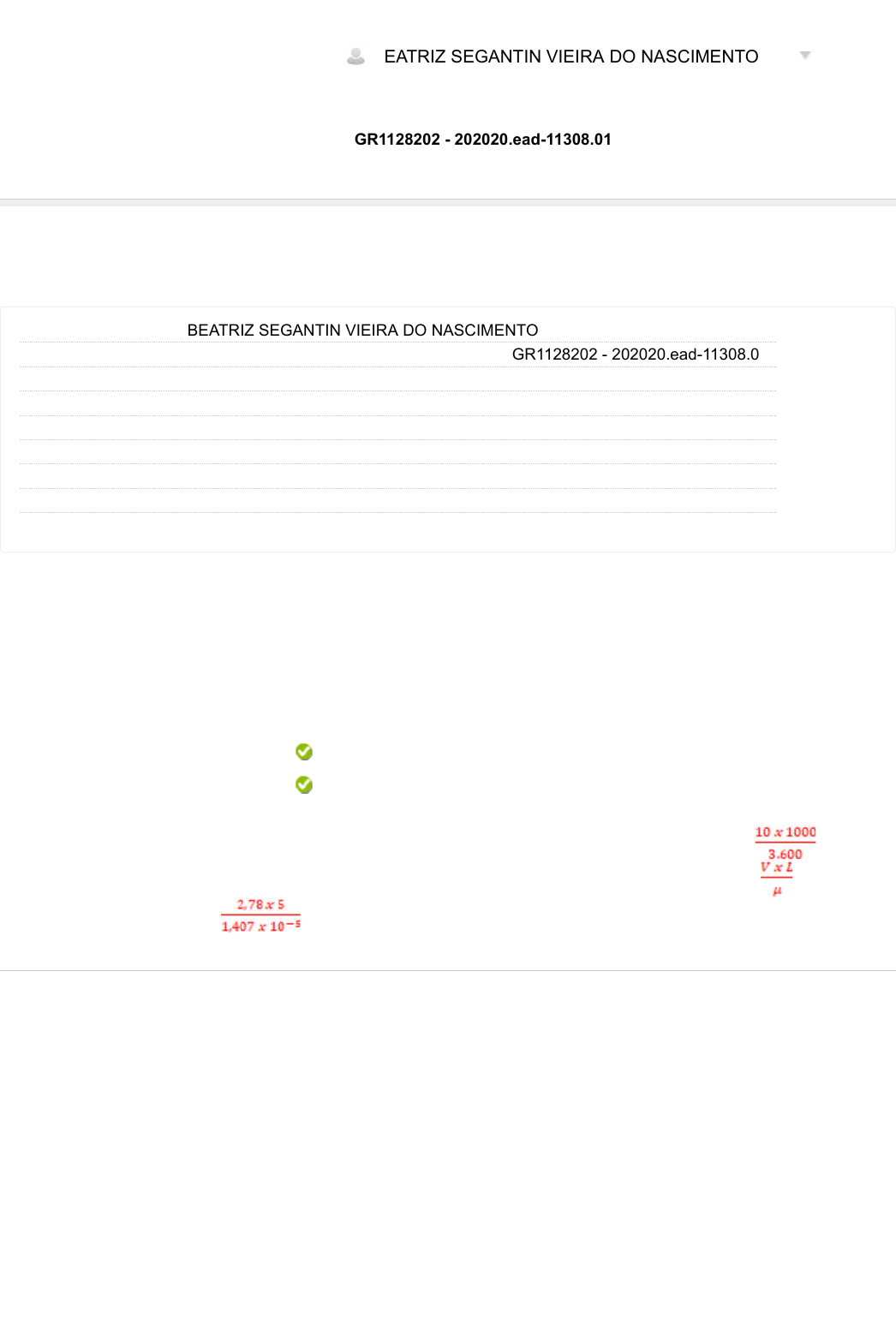 Revisar envio do teste: ATIVIDADE 4 (A4) GRA0741 FENÔMENOS DE TRANSPORTE GR1128202 - 202020.ead-11308.01 Unidade 4 Revisar envio do teste: ATIVIDADE 4 (A4) Usuário BEATRIZ SEGANTIN VIEIRA DO NASCIMENTO Curso GRA0741 FENÔMENOS DE TRANSPORTE GR1128202 - 202020.ead-11308.01 Teste ATIVIDADE 4 (A4) Iniciado 25/09/20 14:49 Enviado 25/09/20 15:20 Status Completada Resultado da tentativa 8 em 10 pontos Tempo decorrido 31 minutos Resultados exibidos Respostas enviadas, Respostas corretas, Comentários Pergunta 1 Resposta Selecionada: Resposta Correta: Feedback da resposta: Uma canoa de alumínio se move horizontalmente ao longo da superfície de um lago a uma velocidade constante de 10 km/h. A temperatura da água do lago é de 20 ºC, especificamente naquela época do ano. O fundo da canoa tem 5 m de comprimento e é plano. A lagoa não apresenta ondas e a água somente é agitada pelos remos da canoa. Sabe-se que a viscosidade cinemática é igual a 1,407 x 10 -5 m/s, todavia, deseja-se saber se a camada limite no fundo da canoa possui um escoamento laminar ou turbulento devido a qual número de Reynolds? Turbulento, devido a um alto número de Reynolds. Turbulento, devido a um alto número de Reynolds. Resposta correta. A alternativa está correta, pois, primeiramente, adequamos as unidades. Logo, a velocidade de 10 km/h será igual a uma velocidade de = 2,78 m/s. Agora, calcularemos o número de Reynolds, que será dado por Re = = = 987.917,56. Dessa forma, o escoamento será turbulento na camada limite. Pergunta 2 Leia o excerto a seguir. “A partir do estudo da termodinâmica, aprendemos que a energia pode ser transferida por interações de um sistema com a sua vizinhança. Essas interações são denominadas trabalho e calor. A transferência de calor pode ser definida como a energia térmica em trânsito em razão de uma diferença de temperaturas no espaço”. BERGMAN, T. L.; LAVINE, A. S. Fundamentos de Transferência de Calor e de Massa . 8. ed. Rio de Janeiro: LTC, 2019. p. 2. A respeito da transferência de calor, analise as afirmativas a seguir e assinale V para a(s) Verdadeira(s) e F para a(s) Falsa(s). I. ( ) A condução requer um gradiente de temperatura em um fluido estacionário. 1 em 1 pontos 1 em 1 pontos BEATRIZ SEGANTIN VIEIRA DO NASCIMENTO ← OK Revisar envio do teste: ATIVIDADE 4 (A4) – GRA0741 ... https://anhembi.blackboard.com/webapps/assessment/review/review.js... 1 of 7 07/10/2020 12:37 Home Retângulo Home Retângulo Home Retângulo Home Retângulo Home Retângulo Home Retângulo Home Retângulo Home Retângulo Home Retângulo Home Retângulo Home Retângulo Home Retângulo Home Retângulo Home Retângulo Home Retângulo Home Retângulo Home Retângulo Resposta Selecionada: Resposta Correta: Feedback da resposta: II. ( ) A convecção é a transferência de calor que ocorre entre uma superfície e um fluido em movimento quando eles estiverem a diferentes temperaturas. III. ( ) A radiação ocorre quando um corpo emite energia na forma de ondas. IV. ( ) Finalmente, tem-se a transferência de calor por sublimação, que é quando um fluido passa do estado sólido para o estado gasoso, por exemplo. Assinale a alternativa que apresenta a sequência correta. V, V, V, F. V, V, V, F. Resposta correta. A alternativa está correta. Existem três tipos de transferência de calor: a condução, que ocorre em fluidos estacionários; a convecção, que ocorre em fluidos em movimento; e a radiação, que é a emissão de calor na forma de ondas eletromagnéticas. Essa forma de transferência de calor não exige um meio fluido. Já a sublimação é uma mudança de estado e não uma forma de transferência de calor. Pergunta 3 Em uma teoria, compreende-se a radiação como a propagação de ondas eletromagnéticas com as propriedades de uma onda, por exemplo, frequência e comprimento. Os raios gama, os raios X e a radiação ultravioleta (UV) que possuem pequeno comprimento de onda são de interesse dos físicos de alta energia e dos engenheiros nucleares, enquanto as micro-ondas e as ondas de rádio que possuem grandes comprimentos de onda são de interesse dos engenheiros da área elétrica. MORAN, M. J. et al. Introdução à Engenharia de Sistemas Térmicos : Termodinâmica, Mecânica dos fluidos e Transferência de calor. Rio de Janeiro: LTC, 2005. A respeito do exposto, especificamente sobre o espectro eletromagnético das ondas, verifica-se que ele está delineado na seguinte figura: Fonte: Moran et al. (2005, p. 514). Quanto ao espectro de radiação, analise as afirmativas a seguir e assinale V para a(s) Verdadeira(s) e F para a(s) Falsa(s). I. ( ) Os raios gama possuem o menor espectro de radiação. II. ( ) A radiação infravermelha possui um espectro de radiação maior do que a radiação ultravioleta. III. ( ) O raio-X possui o maior espectro de radiação. IV. ( ) A ordem da luz visível do maior espectro para o menor é: violeta, azul, verde, amarelo e vermelho. Assinale a alternativa que apresenta a sequência correta. 1 em 1 pontos Revisar envio do teste: ATIVIDADE 4 (A4) – GRA0741 ... https://anhembi.blackboard.com/webapps/assessment/review/review.js... 2 of 7 07/10/2020 12:37 Resposta Selecionada: Resposta Correta: Feedback da resposta: V, V, F, F. V, V, F, F. Resposta correta. A alternativa está correta, pois o índice de radiação dos raios gama varia entre 10 -5 e 10 -4 m, ou seja, é o menor espectro de radiação. O índice de radiação infravermelha é da ordem de 1 a 10 2 m, enquanto o da radiação ultravioleta é de 10 -2 a 10 -1 m, ou seja, o espectro de radiação infravermelha é maior do que o da radiação ultravioleta. Quem possui o maior espectro de radiação é o micro-ondas. A ordem da luz visível do maior espectro para o menor é: vermelho, amarelo, verde, azul e violeta. Pergunta 4 Resposta Selecionada: Resposta Correta: Feedback da resposta: É preciso estudar o escoamento de água em uma válvula que alimenta uma tubulaç