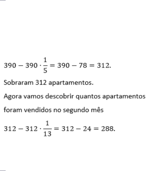 1. Um prédio residencial com 390 apartamentos está sendo construído e os apartamentos começaram a ser vendidos há 2 meses. No primeiro mês, a empresa vendeu 1/5 dos apartamentos; no segundo mês, a empresa vendeu 1/13 dos apartamentos que restaram. Ainda restam quantos apartamentos para serem vendidos? Apresente todos os cálculos para justificar sua resposta. Resposta Esperada: Primeiro precisamos descobrir quantos apartamentos foram vendidos no primeiro mês 2. De acordo com o estudo das funções, podemos determinar a função receita através do valor de venda e quantidade vendida. Baseado na situação a seguir, determine o que se pede. Uma livraria vende uma revista por R$ 10,00 a unidade. Sendo x a quantidade vendida, faça o que se pede: a) Obtenha a função receita. b) Calcule R(60). c) Encontre a quantidade que deve ser vendida para dar uma receita igual a R$ 1.000,00. Resposta Esperada: a) R (x) = 10x b) R (60) = 10 . 60 = 600 c) R (x) = 10x 1.000 = 10x x = 100