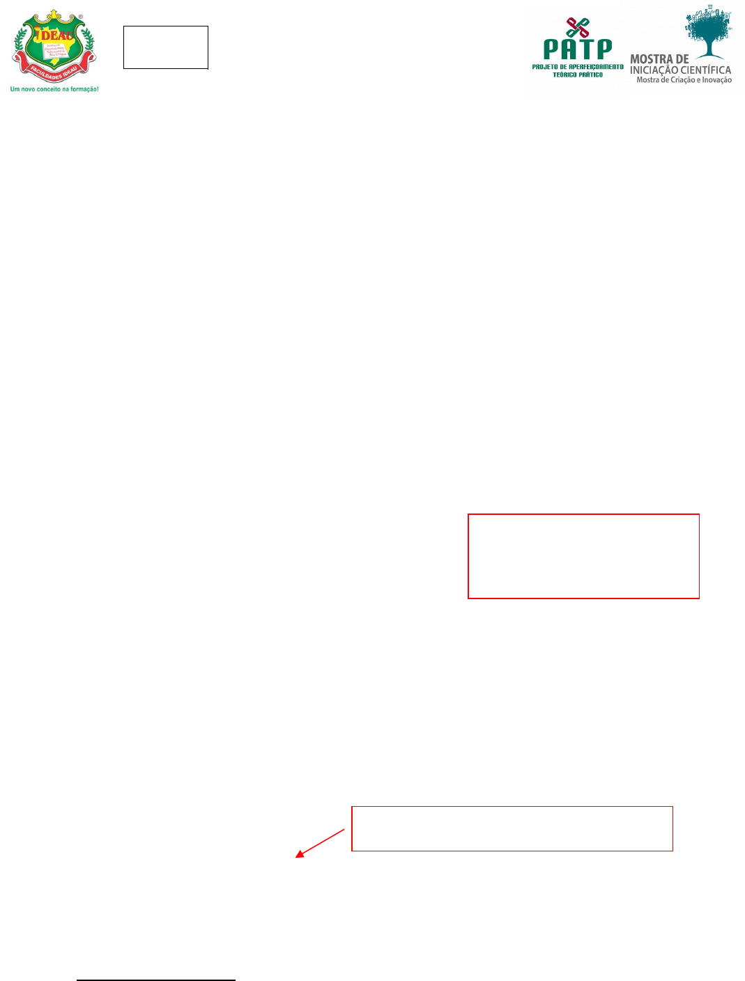 LOGO DO CURSO INSTITUTO DE DESENVOLVIMENTO EDUCACIONAL DE BAGÉ FACULDADE IDEAU DE BAGÉ Digite aqui o título do seu ARTIGO CIENTÍFICO (FONTE Times New Roman, corpo 12 – em letras maiúsculas – NEGRITO) SOBRENOME, Nome completo[footnoteRef:1]* [1: Discentes do Curso (nome do Curso), Nível X 201X/X- Faculdade IDEAU – Bagé/RS.] SOBRENOME, Nome completo¹ SOBRENOME, Nome completo¹ SOBRENOME, Nome completo¹ SOBRENOME, Nome completo[footnoteRef:2] [2: Docentes do Curso (nome do Curso), Nível X 201X/X - Faculdade IDEAU – Bagé/RS. *E-mail para contato: autor@autor.com.br] SOBRENOME, Nome completo² (colocar o nome de todos do grupo, professores da turma e coordenador do Curso) RESUMO: Em português, texto justificado, fonte Times New Roman, corpo 10, espaçamento simples (entre caracteres, palavras e linhas), no mínimo 100 e no máximo 300 palavras. Deve conter objetivos, metodologia, principais resultados e conclusões. O texto deve ser apresentado em parágrafo único. Palavras-chave: no mínimo três (3); no máximo cinco (5). ABSTRACT: Em inglês, deve ser registrado nos mesmos parâmetros do resumo em português. Keywords: Em inglês; no mínimo três (3); no máximo cinco (5).O título INTRODUÇÃO é para Ciências Agrárias, Exatas e da Saúde. CONSIDERAÇÕES INICIAIS é para Ciências Sociais e Humanas ou para Artigos de Revisão Bibliográfica. 1 CONSIDERAÇÕES INICIAIS ou INTRODUÇÃO A introdução deve apresentar o contexto e/ou a situação-problema do estudo. Deve ser breve e clara, explicitando do que se trata o texto apresentado e o problema a ser abordado/resolvido. Deve-se deixar claro ao leitor o objetivo do artigo, mostrando a sequência de seções do artigo. Introdução deve conter de uma (1) a duas (2) páginas, não incluir figuras e/ou citações. O texto deve ser justificado, fonte Times New Roman, corpo 12, espaçamento 1,5 (entrelinhas, palavras e caracteres, espaçamento entre parágrafos 0pt antes - 0pt depois). O primeiro parágrafo do desenvolvimento, antes do subtítulo, é obrigatório como no exemplo a seguir. 2 DESENVOLVIMENTO Nesta parte do trabalho será detalhado o referencial teórico, a metodologia empregada e os resultados encontrados. Contém a exposição ordenada e pormenorizada do assunto tratado do estudo. 2.1 Referencial Teórico (pode conter subtítulos) É o texto resultante de levantamento bibliográfico, de qualquer extensão, que indica ao leitor o tratamento científico atual do tema/problema. Inclui definição de conceitos a respeito do assunto. É a teoria que dá sustentação ao trabalho realizado. Este referencial pode ser realizado através da pesquisa em livros, artigos, periódicos, documentos, entre outros. O texto deve ter relação com os conteúdos contemplados no semestre e no Projeto de Aperfeiçoamento Teórico Prático. 2.2 Material e Métodos ou Metodologia (pode conter subtítulos) Descrição detalhada e rigorosa dos procedimentos de campo ou de laboratório utilizados, bem como dos recursos humanos e materiais envolvidos, o universo da pesquisa, critérios para a seleção da amostra, instrumentos de coleta, método de tratamento dos dados etc. Utilizar referências 2.3 Resultados e Discussão ou Análise dos Resultados (pode conter subtítulos) São expostos os resultados obtidos e ordenados pelos objetivos da pesquisa. Visto ressaltar os aspectos qualitativos e quantitativos. Os resultados obtidos pelo autor devem ser apresentados de forma clara e lógica, não devendo conter interpretações pessoais (sempre na 3ª pessoa), respondendo aos objetivos propostos. É feita uma interpretação analítica dos dados obtidos, considerando o referencial teórico que posicionou o problema pesquisado, e o resultado a que se chegou.Este item pode conter: gráficos, tabelas, imagens, figuras, etc. O título CONCLUSÃO é para Ciências Agrárias, Exatas e da Saúde. CONSIDERAÇÕES FINAIS é para Ciências Sociais e Humanas ou para Artigos de Revisão Bibliográfica. 3 CONSIDERAÇÕES FINAIS ou CONCLUSÃO Nas considerações finais ou conclusão é apresentado o resultado geral da pesquisa. Este capítulo deve ser apresentado em um texto sucinto com no mínimo 3 parágrafos, respondendo ao objetivo geral. Pode conter sugestões, críticas, posicionamento dos autores. REFERÊNCIAS Espaçamento: entre linhas simples; alinhado à esquerda, uma linha em branco entre cada uma delas. Negrito para títulos de livros, ou títulos de revista e periódicos. É obrigatório que sejam incluídas todas as referências utilizadas na pesquisa, sejam elas de revista, jornais, CD’s, internet, livros, filmes etc. A elaboração das referências deve obedecer às normas para trabalhos científicos IDEAU/ABNT, Manual páginas 56-66. Alguns exemplos: ALVES, R. de B. Ciência criminal. Rio de Janeiro: Forense, 1995. BRASIL. Ministério da Educação. Base Nacional Comum Curricular. Proposta preliminar. Segunda versão revista. Brasília: MEC, 2016. Disponível em: http://basenacionalcomum.mec.gov.br/images/BNCC_publicacao.pdf. Acesso em: 23 mar. 2017. FAINTUCH, J. Nutrição parenteral. São Paulo: CAD, 2010. Disponível em: < http:www.fugesp.org.br/nutriesaude3-4htm>. Acesso em: 03 set. 2010. PANNETTA, J. C. Os parasitas da carne e seus reflexos econômicos. Revista Nacional da Carne. São Paulo, v. 1, n. 4/5, p. 24-25, abr./maio 1980. Atenção: · O uso do template é obrigatório. Este modelo já possui a formatação solicitada pela IDEAU. Utilize-o para escrever o seu Artigo Científico. · O Artigo Científico deve conter no mínimo 12 e no máximo 20 páginas (incluindo primeira página). __________________________________________________________________________________________ Projeto de Aperfeiçoamento Teórico e Prático –Bagé – RS – Brasil 1