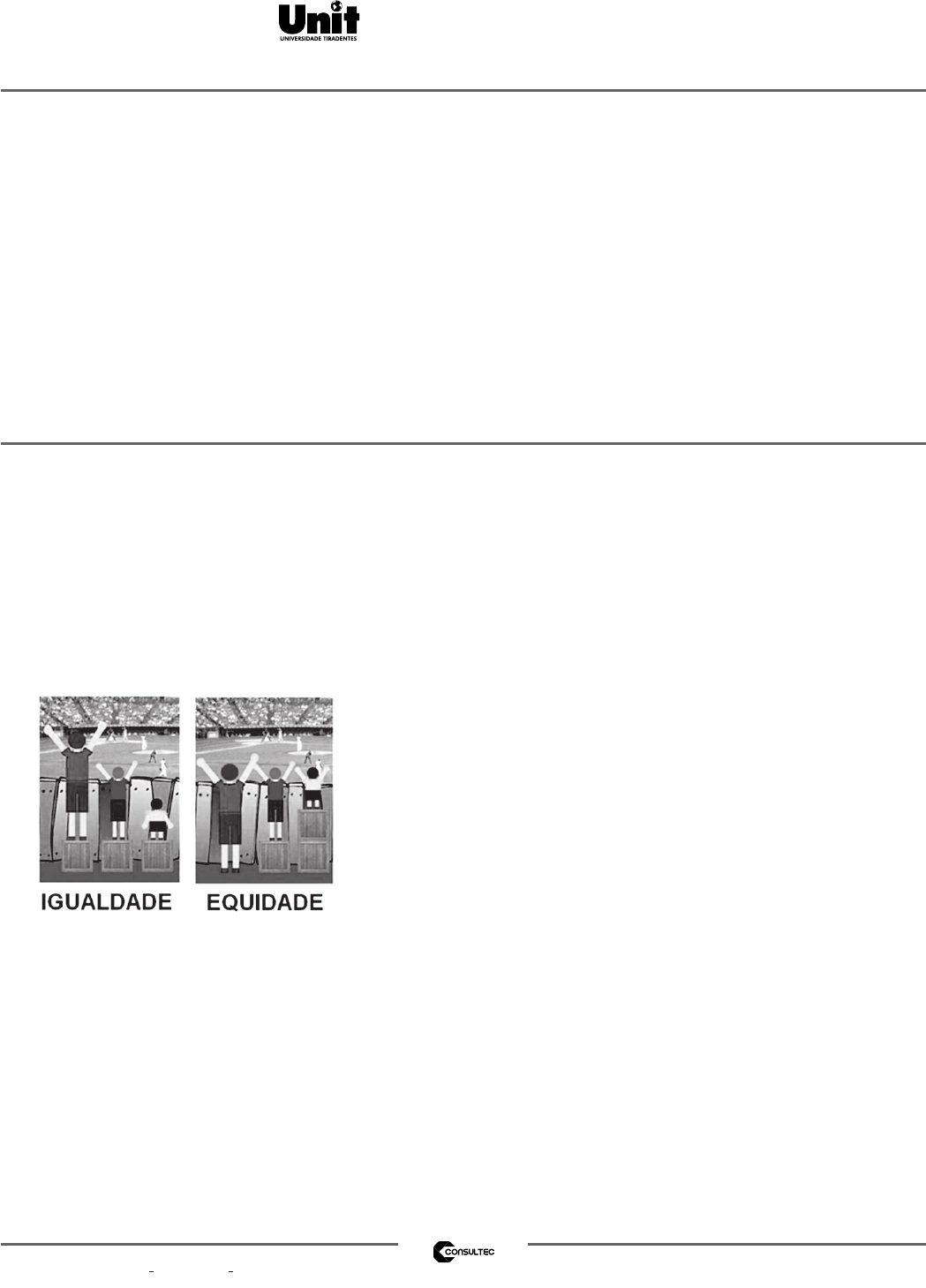 1UNIT - Cursos Superiores de Graduação e de Tecnologia - SERGIPE Processo Seletivo 2019 - 1o Semestre - 1o dia Redação INSTRUÇÕES: • Leia, com atenção, o tema proposto e elabore a sua Redação, contendo entre 20 (vinte) e 30 (trinta) linhas, mas não ultrapasse os limites da Folha de Redação. • Escreva a sua Redação no espaço reservado ao rascunho e transcreva seu texto na Folha de Redação, usando caneta de tinta azul ou preta. • Se desejar, coloque um título, cuja linha será incluída entre o limite recomendado. • Não utilize letra de forma ou de imprensa. Será anulada a Redação — afastada totalmente do tema; — apresentada sob forma de verso; — assinada fora do local apropriado ou com qualquer sinal que a identifique; — escrita a lápis, parcial ou totalmente; — redigida na Folha de Rascunho; — construída sobre forma não articulada textualmente (apenas com números, desenhos, palavras soltas etc.) Processo Seletivo 2019 Redação | Textos motivadores: A) “Equidade e igualdade são substantivos que compõem, necessariamente, projetos de sociedade de matizes humanistas; ao mesmo tempo, os fatores geradores de seus contrários (a iniquidade e a desigualdade substantivas) são tratados com os devidos procedimentos e políticas de correção (distribuição), contenção e supressão para que a justiça social possa ser promovida.” (Mário Luiz Neves de Azevedo) B) Proposta: Com base nos textos motivadores, elabore uma redação dissertativa, na norma-padrão da Língua Portuguesa, focando suas argumentações na mensagem a seguir: Lutar pela igualdade sempre que as diferenças nos discriminem; lutar pela diferença sempre que a igualdade nos descaracterize. (Boaventura de Souza Santos). 2UNIT - Cursos Superiores de Graduação e de Tecnologia - SERGIPE Processo Seletivo 2019 - 1o Semestre - 1o dia Para responder a essas questões, identifique APENAS UMA ÚNICA alternativa correta e marque a letra correspondente na Folha de Respostas. Português Questões de 1 a 30 Português | Processo Seletivo 2019 de 1 a 4QUESTÕES TEXTO: No bojo da sociedade, principalmente as que se dizem democráticas, as organizações públicas e os diversos setores sociais, visando ao bem comum, devem organizar-se para apromoção da igualdade, 5 liberdade e fraternidade. Somos iguais em direitos e humanitariamente, mas temos diferenças, na medida em que essas passam socialmente a tornarem-se vantagens de uns sobre os outros, constitui sistema desigual que fere a igualdade de direito para todos. 10 A Declaração Universal dos Direitos Humanos em seu Art. 1º aborda que “Todos os homens nascem livres e iguais em dignidade e direitos. São dotados de razão e consciência e devem agir em relação uns aos outros com espírito de fraternidade”. Dessa forma, traz 15 a trilogia da Revolução Francesa para a esfera universal. Entretanto, desde a mais tenra infância, as pessoas aprendem que todos têm oportunidades iguais e que as desigualdades com que se deparam não são o resultado de instituições injustas, mas de seus dotes 20 naturais superiores ou inferiores. Quando a igualdade é colocada no plano de que todos têm as mesmas oportunidades, e que as desigualdades com que são vivenciadas são fruto de suas próprias incapacidades, deixa-se de efetuar a 25 fraternidade, visto que o significado natural de fraternidade é a ideia de não querer ter maiores vantagens, exceto, quando isso traz benefícios para os outros que estão em pior situação. Se a condição vivenciada pelo outro é posta na culpabilização do sujeito 30 e em seus esforços individuais, relega-o a sua própria sorte, negligenciam-se os fatores históricos, sociais como também a igualdade e liberdade. Na ordem do mercado que preza pela competição e individualismo, é promovido o pensamento da igualdade 35 em que todos têm as mesmas possibilidades de alcance de determinados objetivos, sem considerar que as desigualdades sociais e as condições de vidas não os permitem caminhar em pé de igualdade. Por isso, alguns pensadores questionam se a melhor maneira de provar 40 em que medida a realidade de uma sociedade “democrática” está de acordo com seus ideais não consiste em medir as chances de acesso aos instrumentos institucionalizados de ascensão social, concedido a diferentes classes sociais. Nesse ponto, 45 ocorre a percepção da diferenciação entre a aparente igualdade disseminada e a real desigualdade que exclui por não ser propiciadas aos sujeitos condições iguais. Assim, envolto na concepção de oferecimento a todos das mesmas chances, a desigualdade passa a 50 ser coberta pela capa metafórica de igualdade. FRATERNIDADE E EQUIDADE: UM DIÁLOGO COM O PRINCÍPIO DA DIFERENÇA. Disponível em: <http://www.equidade.faced.ufba.br/sites/ equidade.oe.faced.ufba.br/files/fraternidade_-_soraia_dora_e_ robinson.pdf>. Acesso em: 20 nov. 2018. Adaptado. 1QUESTÃO Em relação ao exercício de igualdade, fraternidade e equidade em uma sociedade, de acordo com as ideias do artigo, é correto afirmar: A) O lema da Revolução Francesa, liberdade, igualdade e fraternidade, serviu de modelo não só às instituições democráticas, como às demais de maneira indistinta, a exemplo dos países socialistas. B) A oferta de oportunidades igualitárias reflete, simultaneamente, uma atitude democrática de fraternidade e equidade, quando se ignora a história e a trajetória social de um indivíduo. C) A ideia de que se ter maior ou mais competência está desvinculada das condições socioculturais em que o indivíduo se encontra inserido. D) O efetivo conceito de fraternidade está no respeito à história e às possibilidades de reconhecimento de cada individuo como cidadão. E) A desigualdade social não constitui um desafio para as oportunidades de mercado, pois o conhecimento independe dessa condição. 2QUESTÃO “Somos iguais em direitos e humanitariamente, mas temos diferenças,