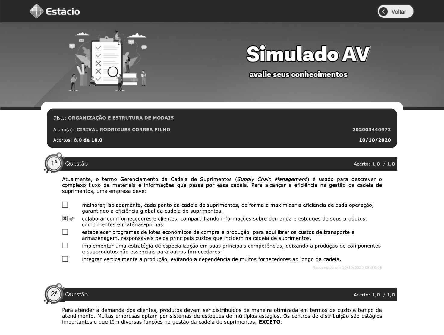 AV1 - Simulador - ORGANIZAÇÃO E ESTRUTURA DE MODAIS
