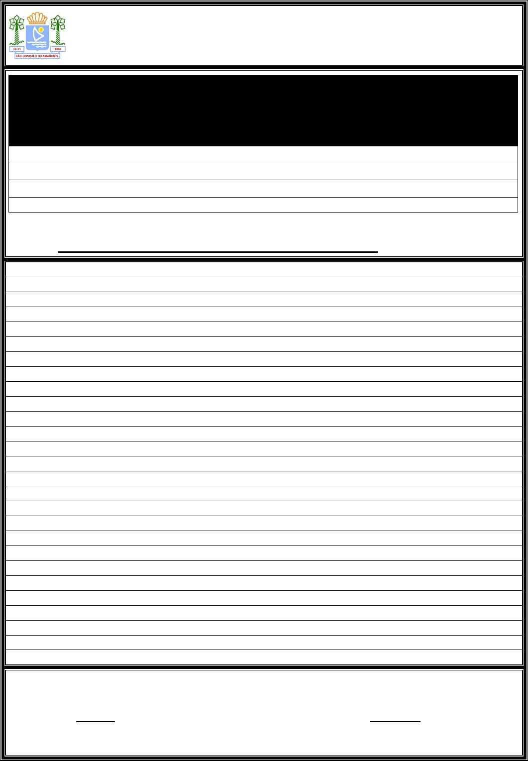 PREFEITURA M. DE SÃO GONÇALO DO AMARANTE - CE C O N C U R S O P Ú B L I C O EDITAL Nº 001/2019 FORMULÁRIO PARA RECURSOS CONTRA OS GABARITOS PRELIMINARES PRAZO: 27 e 30/12/2019 Nome do Candidato.: Cargo.: Inscrição.: Identidade.: CPF.: Data.: ____/____/_______ Assinatura.: TEOR DO RECURSO: (Informe individualmente as questões em que está recorrendo e os motivos alegados. Use um formulário para cada questão em que está recorrendo). Questão: _____, • Após o preenchimento entregue pessoalmente no SAC – Serviço de Atendimento ao Candidato do CETREDE na Avenida da Universidade, 2932 - Bairro Benfica – Fortaleza – CE ou, Prefeitura Municipal de São Gonçalo do Amarante (Secretaria de Planejamento, Administração e Gestão) ou, envie via SEDEX para o SAC – Serviço de Atendimento ao Candidato do CETREDE na Avenida da Universidade, 2932 - Bairro Benfica – CEP 60020-181 - Fortaleza – CE. • Ao enviar este RECURSO pelos Correios, via SEDEX, o comprovante de postagem serve como PROTOCOLO. Porém, se for entregá-la pessoalmente, imprima e preencha-o em duas vias e, solicite que a segunda via lhe seja devolvida PROTOCOLADA. • Observação: Horário de atendimento do SAC – Serviço de Atendimento ao Candidato: 09h00min às 12h00min e das 14h00min às 17h00min de segunda a sexta (exceto feriados).