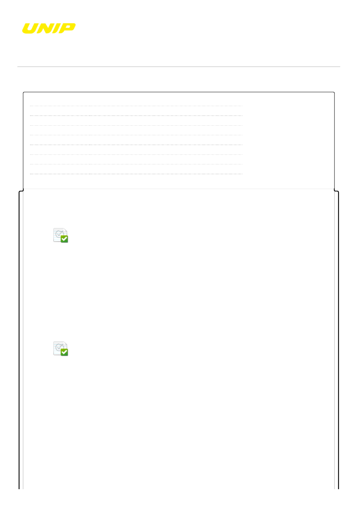 11/10/2020 Revisar envio do teste: PROVA – 7396-30_44602_R_20202 https://ava.ead.unip.br/webapps/assessment/review/review.jsp?attempt_id=_47270410_1&course_id=_108439_1&content_id=_1458747_1&retur… 1/4 Revisar envio do teste: PROVATÉCNICAS DE INFORMÁTICA 7396-30_44602_R_20202 CONTEÚDO Usuário daniela.freitas15 @aluno.unip.br Curso TÉCNICAS DE INFORMÁTICA Teste PROVA Iniciado 02/10/20 09:01 Enviado 11/10/20 14:32 Status Completada Resultado da tentativa 8 em 10 pontos Tempo decorrido 221 horas, 30 minutos Resultados exibidos Respostas enviadas, Perguntas respondidas incorretamente Pergunta 1 Resposta Selecionada: c. A infraestrutura de TI é uma composição de itens compartilhados de sistemas de informação que forma a base dos sistemas computadorizados. Qual das alternativas a seguir não pode ser considerada um recurso de infraestrutura de TI? Processos. Pergunta 2 Resposta Selecionada: b. Analise as a�rmativas a seguir sobre a evolução dos recursos de TI: I – O Eniac praticamente inaugura a primeira geração dos computadores. Ele foi desenvolvido em 1946 nos Estados Unidos e é considerado o primeiro computador com interface grá�ca. II - O primeiro computador pessoal com um processador foi criado em 1973, recebeu o nome de Micral e foi desenvolvido por Thi Truong. III - O primeiro programador do mundo foi uma mulher, Ada Augusta King, que, em 1842, criou o primeiro código utilizado em máquinas analíticas (percussores dos computadores). É correto o que se a�rma em: II e III, apenas. UNIP EAD BIBLIOTECAS MURAL DO ALUNO TUTORIAISCONTEÚDOS ACADÊMICOS 1 em 1 pontos 1 em 1 pontos http://company.blackboard.com/ https://ava.ead.unip.br/webapps/blackboard/execute/courseMain?course_id=_108439_1 https://ava.ead.unip.br/webapps/blackboard/content/listContent.jsp?course_id=_108439_1&content_id=_1449085_1&mode=reset https://ava.ead.unip.br/webapps/portal/execute/tabs/tabAction?tab_tab_group_id=_10_1 https://ava.ead.unip.br/webapps/portal/execute/tabs/tabAction?tab_tab_group_id=_27_1 https://ava.ead.unip.br/webapps/portal/execute/tabs/tabAction?tab_tab_group_id=_47_1 https://ava.ead.unip.br/webapps/portal/execute/tabs/tabAction?tab_tab_group_id=_29_1 https://ava.ead.unip.br/webapps/portal/execute/tabs/tabAction?tab_tab_group_id=_25_1 https://ava.ead.unip.br/webapps/login/?action=logout 11/10/2020 Revisar envio do teste: PROVA – 7396-30_44602_R_20202 https://ava.ead.unip.br/webapps/assessment/review/review.jsp?attempt_id=_47270410_1&course_id=_108439_1&content_id=_1458747_1&retur… 2/4 Pergunta 3 Resposta Selecionada: a. Analise as a�rmativas a seguir sobre a evolução tecnológica da humanidade: I - A era da tecnologia, em que vivemos, é resultante do conjunto de inovações e descobertas que a ciência já produziu ou vem produzindo. II - As grandes mudanças tecnológicas são acompanhadas de transformações econômicas, sociais e institucionais, pois a tecnologia não se difunde no vácuo, necessitando de regimes jurídicos, motivação econômica e condições político- institucionais adequadas para se desenvolver. III – A tecnologia pode ser utilizada como recurso no aumento da produtividade apenas no setor primário da economia. É correto o que se a�rma em: I e II, apenas. Pergunta 4 Resposta Selecionada: e. O conceito hierárquico de dados, informação e conhecimento pode ser apresentado em forma de pirâmide. Considerando da base até o topo, qual é sequência encontrada? Dados – informação – conhecimento. Pergunta 5 Resposta Selecionada: e. Considerando a necessidade de criação de um sistema que integre hospitais e os seus fornecedores, deve ser implantando um sistema: Interorganizacional. Pergunta 6 Desde que o termo inteligência arti�cial foi de�nido nos anos de 1950, especialistas discordam sobre a diferença entre a inteligência natural e a arti�cial. Considerando que existem essas diferenças, analise as a�rmativas a seguir: 1 em 1 pontos 1 em 1 pontos 1 em 1 pontos 0 em 1 pontos 11/10/2020 Revisar envio do teste: PROVA – 7396-30_44602_R_20202 https://ava.ead.unip.br/webapps/assessment/review/review.jsp?attempt_id=_47270410_1&course_id=_108439_1&content_id=_1458747_1&retur… 3/4 Resposta Selecionada: c. I – Fazer cálculos rapidamente e com precisão. II – Adquirir um grande volume de informações externas. III – Usar uma variedade de fontes de informações. As capacidades da inteligência arti�cial e natural são consideradas altas em: I e III, apenas. Pergunta 7 Resposta Selecionada: c. As a�rmativas a seguir apresentam características de memórias: I – Possuir armazenamento temporário. II – Ser uma memória apenas de leitura. III – Não perder nada do que está na memória quando o computador é desligado. Características da memória ROM estão descritas em: I e III, apenas. Pergunta 8 Resposta Selecionada: d. Qual foi o primeiro equipamento de telecomunicações a transmitir informações por meio de eletricidade? Telégrafo. Pergunta 9 Resposta Selecionada: b. Qual das opções a seguir apresenta o item do sistema computacional responsável pelo armazenamento temporário? RAM. Pergunta 10 0 em 1 pontos 1 em 1 pontos 1 em 1 pontos 1 em 1 pontos 11/10/2020 Revisar envio do teste: PROVA – 7396-30_44602_R_20202 https://ava.ead.unip.br/webapps/assessment/review/review.jsp?attempt_id=_47270410_1&course_id=_108439_1&content_id=_1458747_1&retur… 4/4 Domingo, 11 de Outubro de 2020 14h32min37s BRT Resposta Selecionada: a. Analise as a�rmativas a seguir sobre os geradores de apresentação: I - Normalmente os softwares aplicativos geradores de apresentação se apresentam em formatos de “slides”, os quais são a área de trabalho do usuário. II – O software gerador de apresentação incluso no pacote O�ce da Microsoft é o Power Point. III – Embora pareça uma prancheta de desenho, a área de trabalho do Power Point não tem recursos grá�cos ou multimídia. É correto o que se a�rma e