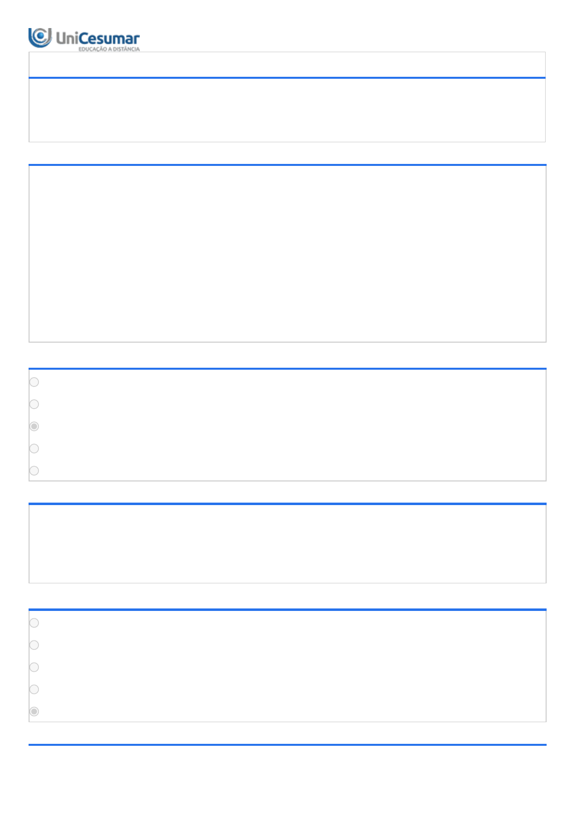 13/10/2020 Unicesumar - Ensino a Distância 1/5 ATIVIDADE 2 - PED - ARTE E MUSICALIZAÇÃO APLICADAS À EDUCAÇÃO - 2020D Período:12/10/2020 08:00 a 30/10/2020 23:59 (Horário de Brasília) Status:ABERTO Nota máxima:0,50 Gabarito:Gabarito será liberado no dia 31/10/2020 00:00 (Horário de Brasília) Nota obtida: 1ª QUESTÃO O homem primitivo foi descobrindo, aos poucos, seu corpo, sua voz, os sons produzidos por eles e o seu poder de comunicação. Sobre a classificação dos instrumentos produzidos pelos primitivos, avalie as afirmações a seguir como V para verdadeiras e F para falsas: I. Idiófonos - feitos de variados materiais, tambor. II. Membrófonos - instrumentos de percussão com uma pele, tambor. III. Cordófonos - instrumentos com cordas esticadas, lira. IV. Aerófonos - instrumentos de sopro, flauta. As afirmações I, II, III e IV são, respectivamente: ALTERNATIVAS V, V, F, V. V, F, V, F. F, V, V, V. V, V, V, F. F, V, V, F. 2ª QUESTÃO De acordo com os dicionários, arte tem por definição: "A utilização da técnica de imitação da natureza, com vistas a um resultado prático que pode ser obtido por meios diferentes, em diversos campos de atividade: a arte de falar, a arte de pescar, a arte de nadar, a arte de dançar etc.” A partir disso, entende-se arte como: ALTERNATIVAS Um conceito restrito daquilo que é belo. A necessidade única de representar a realidade. Um método exclusivo de desenvolver objetos antigos. O estudo das grandes obras de arte e seus criadores. Um conjunto de técnicas que promovem a criação de algo. 3ª QUESTÃO 13/10/2020 Unicesumar - Ensino a Distância 2/5 A música sempre atraiu o ser humano, por isso temos tantas preferências e discussões sobre estilos musicais, o que é melhor, o que é pior. (https://pixabay.com/photos/concert-crowd-audience-people-768722/) Com base nos seus conhecimentos da história da música e na imagem, considere as afirmações que seguem: I. Além do lado técnico a música mexe com o lado pessoal dos ouvintes. II. A música sempre representa uma identidade regional e particular. III. O conceito de som e música se encontram, mas não são iguais. IV. A arte, a música, a pintura desperta paixão, emoções em seus apreciadores. É correto o que se afirma em: ALTERNATIVAS I, apenas. I e II, apenas. III e IV, apenas. I, III e IV, apenas. I, II e III, apenas. 4ª QUESTÃO 13/10/2020 Unicesumar - Ensino a Distância 3/5 Imagine a seguinte situação pedagógica: Um professor da disciplina de Arte deixava que os alunos escolhessem o que gostariam de fazer na aula de Arte, algumas vezes os alunos só queriam relaxar, outros momentos só desenhar sem uma temática definida. O entendimento padrão era que o tema da aula deveria surgir dos alunos e assim o professor tentar equilibrar teoria e prática. Essa situação descrita reflete uma metodologia de Ensino de Arte que não é adequada. Assinale a alternativa que é compatível com a prática descrita acima. ALTERNATIVAS Método da Solução de problemas, valorizando a criatividade. Método da Sugestão, valorizando estudo conceitual. Método triangular, valorizando a abstração, flexibilidade e originalidade. Método Aquário, valorizando a expressão do teatro. Método Binário, valorizando a música e a musicalização. 5ª QUESTÃO A civilização grega é um marco na evolução matemática, filosófica, artística e musical. Muitos feitos e descobertas realizadas na Grécia antiga ainda repercutem nos dias atuais. Sobre a música grega, avalise as afirmações a seguir como V para verdadeiras e F para falsas: I. Aristóteles teorizou a relação da música com as emoções. II. Pitágoras teorizou a relação da música com a razão numérica. III. Os gregos utilizaram instrumentos de sopro, corda e percussão. IV. A música grega se baseou nos conceitos de belo e harmonia. As afirmações I, II, III e IV são, respectivamente: ALTERNATIVAS V, V, V, F. V, V, V, V. V, F, V, V. F, V, V, V. V, F, V, F. 6ª QUESTÃO Os PCNs definiram o Ensino da Arte de forma que valorize uma experiência completa e plena para a formação do aluno. Ele fundamenta essa experiência em três eixos. Nesse sentido, analise as afirmativas a seguir: I. A experiência de criação artística trabalha recursos pessoais e habilidades. II. A experiência de vivência artística trabalha o mundo como um conceito de arte. III. A experiência de formas artísticas trabalha o contato e a imaginação. IV. A experiência cognitiva de arte trabalha uma reflexão sobre a arte, artistas e obras. É correto o que se afirma em: 13/10/2020 Unicesumar - Ensino a Distância 4/5 ALTERNATIVAS II, apenas. I e II, apenas. II e III, apenas. II e IV, apenas. I, III e IV, apenas. 7ª QUESTÃO Um professor faz a seguinte pergunta para os alunos do 5º ano do Ensino Fundamental: - Qual é o estilo musical que é cara do Brasil? Os alunos respondem coisas diversas, alguns o samba, outros o funk, outros o sertanejo. Diante disso, o professor tenta discutir com os alunos sobre a cultura musical do Brasil. Dessa forma, qual afirmativa representa a melhor discussão proposta por esse professor. ALTERNATIVAS A cultura musical brasileira é dominada exclusivamente pelo samba já que é uma manifestação nacional e oriunda das classes mais baixas. A cultura musical brasileira é dominada exclusivamente pelo funk uma vez que é o estilo que mais se ouve hoje e mais exporta cantores para o mundo. A cultura musical brasileira é dominada pelo sertanejo, pois é o único estilo que realmente é oriundo das classes populares e representa o povo. A cultura musical brasileira é miscigenada e repleta de influências díspares que contribuíram para a riqueza musical presente no país. A cultura musical brasileira é unilateral e profícua, uma vez que, escolheu as suas influências de acordo com as preferências do povo mais culto. 8ª QUESTÃO Tem algumas produções artísticas que nos chamam a atenção ou por su