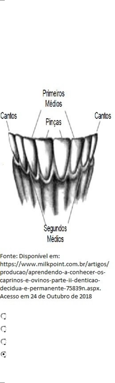 1. Ao realizarmos uma avaliação zootécnica de um ovino ou caprino, é importante que saibamos a idade que este animal possui. Nos casos em que o animal não possui um registo de nascimento, é possível mensurar a idade do animal por meio da observação dos dentes. Com relação à idade dos animais e os dentes que possuem, classifique V para as sentenças verdadeiras e F para as falsas: (f ) As pinças dos ovinos e caprinos se desenvolvem tardiamente, cerca de 4 anos de idade. ( v) Os primeiros médios já podem ser encontrados em animais de 1,5 a 2 anos de idade. ( f ) Os dentes dos cantos são os segundos dentes a nascer, por volta de 1 a 2 anos de idade. ( v ) Os segundos médios, nascem por volta de 2,5 a 3 anos de idade do animal. Assinale a alternativa que apresenta a sequência CORRETA: a) F - V - F - V. b) V - V - V - F. c) F - V - V - F. d) V - F - F - V. 2. Os ovinos e caprinos apresentam diferenças e peculiaridades, sendo que a forma de alimentação é uma das principais diferenças. Na literatura internacional, os ovinos são animais classificados como pastejadores, enquanto os caprinos ramoneadores, que preferem se alimentar no extrato arbustivo. Ambos são conhecidos por se adaptarem aos diferentes ecossistemas, com clima e vegetação diversas. Sobre a adaptação das duas espécies, avalie as seguintes asserções e a relação proposta entre elas: I- A criação de ovinos e caprinos é exercida tanto em regiões com maior abundância de água e alimentos quanto em zonas semiáridas, que demonstra alto grau de adaptabilidade desses animais às condições adversas. PORQUE II- No Brasil, a criação de ovinos e caprinos está presente em todos os estados brasileiros em função da habilidade destas espécies para transformar material fibroso e de baixo valor nutritivo em alimentos de alto valor proteico. Assinale a alternativa CORRETA: a) A asserção I é uma proposição falsa, e a II é uma proposição verdadeira. b) As asserções I e II são proposições verdadeiras. c) As asserções I e II são proposições falsas. d) A asserção I é uma proposição verdadeira, e a II é uma proposição falsa. 3. Os dados de escrituração zootécnica e do controle leiteiro oficial estão sendo organizados através do Sistema de Gerenciamento de Rebanhos do PMGCL, desenvolvido pela Embrapa Caprinos e Ovinos. Segundo as informações de produção do sistema, as médias de produção total de leite na lactação, produção de leite em 305 dias de lactação, duração de lactação e produção média diária na lactação são de 650,73 Kg, 588,77 Kg, 259,10 dias e 2,43 Kg, respectivamente. Sobre a reestruturação do programa, analise as sentenças a seguir: I- Estudar genes candidatos de importância econômica para caprinocultura de leite e estimativa de erros genealógicos em rebanhos experimentais e comerciais.v II- Identificar rebanhos colaboradores do teste de progênie e dar o acompanhamento necessário, coletando as informações de controle leiteiro e reprodutivo nos rebanhos.v III- Outras ações fundamentais estão sendo tomadas, neste sentido a consolidação da técnica de inseminação artificial em caprinos não é considerada prioridade para difundir o melhoramento genético.f IV- Promover o melhoramento genético das principais raças de caprinos leiteiros exploradas no Brasil por meio da identificação e seleção de reprodutores jovens geneticamente superiores para as características de produção e de conformação.v Assinale a alternativa CORRETA: a) Somente a sentença I está correta. b) As sentenças I, II e IV estão corretas. c) Somente a sentença IV está correta. d) As sentenças II e III estão corretas. 4. Atualmente, pela necessidade de especialização, os rebanhos de duplo propósito não têm sido uma escolha muito sábia, haja vista a necessidade de conversão dos investimentos em produtos. Por isso, cada vez mais, busca-se uma raça mais especializada. Sobre as raças de caprinos e sua aptidão, analise as sentenças a seguir: I- A raça Savanna tem origem na África do Sul, é especializada na produção de leite, apresenta grande porte, com ovinos compridos, de boa conformação de carcaça, lombo comprido e largo, com pernil bastante desenvolvido. f II- Anglo-nubiana é raça duplo propósito, caracterizada pela boa produção de leite e carne, pelo temperamento manso, bem adaptada a climas quentes e secos, originária da Núbia, no centro-oeste africano.v III- A raça Murciana foi aprimorada para a produção de carne, tem sua origem na Espanha e recentemente foi introduzido um lote dessa raça por criadores do Estado da Paraíba. IV- Os caprinos Boer surgiram na África do Sul, a partir da seleção de animais que apresentavam características específicas para produção de carne, como corpo comprido e profundo com musculatura bem distribuída.v Assinale a alternativa CORRETA: a) As sentenças II e IV estão corretas. b) Somente a sentença I está correta. c) As sentenças I, II e III estão corretas. d) Somente a sentença IV está correta. 5. No Brasil, existem oficialmente 27 raças de ovinos registradas pela Associação de Criadores de Ovinos do Brasil - ARCO, as quais são criadas em número de rebanhos variáveis. A raça Santa Inês, para produção de carne e pele, é a mais difundida no Brasil. Sobre as raças de ovinos e sua aptidão, classifique V para as sentenças verdadeiras e F para as falsas: ( ) O Merino Espanhol é considerado um dos ovinos domésticos mais antigos de todos os conhecidos, esta raça apresenta lã de excelente qualidade e elevado valor econômico, destinado à fabricação de tecidos finos. ( v ) A raça Morada Nova foi desenvolvida na região Nordeste, composta por ovinos de porte pequeno, deslanados com pelos curtos, adaptados às condições de semiárido e com alta prolificidade. ( v) A raça Santa Inês foi desenvolvida na região Nordeste, é constituída por ovinos landos de peque