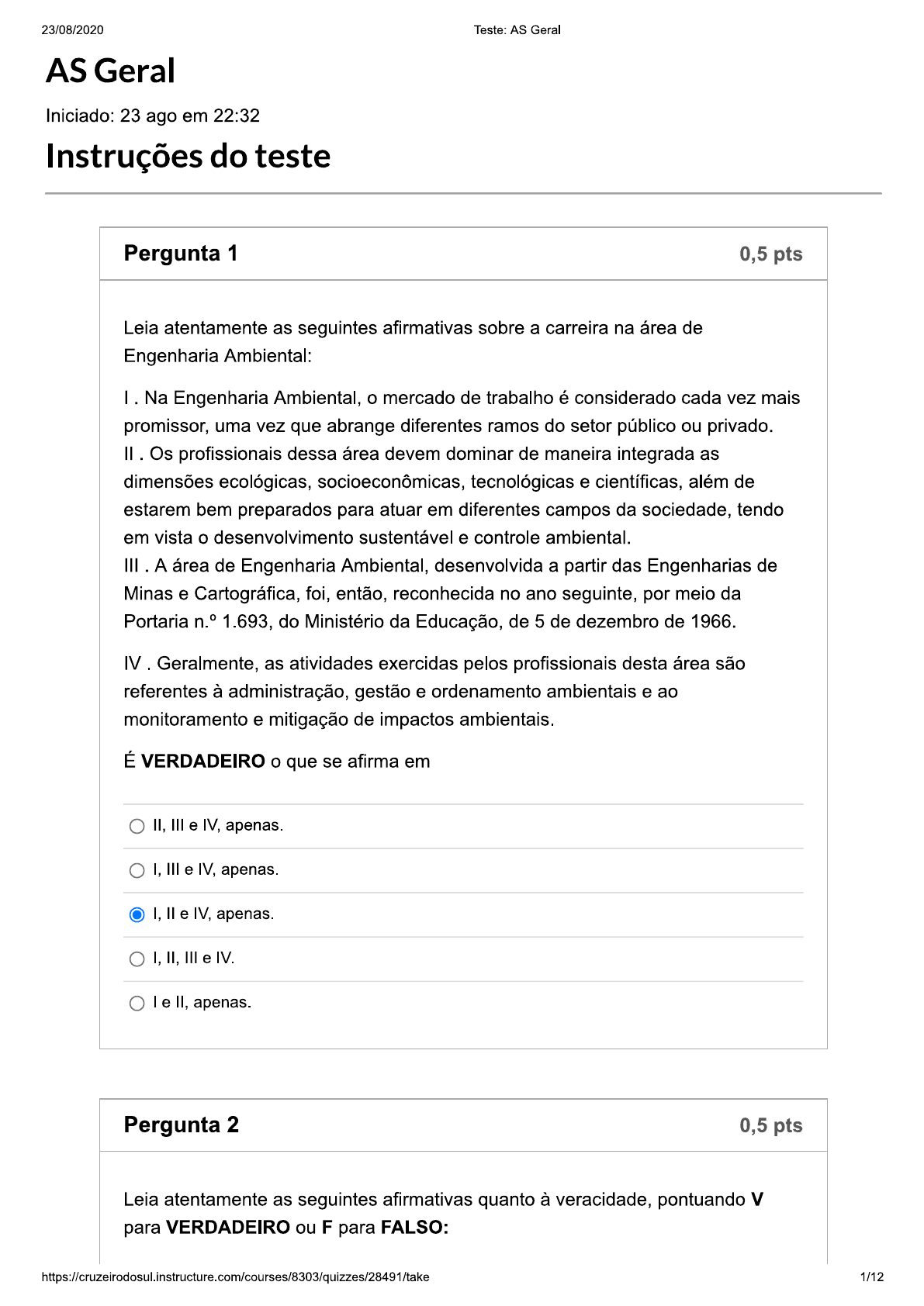 Engenharia Ambiental (EPR21) - Avaliação 2 - Prova Objetiva - 11301253 - Uniasselvi - Aplicada em 03/06/19