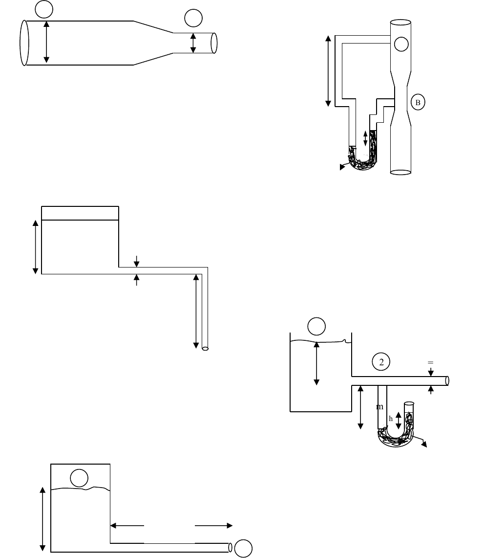 FT I – Lista 1 de Exercícios (Prof. Gerônimo) 1. Água escoa em regime permanente no duto de seção circular mostrado na figura abaixo. Sabendo que o fluxo de massa é de 50 Kg/s, calcule a vazão em volume do escoamento e as velocidades médias nas seções 1 e 2. Resp: Q = 0,05 m 3 /s; v1 = 1,6 m/s; v2 = 6,4 m/s 2. Calcular a vazão (m3/s) e as pressões manométrica e absoluta no ponto B (em Pascal) para o escoamento a partir do tanque fechado através da tubulação de 4 cm de diâmetro, sabendo que o fluido em escoamento é a água. Resp: Q = 0,018 m 3 /s; PBabs = 62037,4 Pa; PBman = -39237,6 Pa 3. Calcular a velocidade na saída canalização ilustrada abaixo, sabendo que a pressão manométrica no ponto 1 é 1 atm. Resp: v2 = 17,34 m/s 4. Determinar a vazão na tubulação por onde escoa água, através das informações obtidas a partir do tubo venturi. Dados: dHg = 13,6; h = 30 cm. Dados: A = 8cm; B = 5cm, deflexão do manômetro (h) = 0,3m. Resp: Q = 1,83.10 -2 m 3 /s 5. Água flui de um tanque através de um tubo de 0,05 m de diâmetro. Determine a velocidade no tubo e a vazão de descarga. Dados: deflexão do manômetro (h) = 0,15m Resp: Q = 13,0 L/s; v2 = 6,61 m/s Pman = 200 mmHg A 4 m d = 0,04 m 4 m B C L =10 m h = 5m Água 1 2 D = 0,20 m d = 0,10 m 1 2 h = 0,05m 0,61m 3,66m 1 2 . Hg ZA .A B . h Hg 6. Uma tubulação de ferro fundido ( = 2,5.10-4m) que tem 0,3m de diâmetro e 300m de comprimento comunica dois recipientes que tem seus níveis de superfícies a uma altura de 60m e 76m. Calcular a vazão através desta tubulação, supondo-se que a água se encontra a uma temperatura de 10°C ( = 1,3.10 -6 m 2 /s) e que a entrada no tubo é normal. Dados: Kentrada = 0,5; Ksaida = 1,0. Resp: Q = 0,277m 3 /s 7. Determinar a perda de carga e a vazão da instalação abaixo, sabendo-se que o seu diâmetro é de 0,5 m e que a velocidade é de 4m/s. Dados: = 5.10 -5 m; = 1,3.10 -6 m 2 /s; Kentrada = 1,0; Ksaida = 1,0; K90° = 0,4; K45° = 0,2. Resp: hp1-2 = 3,35m; Q = 0,785m 3 /s. 8. Calcular a vazão de água num condutor de ferro fundido, sendo dados = 10cm, = 0,7.10 -6 m 2 /s e sabendo-se que dois manômetros instalados a uma distância de 10m indicam, respectivamente, 1,5kgf/cm 2 e 1,45kgf/cm 2 . Dado: = 10 3 kgf/m 3 ; = 2,59.10 -4 m. 60m 76m 1 2 P1 P2 10m Resp: Q = 15.10 -3 m 3 /s. 9. Um grande reservatório de óleo tem um tubo de 7,6cm e 2128m de comprimento a ele conectado, como mostrado na figura a seguir. A superfície livre do reservatório está a 3m acima da linha do centro do tubo e pode ser considerada fixa nesta elevação. Admitindo escoamento laminar, calcule a velocidade média de escoamento e, posteriormente, verifique o Número de Reynolds. Dado: oleo = 9,2.10 -6 m 2 /s Resp: v2 = 0,3m/s; Re = 2478. 10. Um tubo liso de 6,35 cm de diâmetro e 152 m de comprimento, transporta 9,46 L/s de água, desde uma linha principal onde a pressão é igual 7,0 Kgf/cm 2 até o topo de um edifício que está a 26 m acima da linha principal. Qual a pressão existente no tubo no topo do edifício? Dados: agua = 1,32.10 -6 m 2 /s; agua = 10 3 kg/m 3 . Resp: P2 = 238383 Pa. 11. A partir da figura abaixo, determine a pressão manométrica no tanque fechado (P9 man), sabendo que a tubulação é de ferro galvanizado ( = 0,15.10 -3 m) e a vazão é de 40 L/s. Dados: dR = 10 cm (ponto 0 a 4); dS = 15 cm (ponto 4 a 8); = 10 -6 m 2 /s; = 10 3 Kgf/m 3 Resp: P9 = -4,9.10 4 kgf/m 2 . 1 3m 2128m = 7,6cm 2 7