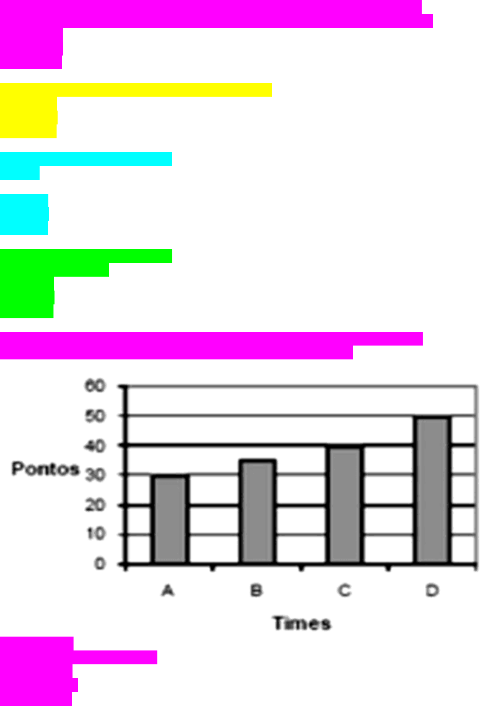 1) Um pedreiro recebeu, o pagamento pelo seu trabalho, de maneira parcelada. As parcelas ficaram da seguinte maneira: 22.000 / 14.000 / 10.000 / 5.000. Quanto ele recebeu pela obra? a) ( ) 62.000 b) ( ) 51.000 c) ( ) 70.000 2) O numero natural resultante da adição de 2.467 e 347 é: a) ( ) 2.704 b) ( ) 2.814 c) ( ) 5.937 3) O resultado da subtração abaixo é: 679 – 38 a) ( ) 299 b) ( ) 631 c) ( ) 641 4) O resultado da expressão abaixo é: 4 x 1000 + 3 x 10 + 5 x 1 a) ( ) 4035 b) ( ) 5034 c) ( ) 4305 5) Uma escola montou 4 times para arrecadar alimentos para uma instituição de caridade, o gráfico abaixo mostra a quantidade de alimentos arrecadados por cada time. grafico de times Os time A e C juntos arrecadaram: a) ( ) 50 quilos b) ( ) 70 quilosx c) ( ) 30 quilos 6) Uma loja tem 1960 camisetas para vender. Esse número é composto por: a) ( ) 1 centena, 9 dezenas e 6 unidades e zero unidde b) ( ) 1 unidade de milhar, 9 centenas e 6 dezenase zero unidade c) ( ) 1 unidade de milhar, 9 dezenas e 6 unidadese zero unidade 7) Uma cidade tem 13.500 habitantes, 50% deles tem casa própria. A quantidade de pessoas sem casa própria nesta cidade é : a) ( ) 13.500 b) ( ) 6.750 c) ( ) 10.000 Assinale a resposta sobre a classificação dos triângulos de acordo com seus lados . 8-Tem dois lados iguais e um diferente. O lado desigual é, em geral, utilizado como referência de base . a)Isósceles b) escaleno c) eqüilátero 9- Todos os lados são iguais a)Isósceles b) escaleno c) eqüilátero 10-Nenhum dos lados é igual a)Isósceles b) escaleno c) eqüilátero Assinale a resposta sobre a classificação dos triângulos de acordo com seus lados . 11-Um ângulos reto de 90º a) Triangulo retângulo b) Triangulo Obtusângulo c) Triangulo Acutangulo 12-Apresenta um ângulo obtuso ( maior que um ângulo reto) a) Triangulo retângulo b)Triangulo Obtusângulo c)Triangulo Acutangulo 13-Apresenta um ângulo agudo ( menor que um ângulo reto) a) Triangulo retângulo b) Obtusângulo c)Acutangulo 14-Qual das alternativas indica os números pelos quais 232 pode ser dividido sem deixar resto? a) 2,4,8 b) 2,5,9 c) 3,7,9 d) 6,12,18 15-Fernanda fez aniversario ontem. Descubra a idade dela resolvendo a expressão a seguir. Quantos anos Fernanda completou? A) 7 anos B) 14 anos C) 19 anos D) 28anos 16- Ao dividir igualmente 159 figurinhas entre 6 amigos obtêm-se a) 24 e resto 3 b) 26 e resto 1 c) 23 e resto 4 d) 26 e resto3 . Usando apenas uma vez os números naturais 1,7,6,9,2. 17-Qual o maior numero natural possível? a) 76921 b) 29671 c) 97621 d) 17692 18) qual 0 menor numero natural podemos obter do numero 9324 a) 4393 b)2349 c)4923 d)2394 19) Quantas ordens e classes tem esses números 98.734.290 a) 3 ordens e 8 classes b)8 ordens e 3 classes c) 3 classes e 8 ordens 20-Do numero 5,678 qual numero representa a centena ? a) 5 b) 6 c) 7 d) 8