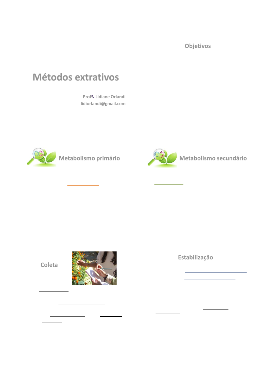 22/08/2020 1 Métodos extrativos Profª. Lidiane Orlandi lidiorlandi@gmail.com Objetivos 2 ➢Conhecer os constituintes químicos das espécies vegetais ou avaliar sua presença. ➢Quando não se expõe de estudos químicos sobre a espécie de interesse – ANÁLISE FITOQUÍMICA PRELIMINAR, indicando a presença de metabólitos secundários. ➢ Interesse em uma classe terapêutica específica – ISOLAMENTO E ELUCIDAÇÃO ESTRUTURAL das mesmas. Conjunto de processos metabólicos que desempenham uma função essencial no vegetal, tais como a fotossíntese, a respiração e o transporte de solutos → aminoácidos, nucleotídeos, lipídios, carboidratos e clorofila. Metabolismo primário Origina compostos que não possuem uma distribuição universal, pois não são necessários para todas as plantas, são substâncias que geralmente não estão envolvidas em funções vitais das plantas, geralmente não fazem parte do metabolismo básico e possuem características químicas muito variadas e às vezes bem complexa. Metabolismo secundário • Primeira etapa da investigação química. • Necessidade: exsicata do material botânico para identificação da espécie. • Registro do local, data e hora da coleta → exercem grande influência sobre a produção e o acúmulo dos metabólitos vegetais. Coleta Estabilização é a desnaturação proteica das enzimas celulares, através da destruição das suas estruturas terciária e quaternária, pela ação de agentes desidratantes (etanol ou ação do calor). • Imersão do material vegetal em etanol em ebulição ou secagem a alta temperatura (> 60ºC) e curto tempo de exposição. • Se a análise for feita em tempo distante, realiza-se imediatamente a fim de se evitar a alteração dos compostos químicos. Estabilização 1 2 3 4 5 6 22/08/2020 2 A secagem tem por finalidade a retirada de água, impedindo reações de hidrólise e crescimento microbiano Dispor o material vegetal em camadas finas → exposição a temperaturas → 60ºC → 7 dias → podendo ser feita em estufa ou ao ar livre (sombra). Secagem Finalidade: reduzir, mecanicamente, o material vegetal a pequenos fragmentos, preparando-o para a extração ( s.c.) Moagem Pode ser feito com tesouras, podões ou facas, em gral ou por rasuração – raspadores ou processadores de alimentos. Extração Significa RETIRAR de forma seletiva e completa possível, as substâncias ou fração ativa contida na droga vegetal, utilizando para isso, um líquido ou mistura de líquidos tecnologicamente apropriados e toxicologicamente seguros. Métodos de extração sólido/líquido Extrações a frio: Maceração Percolação Turbolização A extração da matéria-prima vegetal é realizada em recipiente fechado, em temperatura ambiente, durante um período prolongado, sob a agitação ocasional e sem renovação do líquido extrator. ✓Não conduz ao esgotamento da matéria-prima vegetal → saturação do líquido extrator ou ao estabelecimento de um equilíbrio entre a solução extratora e o interior da célula. Maceração Fatores que podem influenciar na eficiência da maceração: • quantidade, natureza, teor de umidade, tamanho das partículas, capacidade de intumescimento – material vegetal; • seletividade e quantidade do líquido extrator; • proporção droga-líquido extrator, temperatura, agitação, pH, tempo de extração – vinculados ao sistema. 12 Maceração 7 8 9 10 11 12 22/08/2020 3 São variações do processo de maceração: ✓ Digestão – maceração realizada em sistema aquecido a 40-60ºC; ✓ Maceração dinâmica - maceração realizada sob agitação mecânica constante; ✓ Remaceração – quando se repete a operação utilizando o mesmo material vegetal. Maceração A droga vegetal moída é colocada em um percolador de vidro ou de metal, através do qual passa-se o líquido extrator. Percolação • Característica comum – extração exaustiva das substâncias ativas. • É uma técnica dinâmica – esgotamento da droga vegetal. • É indicada na extração de substâncias farmacologicamente muito ativas, presentes em pequenas quantidades ou pouco solúveis e quando o preço da droga é relevante. Percolação A extração ocorre junto com a redução do tamanho de partículas. • Tempo de extração – baixíssimo e quase esgotamento da droga. • Existem equipamentos próprios para o processo de turbolização, mas em laboratórios, pode-se usar o liquidificador. Turbolização Infusão Material vegetal permanece certo tempo na água fervente, num recipiente com tampa. • Partes vegetais de estrutura mole – cortadas ou pulverizadas grosseiramente. Extrações a quente em sistemas abertos Decocção Manter o material vegetal em contato, durante certo tempo, normalmente água, em ebulição. • Emprego: material vegetal duro e de natureza lenhosa. 13 14 15 16 17 18 22/08/2020 4 Extração sob refluxo Consiste em submeter o material vegetal à extração com um solvente em ebulição em aparelho acoplado a um condensador, de forma que o solvente evaporado durante o processo seja recuperado e retorne ao conjunto. Extração altamente eficiente empregando quantidades reduzida de solvente, mas devem ser tomadas precauções com a temperatura. Extrações a quente em sistemas fechados Extração em aparelho Soxhlet Usada para extrair sólidos com solventes voláteis. • O aparelho Soxhlet possui um sifão que proporciona o refluxo contínuo do solvente. • O material bruto pulverizado é colocado num cartucho de celulose, dentro do Soxhlet. • O balão conectado abaixo recebe aquecimento de uma manta elétrica, fazendo com que o solvente evapore, condense no condensador de bolas passe para o Soxhlet - proceda a extração - e uma vez atingido o nível no sifão, retorne para o balão reiniciando o processo. • A extração ocorre normalmente por centenas de ciclos, o que corresponde às vezes a vários dias de trabalho. • O prin