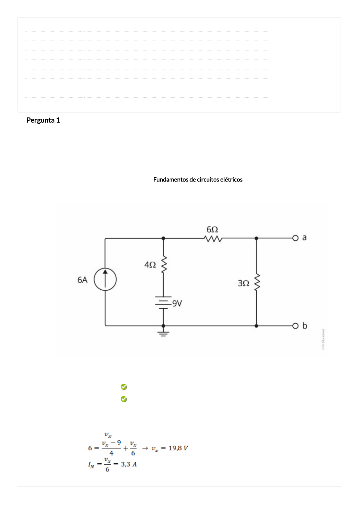 terminal ab, curto-circuitamos o terminal ab. Então, a corrente sobre o resistor de 3 ohms será