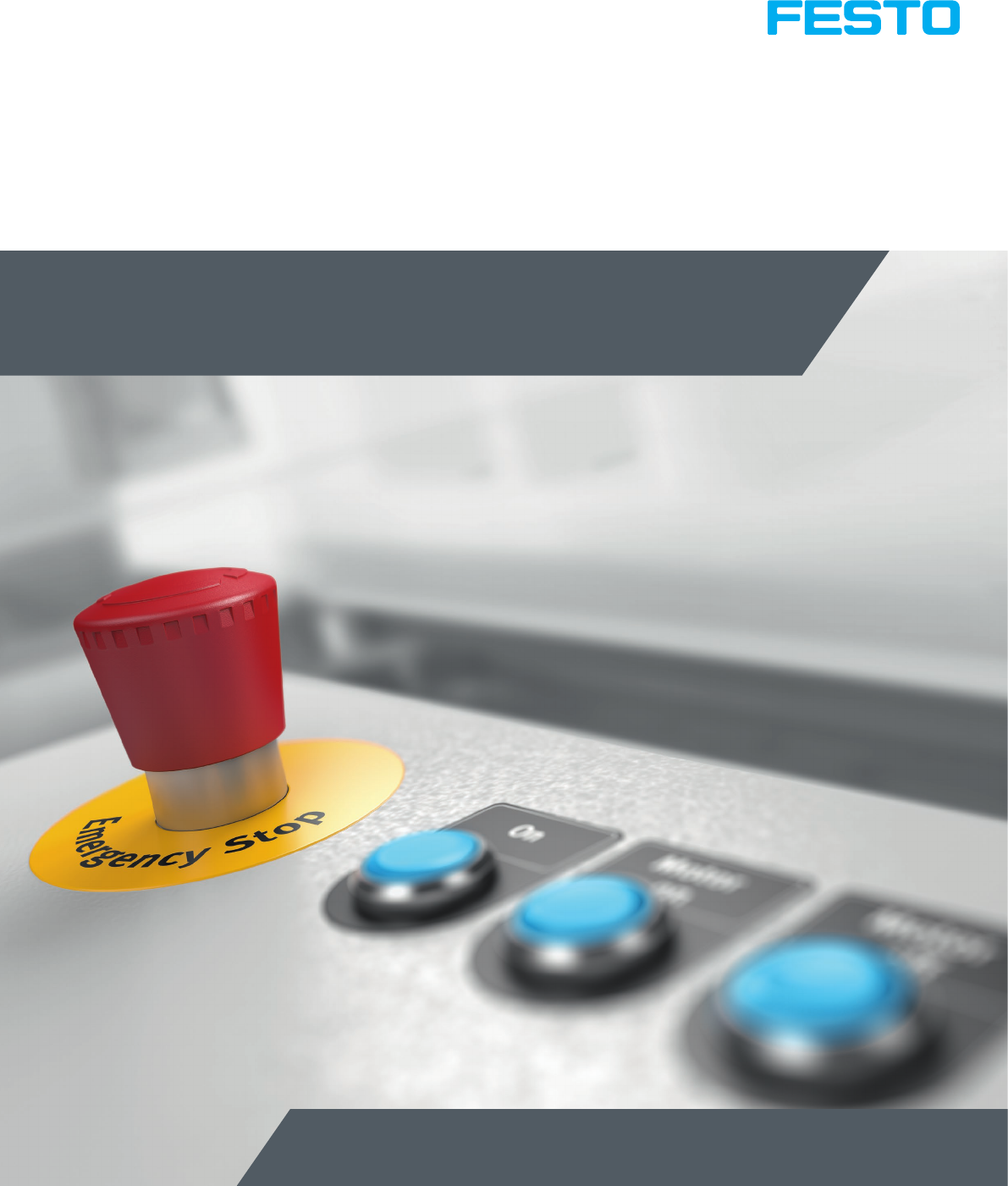 Guideline for functional safety Pneumatic and electric solutions Page Festo – your partner for safety engineering 4 ¤ Your route to a safe machine in factory automation 14 01 Your route to a safe system in the process industry 44 02 From requirements to implementation 56 03 Your safety implementation with our products 74 04 Your competency with our training 114 05 Appendix 126 ¥ 4 2019/05 – Subject to change ¤ Festo – your partner for safety engineering 02 Your route to a safe system in the process industry > 01 Your route to a safe machine in factory automation > ¤ Festo – your partner for safety engineering > 52019/05 – Subject to change Your partner for safety engineering For you, safety engineering is one of the most important requirements in factory automation or in the process industry. That is why we offer products and solutions that are the perfect prerequisite to enable you to implement safety engineering as easily and cost- efficiently as possible. Contents Introduction ........................................................................................... 6 Two sides: Security and Safety ............................................................... 8 Our added value in factory automation ................................................ 10 Our added value in the process industry .............................................. 12 05 Your competency with our training > 04 Your safety implementation with our products > 03 From requirements to implementation > ¥ Appendix > 2019/05 – Subject to change6 Introduction Reduce risk – think preventively Machines have to be designed in a way that protects people, animals, property and the environment from harm. The objective is to prevent damage of any type. Using safety-related pneumatic and electric compo- nents from Festo provides you with the security that safety measures are implemented in compliance with the EC Machinery Directive. This could, for example, be the reliable prevention of collisions or unexpected start-ups after an emergency stop. At the same time, using safety-related products also minimises the risk of liability claims. The EC Machinery Directive 2006/42/EC prescribes a risk assessment for machines. This has helped to develop and define safety objectives. These objectives are achieved using different passive protective measures and safety functions. Safety-related solutions in the form of • Components • Circuits • Engineering make it easy to achieve your safety objectives. Reliable operation of machines should be possible in all operating modes and stages of their service life. Safety-related solutions from Festo provide you with suggestions for • Commissioning • Automatic/manual operation • Setting up • Emergency functions • Prevention of unexpected start-up • Servicing/maintenance Your partner for safety Quality has many aspects at Festo, one of which is working safely with machines. The result: our safety-related automation technology. It ensures that optimum safety is achieved in the workplace. This brochure is intended as a guide and as a product overview. It covers the core questions about safety-related pneumatics and electrical engineering: • Why use safety-related pneumatic and electric components? • How can I identify the risk posed by a machine or interlinked machine to the operator or user? • Which standards and directives apply? • What protective measures are based on these? • What are the most common protective measures? If you require more information, our specialists worldwide will be happy to help. 02 Your route to a safe system in the process industry > 01 Your route to a safe machine in factory automation > ¤ Festo – your partner for safety engineering > ¤ Fe st o – yo ur p ar tn er fo r s af et y en gi ne er in g 72019/05 – Subject to change 05 Your competency with our training > 04 Your safety implementation with our products > 03 From requirements to implementation > ¥ Appendix > 8 2019/05 – Subject to change Two sides: Security and Safety Security Machines and systems should be protected against external threats. These threats can include unauthorised access, viruses, trojans, etc. Objectives: • Confidentiality: No access to systems or data without authorisation. • Integrity: Systems or data cannot be changed without authorisation. • Availability: Authorised access to systems or data may not be obstructed. These objectives lead to measures that form the basis for the protection of data, personal rights and knowledge. They are also a prerequisite for safety. Protection of machines and systems Effect or trigger Security threat (detected by carrying out a threat analysis) Risk for machines and systems Possible consequences There are two sides to safety engineering. On the one hand, it should provide protection for people and the environment against the hazards of machines and sytems. On the other hand, it should protect machines and systems against external threats, e.g. hackers. 02 Your route to a safe system in the process industry > 01 Your route to a safe machine in factory automation > ¤ Festo – your partner for safety engineering > ¤ Fe st o – yo ur p ar tn er fo r s af et y en gi ne er in g 92019/05 – Subject to change Safety (machines and system safety) A machine or system may not pose any hazard to people and the environment. Objectives: • Machine safety: Protection against hazards posed by a machine or a system (protective measures, functional safety). • Occupational safety: Protection against hazards associated with the use of a machine or system. These objectives lead to measures that form the basis for the prevention of injury and health hazards. In these guidelines, we will give an overview of products and solutions for machine safety in factory automation and in the process industry. Protection of people and the environment Failure or malfunction in a safety-related circuit Risk Incorporation in the risk