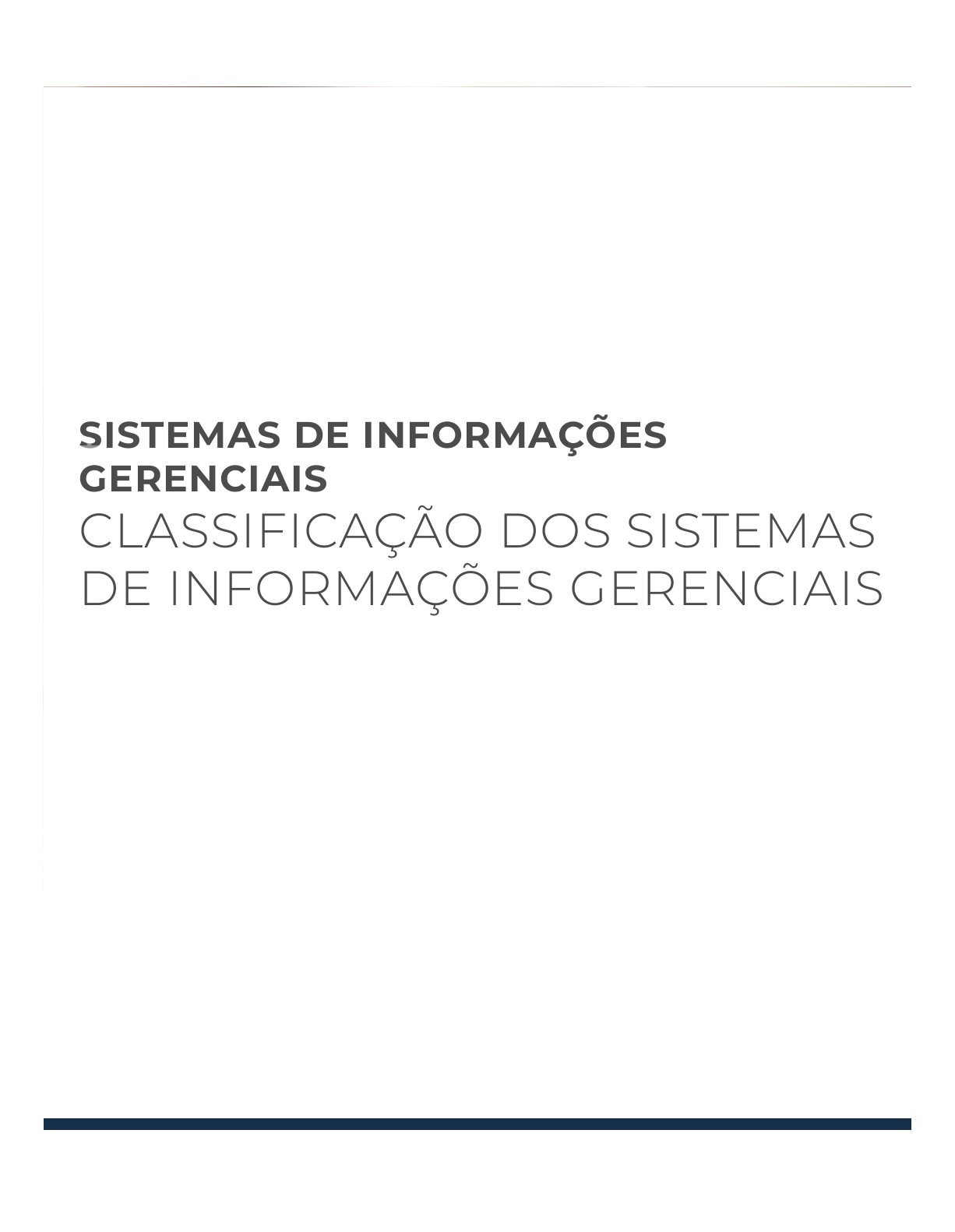 23/10/2020 Ead.br https://fadergs.blackboard.com/webapps/late-Course_Landing_Page_Course_100-BBLEARN/Controller# 1/34 SISTEMAS DE INFORMAÇÕESSISTEMAS DE INFORMAÇÕES GERENCIAISGERENCIAIS CLASSIFICAÇÃO DOS SISTEMASCLASSIFICAÇÃO DOS SISTEMAS DE INFORMAÇÕES GERENCIAISDE INFORMAÇÕES GERENCIAIS Autor: Me. Otacíl io José Pereira R e v i s o r : Pa u l o R o b e r t o M o r e l l i I N I C I A R 23/10/2020 Ead.br https://fadergs.blackboard.com/webapps/late-Course_Landing_Page_Course_100-BBLEARN/Controller# 2/34 introdução Introdução Estudar os Sistemas de informações Gerenciais é uma matéria bastante ampla e com diversos elementos e tipos complexos. Identi�car e mapear as características dessas classes de sistemas nos permite compreender e explorar melhor a �nalidade de suas aplicações e como agregam valor para as organizações. Inicialmente apresentaremos uma classi�cação dos sistemas de informações gerenciais, conforme o nível hierárquico em que são empregados. Em seguida vamos explorar os tipos de sistemas de acordo as áreas funcionais onde são aplicados. Discutiremos ainda, uma perspectiva integrada dos módulos através dos sistemas ERP. Tendo compreendido os diversos tipos e funcionalidades do sistema, apresentaremos o valor agregado e a vantagem competitiva que o uso de sistema de gestão trazem para as organizações. 23/10/2020 Ead.br https://fadergs.blackboard.com/webapps/late-Course_Landing_Page_Course_100-BBLEARN/Controller# 3/34 É comum em textos sobre gestão ou empresas identi�car duas perspectivas de abordar uma organização: pelo viés dos processos de negócios e pelo viés da hierarquia. Os processos de negócios separam a organização como um todo em departamentos, apenas para exempli�car, uma indústria de moda pode ter o setor de criação, de estoque dos tecidos, de moldes e cortes, de costura e qualidade. Ao tratar uma organização pela hierarquia, o foco é em como as ações nos setores e nas empresas serão coordenadas com os níveis de gestão. Cada setor deve ter um supervisor, um conjunto de setores um gerente que formam uma diretoria e assim por diante. Vamos iniciar nossa exploração pelos tipos de sistemas conforme os níveis hierárquicos e para isso, precisamos primeiro entender os níveis hierárquicos. Em uma visão simples podemos identi�car os níveis: operacional, gerencial ou tático e o estratégico. Laudon (2010) compõe esta hierarquia com alguns termos diferenciados para esta pirâmide com os níveis de gestão. Assim ele identi�ca a gerência sênior como a que toma decisões de longo prazo, relacionado ao conceito anterior de nível estratégico. Ele ainda nomeia a gerência média que conduz os planos e metas estabelecidos pela Classi�cação ConformeClassi�cação Conforme Níveis HierárquicosNíveis Hierárquicos 23/10/2020 Ead.br https://fadergs.blackboard.com/webapps/late-Course_Landing_Page_Course_100-BBLEARN/Controller# 4/34 gerência sênior e equivale ao nível tático ou gerencial. E por �m, ele de�ne a gerência operacional responsável por monitorar as atividades diárias e que lidam com os trabalhadores do dia a dia. Cada um destes níveis de gestão possuem necessidades de informação próprias e tomam decisões com certa abrangência na empresa e no horizonte de tempo. Portanto para cada um pode-se caracterizar um tipo de sistema de informação. Para esta classi�cação, Laudon (2010) adota: sistemas de apoio ao processamento de transações, sistemas de informações gerenciais, sistemas de apoio à decisão e sistemas de apoio ao executivo. Para os trabalhadores do “dia a dia da empresa” e sua gerência operacional, departamentalizada, existem os sistemas de processamento de transações. O gerente neste caso está preocupado com um balanço de informações habituaisdo setor, com questões tais como: qual o nível do estoque? qual volume de vendas na unidade? como saiba mais Saiba mais A organização de uma empresa por níveis hierárquicos envolve questões de autoridade, responsabilidade e liderança. Imagine você como um subordinado ou gerente/líder, qual estilo de liderança você melhor se identi�ca: a autocrática, a democrática ou a liberal? Caso queira ler a respeito e re�etir, acesse . Fonte: SEBRAE (2019, online). ACESSAR https://www.sebrae.com.br/sites/PortalSebrae/artigos/tres-estilos-de-lideranca-e-os-impactos-junto-aos-colaboradores,1cdea5d3902e2410VgnVCM100000b272010aRCRD 23/10/2020 Ead.br https://fadergs.blackboard.com/webapps/late-Course_Landing_Page_Course_100-BBLEARN/Controller# 5/34 estão as quantidades de horas dos funcionários? quais informações são necessárias para resolver o problema de certo pedido? A gerência média precisa de sistemas que estejam associados ao monitoramento, controle e tomadas de decisão. Assim destacam-se os Sistemas de Informações Gerenciais (SIG) ou seja, ferramentas de apoio para gestão de negócios, que por sua vez carecem de informações relativas aos sistemas de processamento de transações em nível operacional, dessa forma é possível gerar informações complementares à gestão, que sejam úteis e estratégicas aos administradores. Não obstante, o termo SIG é confundido muitas vezes com a própria expressão do termo Sistemas de Informação, o que acaba por si mesmo, caracterizando o contexto desta disciplina que em suma, visa estudar os controles na esfera administrativa. Conforme o título desta disciplina, Sistemas de Informações Gerenciais é um tema que vai além da integração de diversos itens é uma matéria que extrapola a abrangência de apenas um tipo de sistema, para entendimento em um nível de gestão mais especí�co e aprofundado. Estes sistemas utilizam e processam os dados das transações diárias por meio de cruzamentos, totalizações, cálculos de média e outros processamentos. Os resultados são apresentados em formato de relatórios e grá�cos, em horiz