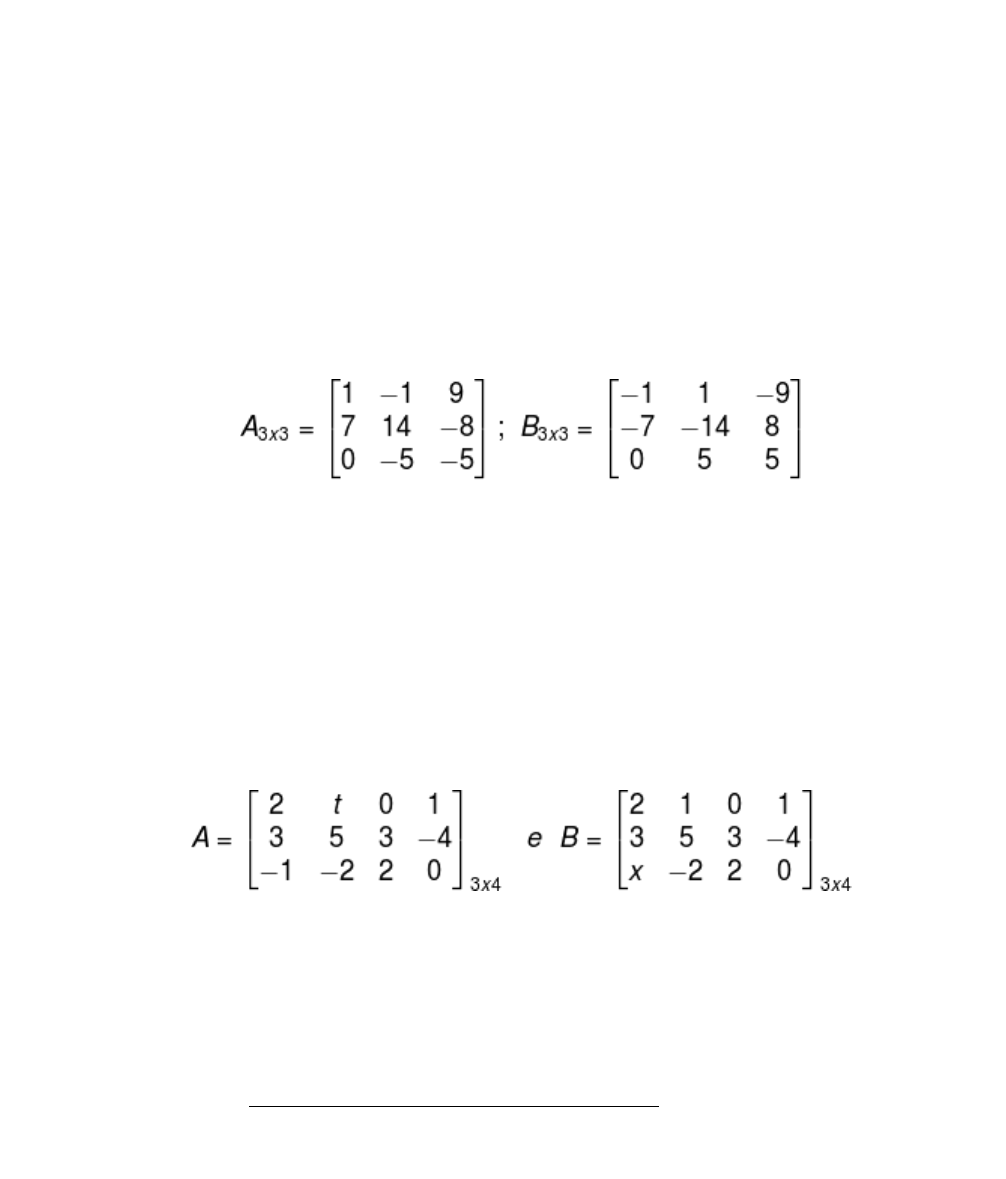 Atividade de Apoio aula EAD de 10/08/2020 a 14/08/2020 – EEEM OTERO PAIVA GUIMARÃES – Turmas 201 e 202 – Disciplina Matemática – Prof Marcio Coster COPIAR EM SEUS CADERNOS Matrizes - continuação Operações entre Matrizes O conjunto das matrizes possui as operações de adição e multiplicação muito bem definidas, isto é, sempre que operamos duas ou mais matrizes, o resultado da operação ainda pertence ao conjunto das matrizes. No entanto, e a operação de subtração? Essa operação entendemos como sendo a inversa da adição (matriz oposta), que também está muito bem definida. Antes de definirmos as operações, vamos entender as ideias de elemento correspondente e igualdade de matrizes. Elementos correspondentes são aqueles que ocupam a mesma posição em diferentes matrizes, ou seja, que estão localizados na mesma linha e coluna. Obviamente as matrizes precisam ser de mesma ordem para que existam elementos correspondentes. Veja: Os elementos 14 e -14 são elementos correspondes das matrizes opostas A e B, pois ocupam a mesma posição (mesma linha e coluna). Duas matrizes vão ser ditas iguais se, e somente se, os elementos correspondentes são iguais. Assim, dadas as matrizes A = [aij]mxn e B = [bij]mxn, essas vão ser iguais se, e somente se, aij = bij para quaisquer i j. Exemplo Sabendo que as matrizes A e B são iguais, determine os valores de x e t. Como as matrizes A e B são iguais, então os elementos correspondentes devem ser iguais, portanto: x = -1 e t = 1 Adição e subtração de matrizes As operações de adição e subtração entre matrizes são bastante intuitivas, mas antes é necessário que uma condição seja satisfeita. Para realizar essas operações, antes é necessário verificar se as ordens das matrizes são iguais. https://brasilescola.uol.com.br/matematica/adicao-subtracao-matrizes.htm Verificado essa condição, a adição e subtração de matriz dá-se somando ou subtraindo os elementos correspondentes das matrizes. Considere as matrizes A = [aij]mxn e B = [bij]mxn, então: A + B = [aij + bij] mxn A – B = [aij – bij] mxn Exemplo Considere as matrizes A e B a seguir, determine A + B e A – B. Multiplicação de um número real por matriz A multiplicação de um número real de uma matriz (também conhecida como multiplicação de matriz) por uma escalar é dada multiplicando cada elemento da matriz pela escalar. Seja A = [aij]mxn uma matriz e t um número real, então: t · A = [t · aij]mxn Veja o exemplo: Multiplicação de matrizes A multiplicação de matrizes não é tão trivial quanto a adição e subtração delas. Antes de realizar a multiplicação, uma condição deve também ser satisfeita em relação à ordem das matrizes. Considere as matrizes Amxn e Bnxr. Para realizar a multiplicação, o número de colunas da primeira matriz deve ser igual ao número de linhas da segunda. A matriz produto (que vem da multiplicação) possui ordem dada pela quantidade de linhas da primeira e quantidade de colunas da segunda. Para efetuar a multiplicação entre as matrizes A e B, devemos multiplicar cada uma das linhas por todas as colunas da seguinte maneira: o primeiro elemento de A é multiplicado pelo primeiro elemento de B e, em seguida, somado ao segundo elemento de A e multiplicado pelo segundo elemento de B, e assim sucessivamente. Veja o exemplo: Atividade extra classe : assista ao vídeo: https://www.youtube.com/watch?v=2dO6Zquwp30 https://www.youtube.com/watch?v=2dO6Zquwp30