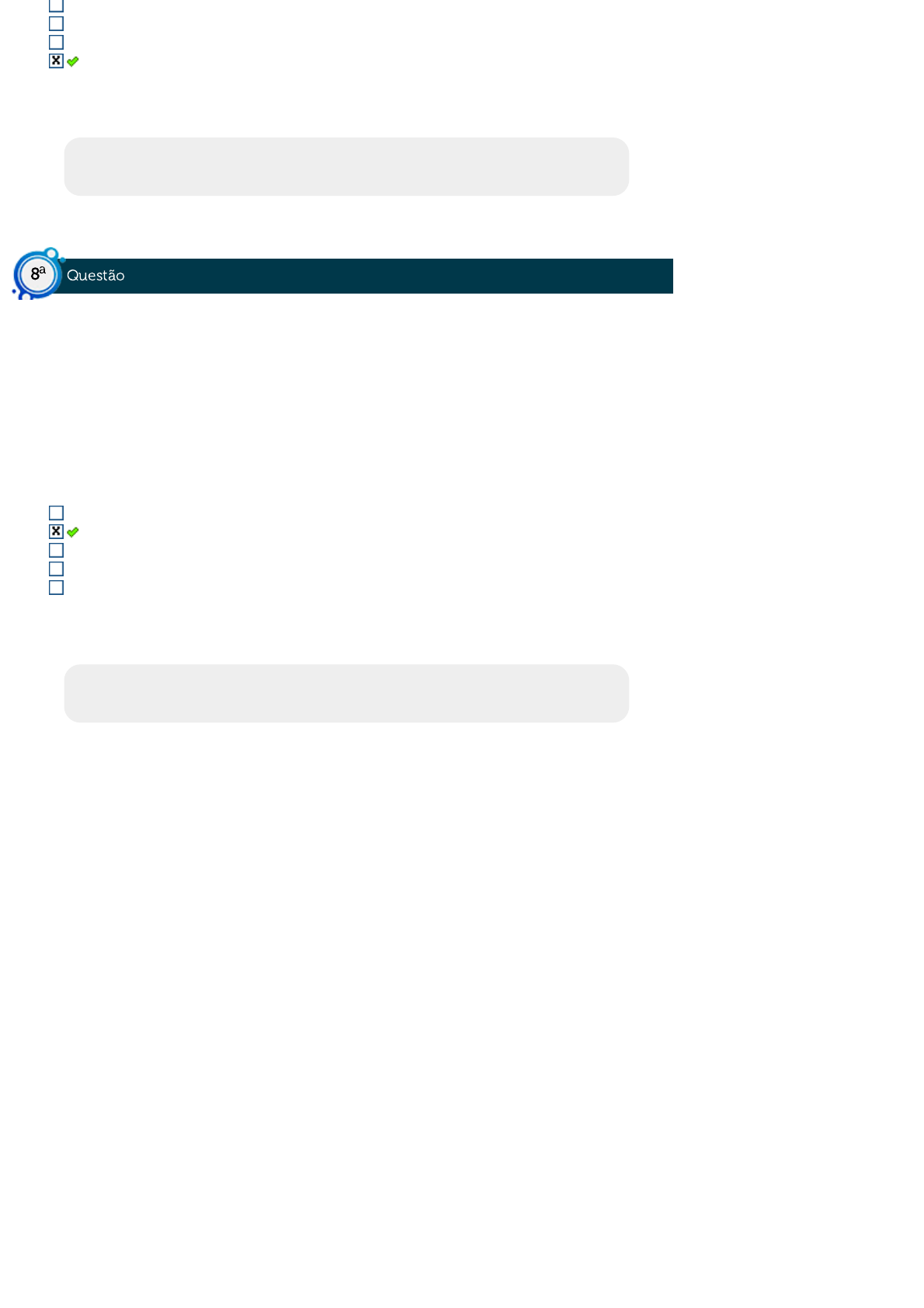 (6,5) (4,5) (5,6) (5,4) Respondido em 02/11/2020 21:20:26 Explicação: (5,4) Acerto: 1,0 / 1,0 Analise as afirmações a seguir: I- É possível que um pixel assuma, ao mesmo tempo, várias cores. Por exemplo, podemos ter um pixel dégradé. II- No esquema de representação digital de cores RGB, cada um dos constituintes vermelho, verde e azul, é capaz de assumir 256 valores diferentes. Logo, este esquema é capaz de representar 768 cores distintas. III- Se analisarmos cuidadosamente imagens em escala de cinza, notaremos que, para qualquer pixel, os três constituintes do código RGB serão iguais. Está(ão) correta(s) as afirmações: II e III Apenas III Apenas I I e II Apenas II Respondido em 02/11/2020 21:19:53 Explicação: Apenas III Questão8 a