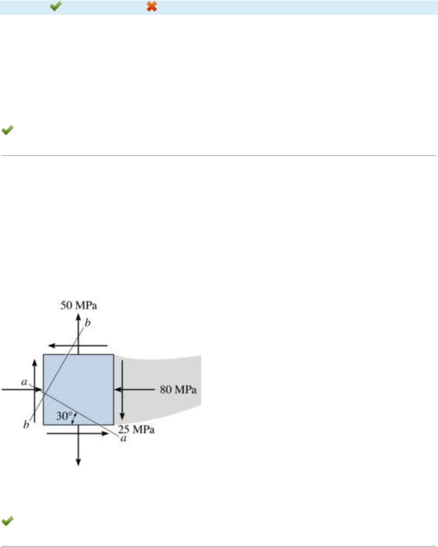 Legenda: Resposta Certa Sua Resposta Errada 1. Um vaso de pressão cilíndrico está submetido a uma pressão interna de 120 kPa e possui um raio de 0,9 m. Se este vaso consegue suportar uma tensão máxima de 200 MPa nas direções longitudinal e circunferencial, calcule a mínima espessura que este vaso deve ter e assinale a alternativa CORRETA: a) 1,08 mm. b) 2,16 mm. c) 0,27 mm. d) 0,54 mm. 2 . A figura anexa contém um estado plano de tensões em um objeto sob carregamento. Neste elemento, a tensão máxima ocorrerá em um ângulo diferente do mostrado na figura. Calcule qual a tensão máxima deste estado e assinale a alternativa CORRETA: FONTE DA IMAGEM: http://professor.pucgoias.edu.br/SiteDocente/admin/arquivosUpload/17430/material/P UC%20-%20REMA%20I%20-%2006%20- %20Transforma%C3%A7%C3%A3o%20de%20tens%C3%A3o%20no%20plano.pdf. Acesso em: 2 ago. 2019. a) 83,75 MPa. b) 105,45 MPa. c) 121,55 MPa. d) 94,15 MPa. 3. Muitas vigas utilizadas na engenharia apresentam um certo perfil de seção. O perfil em I, como na figura, é um dos mais comuns e apresenta uma certa distribuição de tensões na sua seção. Com base nestas vigas, analise as sentenças a seguir: I- Nas mesas, a tensão na direção x é aproximadamente zero. II- Nas almas, a tensão na direção z é aproximadamente zero. III- A força cortante Delta H é inversamente proporcional à espessura t. Assinale a alternativa CORRETA: FONTE DA IMAGEM: BEER, F. P. et al. Estática e mecânica dos materiais. Porto Alegre: AMGH, 2013. a) As sentenças II e III estão corretas. b) Somente a sentença I está correta. c) As sentenças I e III estão corretas. d) As sentenças I e II estão corretas. 4. A figura anexa mostra as tensões em um elemento sólido que faz parte de uma viga que corre na direção x e que está sob uma força vertical V na direção y. Com base nesta situação, classifique V para as sentenças verdadeiras e F para as falsas: ( ) A integral de Tau xy na seção transversal será igual a -V. ( ) Tau xy será igual a zero nesta seção transversal. ( ) A soma dos Sigma x em todos os elementos será igual a V. ( ) A integral de Tau zy na seção transversal será igual a -V. Assinale a alternativa que apresenta a sequência CORRETA: FONTE DA IMAGEM: http://help.solidworks.com/2017/portuguese- brazilian/SolidWorks/cworks/c_Elemental_and_Nodal_Stresses.htm. Acesso em: 1º ago. 2019. a) F - F - V - V. b) F - V - V - F. c) V - V - F - F. d) V - F - V - F. 5. A figura anexa apresenta uma viga sob um carregamento distribuído, engastada em uma parede no lado oposto. A respeito desta viga, avalie as asserções a seguir: I- Se o carregamento fosse distribuído por uma força equivalente em um único ponto entre B e C, as tensões na seção transversal no ponto A permaneceria inalterada. PORQUE II- O princípio de Saint-Venant afirma que o modo de aplicação da carga é desprezível longe do local de aplicação. Assinale a alternativa CORRETA: FONTE DA IMAGEM: https://www.tecconcursos.com.br/conteudo/questoes/709345. Acesso em: 2 ago. 2019. a) A primeira asserção é uma proposição falsa, e a segunda, uma proposição verdadeira. b) As duas asserções são proposições verdadeiras, mas a segunda não é uma justificativa correta da primeira. c) A primeira asserção é uma proposição verdadeira, e a segunda, uma proposição falsa. d) As duas asserções são proposições verdadeiras, e a segunda é uma justificativa correta da primeira. 6. O cisalhamento é uma das formas de tensão que aparecem nas seções transversais de vigas, que tem certas características. Quanto ao cisalhamento, classifique V para as sentenças verdadeiras e F para as falsas: ( ) É igual à derivada do momento ao longo da barra naquele ponto. ( ) Gera uma deformação devido às distribuições não uniformes de tensão. ( ) Induz um momento fletor no eixo paralelo à viga. ( ) Geram apenas tensões de cisalhamento. Assinale a alternativa que apresenta a sequência CORRETA: a) F - V - F - V. b) V - V - F - F. c) F - F - V - F. d) V - F - V - F. 7. O estado de tensões permite a análise das tensões agindo sobre o objeto em diferentes ângulos, podendo-se transformar as tensões de um ângulo, encontrando as equivalentes para outro ângulo. Quanto às tensões do estado de tensões, classifique V para as sentenças verdadeiras e F para as falsas: ( ) A soma das tensões normais é a mesma em qualquer transformação. ( ) A tensão positiva é de compressão e a negativa é de tração. ( ) As tensões de cisalhamento são positivas quando giram o elemento no sentido horário. Assinale a alternativa que apresenta a sequência CORRETA: a) V - F - V. b) V - F - F. c) F - V - F. d) F - V - V. 8. Os vasos de pressão de parede fina são dispositivos fechados que contém um fluido a uma pressão mais alta do que o ambiente. Quanto aos vasos de pressão de parede fina, classifique V para as sentenças verdadeiras e F para as falsas: ( ) Um tanque contendo ar comprimido é um exemplo de vaso de pressão. ( ) Não apresentam tensões tangentes. ( ) Na superfície externa, a tensão normal é a maior. ( ) Devem ter raio dez vezes maior do que a sua espessura. Assinale a alternativa que apresenta a sequência CORRETA: a) V - F - V - F. b) F - V - F - V. c) V - F - F - V. d) F - V - V - F. 9. As tensões em uma seção transversal de uma viga variam ao longo desta. Para uma viga de seção transversal retangular, a tensão de cisalhamento varia de acordo com uma forma particular. Quanto a esta forma, assinale a alternativa CORRETA: a) Inversa. b) Linear. c) Exponencial. d) Parabólica. 10.Um vaso de pressão esférico de diâmetro de 1,2 m e espessura de parede 2,5 cm encontra-se com uma pressão interna de 80 kPa. Calcule e analise as sentenças a seguir: I- Este vaso não pode ser considerado um vaso de parede fina. II- A força na seção transversal desta casca esférica é igual a 90,47 kN. III- A pressão exercida na seção transvers