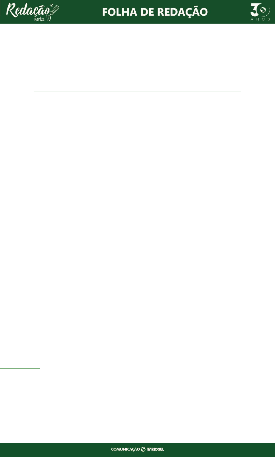 NOME DO ESTUDANTE: ANNABELLE MOURA OLIVEIRA TELEFONE: (24) 981672959 CIDADE: VOLTA REDONDA ANO ESCOLAR: TERCEIRO ANO DO ENSINO MÉDIO Tema da Redação 2020: “OS DESAFIOS DA APRENDIZAGEM NA EDUCAÇÃO A DISTÂNCIA” OBSERVAÇÕES: • Fazer a redação em até 30 linhas no formato dissertação argumentativa; • Para participar o aluno tem que se cadastrar no site www.redacaonota10.comercialonline.tv.br e depois enviar a redação na folha oficial, digitada no formato PDF; • O resultado do vencedor será divulgado no dia 4 de novembro de 2020, no RJTV 1ª edição; • Sobre o regulamento e mais informação acesse: www.redacaonota10.comercialonline.tv.br. No ano de 2020, o novo coronavírus se alastrou por todo o mundo fazendo com que 1 os indivíduos adaptassem seu estilo de vida, haja vista a necessidade de evitar 2 aglomerações para frear a disseminação da doença. Com isso, houve a necessidade de 3 adequações, principalmente na educação, introduzindo então o ensino a distância nas 4 escolas. O método remoto, entretanto, gera desafios para a aprendizagem impedindo-a de 5 ser construída em sua totalidade devido à indisciplina e ao descaso de alguns professores. 6 A princípio, é relevante perceber que a falta de disciplina fomenta o imbróglio. Nesse 7 viés, consoante o sociólogo Émile Durkheim, a escola tradicional expõe o indivíduo a uma 8 socialização secundária, ou seja, modos de socializar diferentes dos quais ele teve durante 9 sua fase de crescimento. Isto é, uma escola tradicional baseia-se em regras rígidas capazes 10 de ajudar a lidar com dessemelhanças que serão encontradas em sua vida; no entanto, no 11 EAD, o aluno está no conforto de sua casa, cheio de distrações que o afastam de uma 12 aprendizagem melhor e uniforme. Por derradeiro, o aluno retrocede, uma vez que não 13 consegue cumprir com a responsabilidade imposta por tal método. 14 Outrossim, é imperioso ressaltar que a negligência de alguns professores também é 15 um fator que dificulta a aprendizagem a distância. Por esse ângulo, como afirma o educador 16 Paulo Freire, construiu-se historicamente no país uma educação bancária em que o 17 discente assume uma postura passiva de absorção de conteúdos ministrados pelos 18 professores. Sob tal ótica, com o ensino remoto, a educação bancária ficou mais presente, 19 docentes enviam materiais em excesso esperando que os alunos os resolvam sem um 20 diálogo, apenas por conteúdos e mais conteúdos. Por conseguinte, os educandos estão 21 pré-dispostos à falta de interesse e a falhas na aprendizagem. 22 Depreende-se, portanto, a necessidade de reverter o quadro apresentado. Isso 23 posto, urge ao Ministério da Educação em associação com a mídia que, através de 24 campanhas de conscientização, incentive os pais a contribuírem, supervisionando as 25 atividades a distância de seus filhos, a fim de que o estudante consiga cumprir efetivamente 26 com as tarefas. Ademais, cabe às escolas cobrarem de seus professores aulas mais 27 dialógicas e dinâmicas, com o intuito de despertar a atenção do aluno, incentivando-o ao 28 estudo e, assim, evitando lacunas no aprendizado. Dessa forma, mesmo frente a situações 29 como a de uma pandemia, será possível garantir a plenitude da educação. 30