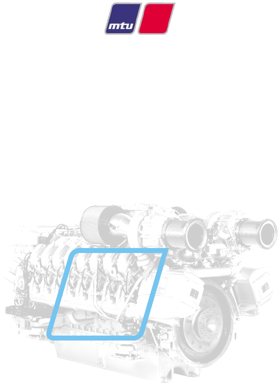 Technical Project Guide Marine Application Part 1 - General TPG-General.doc 06.2003 Rev. 1.0 MTU Friedrichshafen GmbH Ship Systems Technology Commercial D-88040 Friedrichshafen Germany Phone +49 7541 90 - 0 www.mtu-friedrichshafen.com Assistance: MTG Marinetechnik GmbH D-22041 Hamburg Germany MTG Ref.: 679/335/2100 - 001 Phone +49 40 65 803 - 0 www.mtg-marinetechnik.de Technical Project Guide Marine Application Part 1 - General June 2003 Revision 1.0 The illustrations herein are presented with kind permission of the companies listed below. Rolls-Royce AB www.rolls-royce.com S-681 29 Kristinehamn Sweden Schottel GmbH & Co. KG www.schottel.de D-56322 Spay/Rhein Germany Voith Schiffstechnik GmbH & Co. KG www.voith-schiffstechnik.de D-89522 Heidenheim Germany ZF Marine GmbH www.zf-marine.com D-88039 Friedrichshafen Germany User Information TPG-General.doc Page I 06.2003 Rev. 1.0 USER INFORMATION This –Technical Project Guide- is supposed to give the user general references for the planning, design and the arrangement of propulsion plants and on-board power generation plants. Precise information on the different diesel engine series are to be taken from the specific engine parts. Following engine parts are planned/available: Technical Projekt Guide Marine Application Part 1 - General Technical Project Guide Marine Application Part 2 - Engine Series 2000 Technical Project Guide Marine Application Part 3 - Engine Series 4000 Technical Project Guide Marine Application Part 4 - Engine Series 8000 (later on) + + + Contents CONTENTS Chapter Title Page TPG-General.doc Page II 06.2003 Rev. 1.0 1 GENERAL 1-1 1.1 Introduction 1-1 1.2 Designations 1-2 1.3 Special Documents Presented 1-3 2 DEFINITION OF APPLICATION GROUPS 2-1 2.1 General 2-1 2.2 Marine Main Propulsion and Auxiliary Propulsion Plants 2-2 2.3 On-Board Electric Power Generation/Auxiliary Power 2-2 3 SPECIFICATION OF POWER AND REFERENCE CONDITION 3-1 3.1 Definition of Terms 3-1 3.1.1 ISO Standard Fuel-Stop Power (ICFN) 3-1 3.1.2 ISO Standard Power Exceedable by 10 % (ICXN) 3-2 3.2 Reference Conditions 3-2 3.3 Load Profile 3-3 3.4 Time Between Major Overhauls (TBO) 3-4 4 FLUIDS AND LUBRICANTS SPECIFICATION 4-1 4.1 General 4-1 4.2 MTU Approved Fuels 4-1 5 ENGINE PERFORMANCE DIAGRAM 5-1 6 PROPULSION, INTERACTION ENGINE WITH APPLICATION 6-1 6.1 Propulsor 6-1 6.1.1 Abbreviations 6-1 6.1.2 Propulsive Devices (Overview) 6-3 6.1.3 Shaft Line and Gearbox Losses 6-9 6.2 Propeller 6-10 6.2.1 Propeller Geometry 6-10 6.2.2 Propeller Type Selection (FPP or CPP) 6-12 6.2.3 Direction of Propeller Rotation 6-14 6.2.4 Selection of Propeller Blade Number 6-17 6.3 Propeller Curve 6-18 6.3.1 Basics 6-18 6.3.2 Theoretical Propeller Curve 6-23 6.3.3 Estimating the Required Diesel Engine Power 6-25 Contents CONTENTS Chapter Title Page TPG-General.doc Page III 06.2003 Rev. 1.0 6.4 Propeller and Performance Diagram 6-26 6.4.1 Driving Mode 6-26 6.4.2 Fixed Pitch Propeller (FPP) 6-29 6.4.3 Controllable Pitch Propeller (CPP) 6-31 6.5 Waterjet and Performance Diagram 6-36 6.5.1 Geometry and Design Point 6-36 6.5.2 Estimation of Size and Shaft Speed 6-41 6.6 Fuel Consumption 6-42 6.6.1 General Assumptions 6-42 6.6.2 Operating Profile 6-44 6.6.3 Fuel Consumption at Design Condition 6-49 6.6.4 Cruising Range 6-50 6.6.5 Endurance at Sea 6-51 6.6.6 Calculating Examples 6-52 6.6.6.1 Example Data (Series 2000) 6-52 6.6.6.2 Fuel consumption at design condition 6-54 6.6.6.3 Fuel tank volume for a range of 500sm at 18kn 6-55 6.6.6.4 Theoretical cruising range at 12kn and fuel tank volume of 5m3 6-56 6.6.6.5 Annual fuel consumption for an operating profile 6-57 6.6.6.6 Correcting the lower heating value 6-58 6.7 Generator Drive 6-59 7 APPLICATION AND INSTALLATION GUIDELINES 7-1 7.1 Foundation 7-1 7.2 Engine/Gearbox Arrangements 7-2 7.2.1 Engine with Flange-Mounted Gearbox (F-Drive) 7-2 7.2.2 Engine with Free-Standing Gearbox, V Drive Inclusive 7-3 7.3 Generator Set Arrangement 7-6 7.3.1 Engine with Free-Standing Generator 7-6 7.3.2 Engine with Flange-Mounted Generator 7-7 7.4 System Interfaces and System Integration 7-8 7.4.1 Flexible Connections 7-8 7.4.2 Combustion Air and Cooling/Ventilation Air Supply 7-11 7.4.2.1 Combustion-air intake from engine room 7-11 7.4.2.2 Combustion-air intake directly from outside 7-11 7.4.2.3 Cooling/ventilation air system 7-11 7.4.3 Exhaust System 7-12 7.4.3.1 Arrangements, support and connection for pipe and silencer 7-12 7.4.3.2 Underwater discharge (with exhaust flap) 7-13 7.4.3.3 Water-cooled exhaust system 7-14 Contents CONTENTS Chapter Title Page TPG-General.doc Page IV 06.2003 Rev. 1.0 7.4.4 Cooling Water System 7-15 7.4.4.1 Cooling water system with engine-mounted heat exchanger 7-15 7.4.4.2 Cooling water system with separately-mounted heat exchanger 7-16 7.4.4.3 Central cooling water system 7-17 7.4.5 Fuel System 7-18 7.4.5.1 General notes 7-19 7.4.5.2 Design data 7-19 7.4.6 Lube Oil System 7-22 7.4.7 Starting System 7-23 7.4.7.1 Electric starter motor 7-23 7.4.7.2 Compressed-air starting, compressed-air starter motor 7-24 7.4.7.3 Compressed-air starting, air-in-cylinder 7-25 7.4.8 Electric Power Supply 7-28 7.5 Safety System 7-29 7.6 Emission 7-30 7.6.1 Exhaust Gas Emission, General Information 7-30 7.6.2 Acoustical Emission, General Information 7-32 7.6.2.1 Airborne noise level 7-32 7.6.2.2 Exhaust gas noise level 7-34 7.6.2.3 Structure-borne noise level 7-35 7.7 Mounting and Foundation 7-42 7.8 Acoustic Enclosure/Acoustic Case 7-43 7.9 Mechanical Power Transmission 7-44 7.10 Auxiliary Power Take-Off 7-47 7.11 Example Documents 7-48 8 STANDARD ACCEPTANCE TEST 8-1 8.1 Factory Acceptance Test 8-1 8.2 Acceptance Test According to a Classification Society 8-1 8.2.1 Main Engines for Direct Propeller Drive: 8-1 8.2.2 Main Engines for Indirect Propeller Drive 8-1 8.2.3 Auxiliary Driving Engines and Engines Driving Electric Generators 8-1 8.3 Example Documents 8-2 9 CONTROL, MONITORING AND DATA ACQUISITION (LOP) 9-1 9.1 Standard Monitoring and