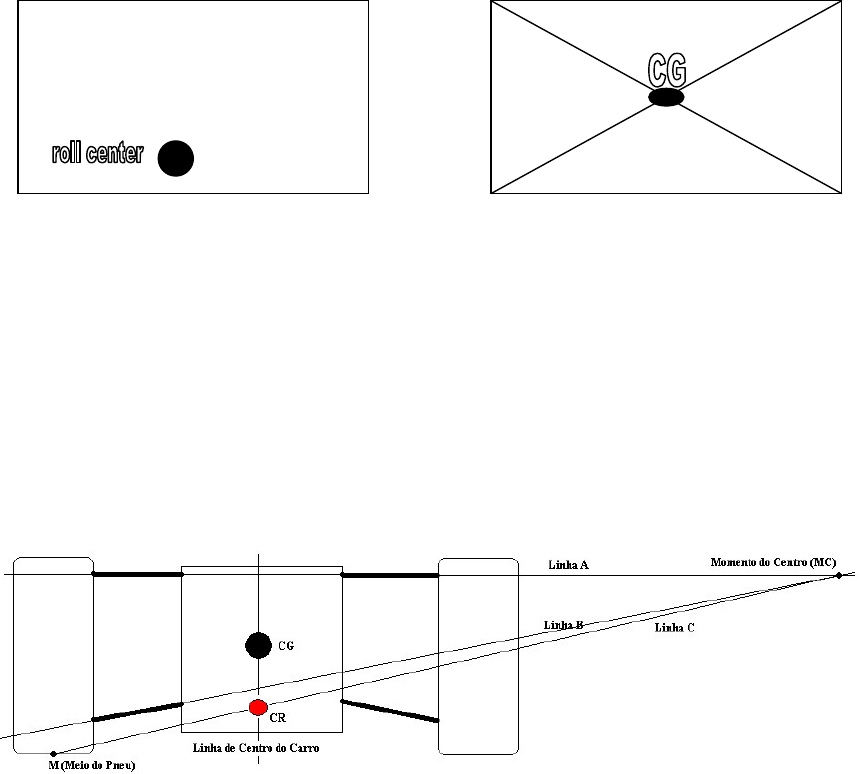 ROLL CENTER – CENTRO DE ROLAGEM (CR) Para entender o conceito do ROLL CENTER (Centro de Rolagem) temos que considerar algumas informações simples. O roll center é o eixo no qual o carro vai rolar. O Roll Center depende de vários fatores que podemos controlar. Aqui nesta explicação, irei chamar o ROLL CENTER de Centro de Rolagem ou CR. Imagine uma folha de papel sulfite preza na parede por um alfinete. O seu dedo seria o CR da folha, e a rolagem de um lado para o outro seria a regulagem que nos buscamos. Imagine o seguinte: Imagine que estas são as folhas de papel sulfite, na esquerda temos o CR e na direita o CG (Centro de Gravidade) da folha. Imagine que na direita fosse a parte traseira do seu carro, para achar o CG do seu carro você deve traçar uma linha da parte superior da roda esquerda até a parte inferior da direita e, da parte superior da direita até a parte inferior da esquerda. O cruzamento destas linhas será o CG do seu carro. O CG do seu carro é a constante desta equação e o CR seria a nossa variável. Agora sabendo como achar o CG, faça uma experiência para entender melhor o CR. Ache o CG de uma folha de papel sulfite e imagine o CR variando no eixo vertical dessa CG e apóie seu dedo no CR. Quanto maior a distância entre o CR abaixo do CG maior será a alavanca sendo assim, a inércia na curva fará o carro rolar ainda mais em torno do CR. Se o CR e o CG estiverem localizados no mesmo ponto, o carro não irá rolar de forma alguma. A maioria dos nossos carros de Radio Controle, o CR está localizado abaixo do CG. Se o CR estiver localizado acima do CG o carro irá se comportar como uma moto. Irá se inclinar para dentro da curva. Bom, sabendo agora a relação básica entre o CR e o CG, o próximo passo agora é achar o CR! Para achar o CR do seu carro. Basta você desenhar algumas linhas imaginárias. Veja o desenho abaixo: Primeiro desenhe a LINHA A, desenhada no mesmo plano do link superior da suspensão; logo após desenhe a LINHA B que segue o mesmo plano da balança inferior da suspensão. Ambas as linhas irão se encontrar formando um ponto, iremos chamar este ponto de Momento do Centro (MC). Ache o ponto M (Meio do pneu) que seria o ponto médio do contato do pneu com a superfície de contato. Para Achar o CR basta traçar a LINHA C, do ponto M até o ponto MC e a intersecção da LINHA C com a linha de centro do carro é o nosso CR. Depois disso, sabendo o conceito básico do CR em relação ao CG e sabendo também como achar o CR. Vamos analisar como controlar o CR do carro. Nós podemos controlar o CR mudando a posição de fixação do link superior da suspensão do nosso carro assim como, também podemos controlar o CR mudando a posição das balanças inferiores da suspensão. Para saber melhor o que você está fazendo, use o diagrama mostrado. Um exemplo básico: No exemplo 1: O pivot interno do link superior da suspensão alto resulta em um CR relativamente baixo. No exemplo 2: O pivot interno do link superior da suspensão baixo resulta em um CR relativamente alto. Depois de todas as explicações básicas, teorias, diagramas e exemplos temos abaixo um quadro com algumas situações e soluções: Centro de Rolagem Problema Ocorrido Causa do Problema CR Dianteiro CR Traseiro Carro muito solto enquanto Muito peso sendo transferido para está entrando em uma cruva os pneus dianteiros Erguer (1º) Baixar (2º) Carro muito solto enquanto Peso insuficiente sendo transferido está saindo de uma curva para os pneus traseiros em relação aos dianteiros. Erguer (2º) Baixar (1º) Carro sai de frente enquanto Peso insuficiente sendo transferido está entrando na curva para os pneus dianteiros em relação aos traseiros. Baixar (1º) Erguer (2º) Carro sai de frente enquanto Muito peso sendo transferido para está saindo da curva os pneus traseiros. Baixar (2º) Erguer (1º) Carro sai de frente no meio da Muito peso foi transferido para curva enquanto está com os pneus traseiros em relação aos aceleração neutra dianteiros. Baixar Erguer Carro muito solto no meio da Muito peso foi transferido para curva enquanto está com os pneus dianteiros em relão aos aceleração neutra traseiros. Erguer Baixar Note que as soluções estão classificadas quanto a prioridade. O que você deve fazer primeiro ou em segundo, baixar ou erguer o CR do seu carro. Espero que este artigo ajude a fazer o set-up ideal para o seu carro! Autor: Flávio Loures Salinet Fonte: Chassis Setup Guide – Martin Crisp