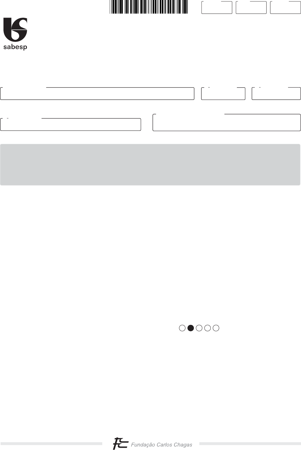 N do CadernooN de Inscriçãoo ASSINATURA DO CANDIDATO N do Documentoo Nome do Candidato Maio/2018 Técnico em Sistemas de Saneamento 01 (Química) Concurso Público para preenchimento de vagas COMPANHIA DE SANEAMENTO BÁSICO DO ESTADO DE SÃO PAULO P R O V A INSTRUÇÕES VOCÊ DEVE ATENÇÃO - Verifique se este caderno: - corresponde a sua opção de cargo. - contém 50 questões, numeradas de 1 a 50. Caso contrário, solicite imediatamente ao fiscal da sala a substituição do caderno. Não serão aceitas reclamações posteriores. - Para cada questão existe apenas UMAresposta certa. - Leia cuidadosamente cada uma das questões e escolha a resposta certa. - Essa resposta deve ser marcada na FOLHADE RESPOSTAS que você recebeu. - Procurar, na FOLHADE RESPOSTAS, o número da questão que você está respondendo. - Verificar no caderno de prova qual a letra (A,B,C,D,E) da resposta que você escolheu. - Marcar essa letra na FOLHADE RESPOSTAS, conforme o exemplo: - - Marque apenas uma letra para cada questão. Será anulada a questão em que mais de uma letra estiver assinalada. - Responda a todas as questões. - Não será permitida qualquer espécie de consulta ou comunicação entre os candidatos, nem a utilização de livros, códi- gos, manuais, impressos ou quaisquer anotações. - Aduração da prova é de 3 horas para responder a todas as questões objetivas e preencher a Folha de Respostas. - Ao término da prova, chame o fiscal da sala e devolva todo o material recebido. - É proibida a divulgação ou impressão parcial ou total da presente prova. Direitos Reservados. Marque as respostas com caneta esferográfica de material transparente de tinta preta ou azul. Não será permitida a utilização de lápis, lapiseira, marca-texto, borracha ou líquido corretor de texto durante a realização da prova. N do CadernooN de Inscriçãoo ASSINATURA DO CANDIDATO N do Documentoo Nome do Candidato Colégio Sala Ordem Conhecimentos Básicos Conhecimentos Específicos A C D E Caderno de Prova ’46’, Tipo 001 MODELO 0000000000000000 TIPO−001 00001 0001 0001 SABES-TSS01-Química-46 9 CONHECIMENTOS ESPECÍFICOS 26. Na determinação da Demanda Química de Oxigênio (DQO) o excesso de dicromato utilizado como oxidante é titulado pelo sulfato ferroso amoniacal, segundo a reação iônica mostrada abaixo. Fe2+ + Cr2 -2 7O + H+ → Fe3+ + Cr3+ + H2O A soma dos coeficientes que tornam a reação corretamente balanceada é (A) 20. (B) 21. (C) 29. (D) 35. (E) 36. 27. A determinação dos sólidos que constituem todas as substâncias que permanecem na cápsula após a total secagem de um determinado volume de amostra de água, em estufa (105 ± 2 °C) até peso constante, refere-se aos sólidos (A) totais. (B) fixos. (C) voláteis. (D) sedimentáveis. (E) dissolvidos. 28. O eletrodo de vidro é o mais utilizado na determinação do pH. Quando a membrana de vidro está imersa em uma solução, o seu funcionamento baseia-se na variação (A) da corrente elétrica em função da concentração de íons hidrogênio na solução. (B) do potencial elétrico em função da concentração de íons hidrogênio na solução. (C) da condutividade elétrica em função da concentração de íons hidrogênio na solução. (D) da carga elétrica em função da concentração de íons hidrogênio na solução. (E) da resistividade elétrica em função da concentração de íons hidrogênio na solução. 29. Considere as afirmações abaixo sobre as Lagoas de Maturação utilizadas no tratamento de esgotos: I. Seu principal objetivo é a remoção de patogênicos. II. Possui condições adversas aos microrganismos, como elevada radiação e pH. III. É empregada principalmente como pós-tratamento aos processos que reduzem a Demanda Bioquímica de Oxigênio (DBO). Está correto o que se afirma em (A) I e II, apenas. (B) I e III, apenas. (C) II e III, apenas. (D) I, apenas. (E) I, II e III. 30. Nesse tipo de tratamento a matéria orgânica é estabilizada pela ação de organismos aeróbios que se encontram aderidos a um meio suporte que pode ser de pedras ou plástico. O texto refere-se a (A) filtros-prensa. (B) tanques de aeração. (C) reatores UASB. (D) filtros biológicos. (E) reator anaeróbio de fluxo ascendente. 31. Sobre os lodos ativados, é correto afirmar que (A) são utilizados com o objetivo de desinfecção. (B) são utilizados em tanques com aeração mecânica. (C) seu principal objetivo é a eliminação de nitrogênio e fósforo. (D) são utilizados em processos anaeróbicos com o objetivo de estabilizar a matéria orgânica. (E) são utilizados nos reatores UASB. Caderno de Prova ’46’, Tipo 001 10 SABES-TSS01-Química-46 32. As máscaras faciais utilizadas como EPI contêm, como principal componente para proteção contra gases e vapores tóxicos, devido ao seu alto poder de adsorção, (A) fibra de celulose. (B) fibra de vidro. (C) carvão ativado. (D) óxido de alumínio. (E) carbonato de cálcio. 33. Os extintores indicados para incêndios de materiais eletricamente energizados são (A) pó químico e água. (B) espuma mecânica e água. (C) pó químico e CO2. (D) água e CO2. (E) pó químico e espuma mecânica. 34. Um resistor de resistência elétrica igual a 20 Ohm é percorrido por uma corrente elétrica de 4 amperes. A tensão elétrica, em volts, gerada nesse sistema é (A) 5. (B) 16. (C) 80. (D) 160. (E) 320. 35. Considere a figura abaixo. De acordo com a simbologia eletrônica, a figura representa o componente denominado (A) diodo. (B) resistor. (C) capacitor. (D) transistor. (E) fusível. 36. Numa estação de tratamento de água o ...... utilizado com a função de ...... reage com o hidróxido de cálcio, formado a partir da adição de cal à água. As lacunas são, correta e respectivamente, preenchidas por (A) A(OH)3 − coagulante (B) A2(SO4)3 − regulador de pH (C) FeSO4 − oxidante (D) A2(SO4)3 − coagulante (E) FeSO4 − regulador de pH 37. Considere a figura a