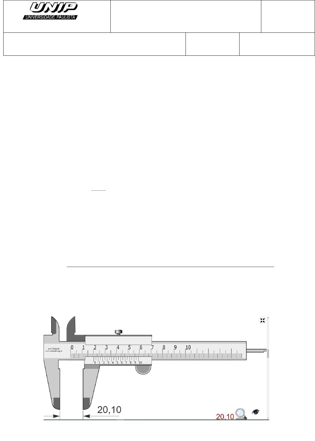 Instituto de Ciências Exatas e Tecnologia Campus Assis Curso: Engenharia – Ciclo Básico Disciplina: Mecânica da Partícula - Prática Prof. RODRIGO C. ALVES Nota Nome do aluno: Matheus Rian Souza Santos RA:F31DCJ2 Turma:EB2P46 ESTUDO DO PAQUÍMETRO, MICRÔMETRO E MULTÍMETRO 01 – Os instrumentos de medidas apresentados são de grande importância na vida de um engenheiro. Saber aferir grandezas e representar de forma correta é a base para o desenvolvimento de diversos trabalhos. Nessa primeira atividade, descreva quais as aplicações de medida do multímetro, micrômetro e paquímetro. Fale sobre o desenvolvimento de cada um dos instrumentos e faça uma associação da aplicação de cada instrumento de acordo com o curso que está cursando: mecânica ou civil. R: O Multímetro é um equipamento utilizado para fazer a medição da resistência elétrica, tensão ou corrente contínua e da tensão ou corrente alternada, ele é capaz de medir também a capacitância, temperatura, freqüência de sinais alternados, dentre outras grandezas elétricas; Paquímetros é instrumento de medição muito simples, suas escalas, são dadas em milímetros e polegadas permitindo realizar medições das mais variadas possíveis como medidas internas, medidas externas, diâmetros, raios, profundidades através do posicionamento correto de suas pinças e hastes; já Micrômetro é um instrumento metrológico capaz de medir as dimensões lineares de um objeto, como espessura, altura, largura, profundidade, diâmetro com precisão da ordem de micrometros. Dentro da engenharia civil, tanto o paquímetro quanto o micrometro, podem ser utilizados na medição de matérias essenciais para a construção civil, que vão desde pequenos pregos e parafusos, até a medição das ligas utilizadas na partes metálicas das estruturas, por mais que o multímetro seja mais utilizado na engenharia elétrica, ele também pode ser utilizado na área da engenharia civil, na medição da parte elétrica das construções ou ate mesmo aparelhos. 02 – Acesse a página: https://www.stefanelli.eng.br/paquimetro-virtual-simulador-milimetro-05/ Indique quais são os principais elementos de um paquímetro. Explique de forma detalhada como são feitas as medidas utilizando esse aparelho e qual sua precisão. Utilize um objeto externo (uma caneta, por exemplo) e faça a leitura da sua medida utilizando o paquímetro (faça o anexo de uma foto no momento da medida). R: Encostos, orelhas, haste de profundidade, escala inferior (graduada em mm), escala superior (graduada em polegadas), nônio ou vernier inferior (mm), nônio ou vernier superior (polegada), e por último a trava. O primeiro passo é saber qual das quatro medidas irá ser realizada. após decidir isso, o operador deverá posicionar a peça medida bem posicionada no centro da parte de medição correta: orelhas (medida interna), bicos (medidas externas), haste (profundidade) e medida com ressalto (parte superior do parquímetro). Em segundo lugar, observe onde o 0 (zero) do cursor móvel (nônio) está e com qual número do cursor fixo (superior) está coincidindo. Isso indicará o primeiro numeral da nossa medida. Se o número 0 ficou exatamente alinhado com um número superior, está é sua medida exata da peça. Caso o zero tenha ficado entre dois números, como por exemplo, entre o 4 e 5, isso indica que o primeiro número da nossa medida será 6 mm. Em quarto lugar, verificamos qual a marcação que coincide em ambas escalas, na fixa e na móvel. Observe qual marcação (graduação de medida) que coincidiu. Este será seu segundo número, representando os décimos de milímetros.. 03 – Acesse a página: https://www.stefanelli.eng.br/micrometro-virtual-milimetro-centesimal-simulador/ Indique quais são os principais elementos de um micrômetro. Explique de forma detalhada como são feitas as medidas utilizando esse aparelho e qual sua precisão. Utilize um objeto externo (uma moeda, por exemplo) e faça a leitura da sua espessura utilizando o micrômetro (faça o anexo de uma foto no momento da medida). R: As principais partes do micrômetro são denominadas de arco, isolante térmico, parafuso micrométrico, faces de medição, bainha, tambor, porca de ajuste, catraca e trava. O instrumento é, ainda, usado por relojoeiros e cientistas para medir o diâmetro exterior de objetos esféricos. O objeto a ser medido deve ser colocado entre o pistão e o suporte. Ao girar o controle do pistão, deve-se tocar no objeto e ouvir três cliques. Após, deve-se adicionar a trava, enquanto o objeto ainda está no instrumento e depois tirar o objeto para fazer a leitura da medida. Os traços grandes da bainha valem 0,100″ e os pequenos valem 0,025″, 0,050″ e 0,075″. Quando o objeto é colocado no instrumento, se vê o local que o tambor parou. A leitura começa, então, pelos traços grandes da bainha, somados aos menores.Por exemplo: o tambor ultrapassou o traço grande 0,400 e um traço pequeno, que vale 0,025. Somando, já temos 0,425.O traço do tambor que se encontrar com a linha horizontal é, então, somado a este valor.Por exemplo: marcamos 0,015 no tambor. Então, este valor será somado aos 0,425 que já temos, o que resultará em 0,440 como a medida. 04 – O multímetro é um dispositivo utilizado no sistema de circuitos elétricos. Talvez não tenha uma aplicação direta para suas área de atuação profissional, mas conhecer seu funcionamento é um recurso fundamental. Explique quais são as possíveis medidas que um multímetro pode realizar. Explique a escala de valores presente em cada opção de medida. R: É um instrumento de medida que incorpora pelo menos três medidores de grandezas elétricas: voltímetro, amperímetro e ohmímetro. Alguns multímetros incluem ainda medidas de capacitância, freqüência, continuidade, temperatura e teste de transistores e diodos. VOLTÍMETRO: usado para medir a diferença de potencial elétrico entre do