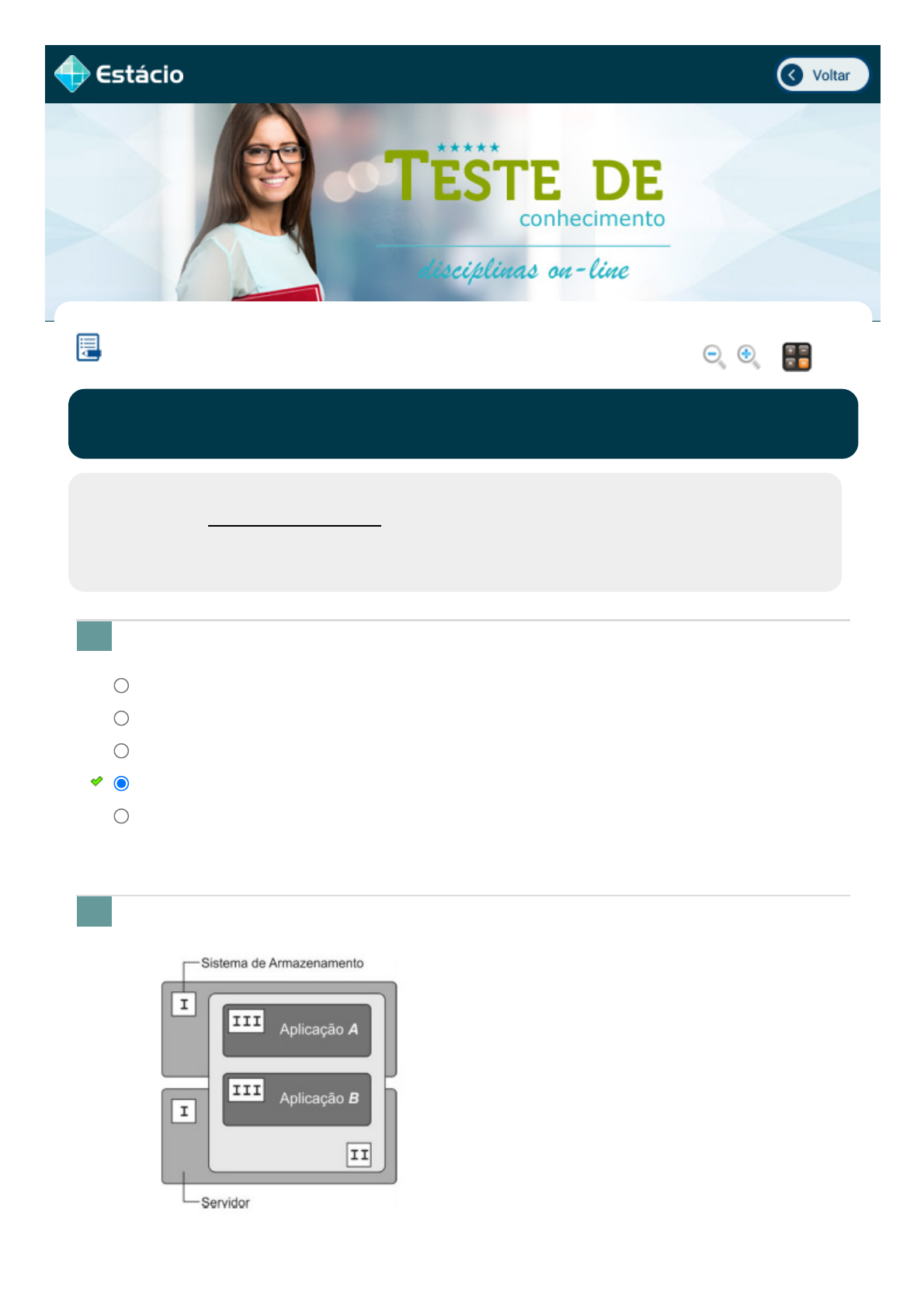 14/11/2020 Estácio: Alunos https://simulado.estacio.br/alunos/?user_cod=2563105&matr_integracao=202001158634 1/4 (SANASA Campinas - Analista de Tecnologia da Informação - Suporte de Infraestrutura TI - FCC (2019)) Em uma empresa, um modelo de cloud computing correto a ser utilizado seria a nuvem: A computação em nuvem distribui os recursos na forma de serviços. Esses serviços, por sua vez, podem ser disponibilizados em qualquer uma das camadas que suportam a arquitetura para desenvolvimento em nuvem. Considere a figura: A figura apresenta um exemplo da relação entre os cenários de uma arquitetura em nuvem, na qual dois ___I___ são usados para a construção de um ___II___ , que, por sua vez, é utilizado para a implementação de duas aplicações COMPUTAÇÃO EM NUVEM E WEB SERVICES EM LINUX Lupa Calc. EEX0031_202001158634_ESM Aluno: GABRIEL NOVELLO SILVA Matr.: 202001158634 Disc.: COMP NUV WEB LIN 2020.3 EAD (GT) / EX Prezado (a) Aluno(a), Você fará agora seu TESTE DE CONHECIMENTO! Lembre-se que este exercício é opcional, mas não valerá ponto para sua avaliação. O mesmo será composto de questões de múltipla escolha. Após responde cada questão, você terá acesso ao gabarito comentado e/ou à explicação da mesma. Aproveite para se familiarizar com este modelo de questões que será usado na sua AV e AVS. 1. protegida, que permite o armazenamento de dados em um local seguro e robusto. Ideal para uma empresa que atua em um setor com um alto nível de regulação e com informações confidenciais. pública, pois a empresa ficaria responsável apenas por algumas atividades de gerenciamento, como troca de peças, segurança física e atualização de firmware. privada, que é conhecida por oferecer serviços de IaaS e SaaS. O Microsoft Office 365, a Amazon AWS e o Dropbox são fornecidos por meio desse tipo de arquitetura. híbrida, em que as soluções podem ter sua escalabilidade comparável com a de ambientes públicos e o gestor de TI poderá definir políticas de segurança de acordo com as demandas internas da empresa. pública, recomendada para quem precisa de uma plataforma com alto controle. No entanto, a empresa fica impedida de coletar verbas com a venda de anúncios, mesmo em modelos de negócio freemium. 2. javascript:voltar(); javascript:voltar(); javascript:diminui(); javascript:aumenta(); javascript:calculadora_on(); 14/11/2020 Estácio: Alunos https://simulado.estacio.br/alunos/?user_cod=2563105&matr_integracao=202001158634 2/4 (___III___). Preenchem as lacunas I, II e III correta e respectivamente: A computação em nuvem possui inúmeras vantagens e algumas desvantagens, sendo, no entanto, cada vez mais utilizada por consumidores da área de TI, pois suas vantagens tem preponderado sobre as possíveis desvantagens. Para funcionar adequadamente, a computação em nuvem requer diversos mecanismos para facilitar seu funcionamento e atender diversos requisitos de qualidade e desempenho. Assinale a opção que indica um dos mecanismos mais importantes para um ótimo desempenho da computação em nuvem: O mecanismo que controla e rastreia identidades de usuários e privilégios de acesso para recursos, ambientes e sistemas de TI, abrangendo controles e políticas de acesso, e níveis de privilégios de usuário, se chama: Existem três modelos de serviço em nuvem básicos (ou modelo de entrega em nuvem). Qual é o modelo no qual o contratante entrega uma plataforma de computação e pilha de soluções como um serviço, facilitando a implantação de aplicativos sem o custo e a complexidade do cliente ter que comprar e gerenciar seu próprio hardware e software, além da execução do provisionamento de recursos de hospedagem? O contrato realizado entre o provedor de serviços de nuvem e o consumidor de serviços de nuvem, que define a expectativa do nível de serviço que o provedor promete fornecer ao consumidor, é denominado: PaaS - SaaS - IaaS IaaS - SaaS - PaaS IaaS - PaaS - SaaS SaaS - IaaS ¿ PaaS SaaS - PaaS - IaaS 3. Utilização apenas de SSDs para armazenamento devido sua maior velocidade Balanceamento de carga Utilização de medidores de tempo de transferências. Utilização de servidores dedicados Utilização de janelas de transferência com parâmetros definidos previamente 4. Hashing Certificado digital Imagem de servidor virtual protegida Assinatura digital Gerenciamento de Identidade e Acesso 5. Platform-as-a-Service - PaaS Infrastructure-as-a-Service - IaaS Communication-as-a-Service - CaaS Integration-as-a-Service - IaaS Software-as-a-Service - SaaS 6. Mean-Time Between Failures - MTBF Cloud Service Provider - CSP Service Level Agreement - SLA Mean-Time to Switchover - MTSO Cloud Service Consumer - CSC 14/11/2020 Estácio: Alunos https://simulado.estacio.br/alunos/?user_cod=2563105&matr_integracao=202001158634 3/4 (CESPE/CEBRASPE/2014) Sobre a Plataforma de computação em nuvem Microsoft Azure. I - Atualmente, as empresas de comércio na Internet podem disponibilizar suas aplicações na nuvem, como, por exemplo, na plataforma Azure da Microsoft; da mesma forma, as organizações podem fazer migrar suas aplicações de e-mail para a nuvem. Essas nuvens oferecem ambientes de computação e armazenamento escaláveis, mas, por questões afetas à segurança, impedem o acesso implícito às suas redes privativas de alto desempenho. II - Windows Azure, Microsoft Office 365 e SkyDrive (OneDrive) são exemplos, respectivamente,) e IaaS, SaaS e PaaS na computação em nuvem. Julgue as sentenças e selecione a opção correta. Inúmeros comandos do Linux permitem, ou até exigem, o uso de argumentos e opções para sua execução. Cada comando possui suas regras de sintaxe e ordenação das opções e argumentos e, em muitos casos, pode exigir mais de um argumento para realizar uma determinada operação. Qual caractere é usado para separar o comando de seus argumentos? Considere a sequência de comandos abaixo, digitadas em um terminal