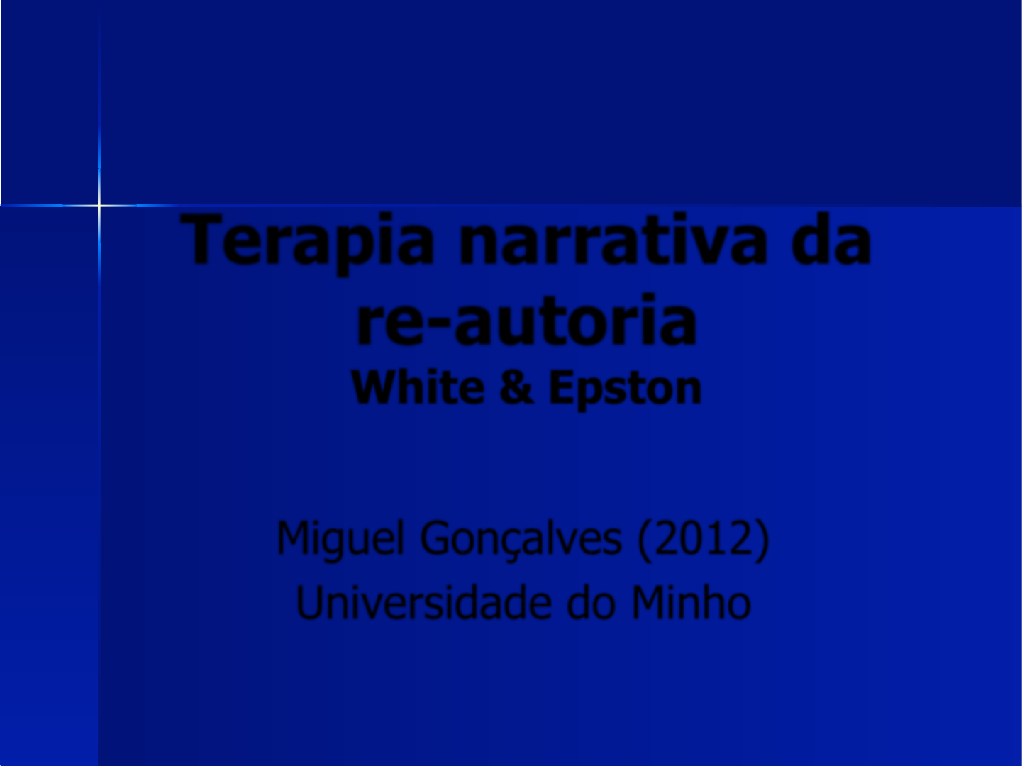 Terapia narrativa da re-autoria White & Epston Miguel Gonçalves (2012) Universidade do Minho Terapia da re-autoria: influências centrais n Bateson – O mapeamento dos acontecimentos no tempo e as distinções – Importância das explicações negativas n O exemplo de Darwin versus Lamarck n Bruner – A natureza narrativa da significação n Foucault – Pressupostos organizadores das nossas vidas – A deconstrução das práticas de subjugação 27/11/16 2 Miguel Gonçalves (Universidade do Minho) Exercício – Exercício (3 pessoas: “cliente”, terapeuta, observador) n Elaborar uma entrevista para compreender a história do cliente (20 minutos) n Tarefa para o observador e terapeuta depois de concluída a entrevista: 27/11/16 3 Miguel Gonçalves (Universidade do Minho) Exercício – Construir uma breve narrativa de vida do cliente, sem recurso a jargão profissional – Reflectir sobre que constrangimentos serão responsáveis pelo sofrimento do cliente? – Especular sobre que pressupostos culturais alimentam as suas dificuldades. n Cliente não participa – no fim procura reflectir sobre o que mais o surpreendeu no que foi elaborado 27/11/16 4 Miguel Gonçalves (Universidade do Minho) Linguagem psi e narrativa n In contrast to internal state conceptions, intentional state conceptions of identity are distinguished by the notion of “personal agency”. This notion casts people as active mediators and negotiators of life’s meanings and predicaments, both individually and in collaboration with others n White, 2007, p. 103 27/11/16 Miguel Gonçalves (Universidade do Minho) 5 Pressupostos da terapia narrativa (adap. Winslade & Monk, 1999) n Os seres humanos vivem as suas vidas de acordo com histórias n O que não é historiado é tornado irrelevante n As histórias não são produções individuais – vivem dos discursos e nas relações n os discursos sociais dominantes impõem limites à possibilidade de mudança na vida das pessoas n a desconstrução das narrativas pessoais deve ter em há sempre discursos contraditórios acessíveis 27/11/16 6 Miguel Gonçalves (Universidade do Minho) n A desconstrução dos discursos dominantes abre novas possibilidades de vida n A tarefa do terapeuta é levar o cliente a criar uma nova história com um novo argumento mais satisfatório: o contra- argumento 27/11/16 7 Miguel Gonçalves (Universidade do Minho) n “ A vida é uma coisa terrível a seguir à outra. Quem procura ajuda terapêutica já não sofre disto, para ele ou ela a vida é sempre a mesma coisa terrível” (Weakland) 27/11/16 8 Miguel Gonçalves (Universidade do Minho) Diagnóstico narrativo (Alon, 1994) n Narrativas fechadas – Princípios editoriais: desconstrução, procurar elementos fora do enquadramento narrativo dominante n Narrativas caóticas – Sem continuidade, ou com exclusão sistemática de temáticas (e.g., responsabilidade) ou de componentes centrais (e.g., emoções) – Princípios editoriais: procurar continuidades, conferir unidade temática 27/11/16 9 Miguel Gonçalves (Universidade do Minho) n Narrativas sem sentido – O que organizava a vida até então deixa de fazer sentido, a vida é vivida de modo trivial, ou é sentida como um desperdício. – Princípios editoriais: aumentar o envolvimento, procurar outros significados, aumentar a “agência” 27/11/16 10 Miguel Gonçalves (Universidade do Minho) Narrativas preferenciais n Omer e Alon, 1999 – Eu sou o herói desta história (estou no papel de narrador) – Esta história é a minha história – Esta história tem futuro 27/11/16 11 Miguel Gonçalves (Universidade do Minho) Metáforas para o questionamento terapêutico n Fases do processo terapêutico – Re-autoria n Re-colocar a pessoa numa posição de autoria de uma história de vida preferencial – Desconstrução – Reconstrução – Consolidação – Antropológica n Ritual de passagem – Fase de separação – Fase de limiar – Fase de re-incorporação 27/11/16 12 Miguel Gonçalves (Universidade do Minho) Desconstrução n Problema = “um sistema de significados que interfere com a direcção preferida de alguém” (Zimmerman & Dickerson, 1996) n Questionar as verdades ou os pressupostos tomados como verdadeiros ou inquestionados que sustentam a história problemática 27/11/16 13 Miguel Gonçalves (Universidade do Minho) Desconstrução e curiosidade terapêutica n “This is not just curiosity. It is curiosity about how things might be otherwise, a curiosity about that which falls outside of the totalizing stories that persons have about their lives, and outside of those dominant practices of self and of relationship.” (White, 1991, p. 146) 27/11/16 14 Miguel Gonçalves (Universidade do Minho) Desconstrução n Exercícios n Perguntas internalizadores vs. Externalizadoras* n Bons e maus exemplos* n Vídeo 27/11/16 15 Miguel Gonçalves (Universidade do Minho) Reverter a lógica cultural interiorista n As pessoas comportam-se de determinada forma porque estão constrangidas de não o fazer de forma diferente – Explicação negativa n Narrativa funciona como um constrangimento n Coisificação do problema (na psique, nos sistema) e naturalidade da internalização n Externalização como metáfora lúdica que desafia a coisificação (o que é um problema?) 27/11/16 16 Miguel Gonçalves (Universidade do Minho) n Reduz tendência do terapeuta para a procura de défices n Impede a tirania da histórica única (=self, personalidade, etc.) n Desresponsabiliza pelo problema, responsabiliza pelas soluções (versus discurso tradicional) 27/11/16 17 Miguel Gonçalves (Universidade do Minho) n Efeito irónico: objectivação do problema versus da pessoa n Devolução do problema à cultura: “desprivatização do problema” (Madigan, 1998) – Importância dos pressupostos que sustentam o problema 27/11/16 18 Miguel Gonçalves (Universidade do Minho) Criação de um espaço “linguístico e relacional” que conv