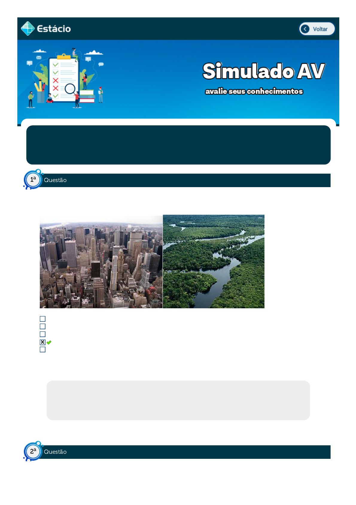 18/11/2020 Estácio: Alunos https://simulado.estacio.br/alunos/?user_cod=3108343&matr_integracao=202008441994 1/6 Disc.: INTRODUÇÃO AO PENSAMENTO GEOGRÁFICO Aluno(a): JAMAICON CHIARETTI GUIMARÃES 202008441994 Acertos: 10,0 de 10,0 18/11/2020 Acerto: 1,0 / 1,0 Por meio de uma constante interação com a natureza, o homem tem deixado suas marcas na Terra, transformando a natureza original em uma segunda natureza. Observe as imagens a seguir e, em seguida, marque a opção CORRETA. Os homens primitivos não possuíam nenhum tipo de saber geográfico Quando o homem se fixa no espaço geográfico ele não altera a natureza Os homens da pré-história não se relacionavam com a natureza O homem tem transformado a paisagem natural em paisagem cultural Os homens não têm cultura desde a pré-história Respondido em 18/11/2020 15:52:48 Explicação: Ao observar as diversas paisagens da superfície terrestre podemos perceber que o homem é um agente geográfico desde os primórdios da humanidade. Ele altera a natureza através da criação de uma série de elementos culturais. Ele constrói edificações, estradas, plantações, entre outros elementos, com a intenção de garantir a sua existência enquanto grupo social. Acerto: 1,0 / 1,0 (UFOP) - Leia o texto a seguir: [...] Fechado ao sul pelo morro, descendo escancelado de gargantas até o rio, fechavam-no, a oeste, uma muralha e um vale. De fato, infletindo naquele rumo, o Vaza-Barris, comprimido entre as últimas casas e as Questão1 a Questão2 a https://simulado.estacio.br/alunos/inicio.asp javascript:voltar(); 18/11/2020 Estácio: Alunos https://simulado.estacio.br/alunos/?user_cod=3108343&matr_integracao=202008441994 2/6 escarpas a pique dos morros sobranceiros, torcia para o norte feito um cañon fundo. A sua curva forte rodeava, circunvalando-a, depressão em que se erigia o povoado, que se trancava a leste pelas colinas, a oeste e norte pelas ladeiras das terras mais altas, que dali se intumescem até aos contrafortes extremos do Cambaio e do Caipá; e ao sul pela montanha. [...] CUNHA, Euclides da. Os Sertões. Disponível em: http://www.dominiopublico.gov.br/download/texto/bv000091.pdf. Acesso em: 4 abr. 2007. O texto acima descreve um(a): b) Território. e. Terreno d) Lugar. c) Região. a) Paisagem. Respondido em 18/11/2020 15:53:55 Explicação: Resposta correta: letra A Comentário: No fragmento, o conceito que define a descrição detalhada do espaço é a paisagem. Essa categoria refere-se aos aspectos perceptíveis do espaço geográfico, isto é, à forma como compreendemos o mundo a partir de nossos sentidos. Acerto: 1,0 / 1,0 Para a sistematização da Geografia, era necessário que a Terra toda fosse conhecida para que o seu estudo fosse pensado de forma unitária. As condições materiais para a realização deste conhecimento se concretizam através das grandes navegações e descobertas efetuadas pelos europeus a partir do século XV, e estarão plenamente efetivadas no século XIX. Dentre as opções abaixo, qual delas não pode ser considerada como elemento importante para esse momento histórico da ciência geográfica? As viagens realizadas por Pedro Álvares Cabral, que descobriu o Brasil, em 1500 Os registros de Fernão de Magalhães, que iniciou a primeira viagem de circunavegação da Terra, em 1519 As viagens de Vasco da Gama, que descobriu um novo caminho para o Oriente contornando a África, chegando a Calicute, na Índia, em 1498 O deslocamentos de Cristóvão Colombo, que descobriu a América, em 1492 As viagens de James Cook, que descobriu o Oriente Médio, em 1970 Respondido em 18/11/2020 15:54:26 Explicação: Todas as opções estão corretas, exceto a frase sobre as viagens de James Cook que, na verdade, descobriu a Austrália, em 1770. Aliás, 1970 já é século XX. Acerto: 1,0 / 1,0 Adaptado de CEPERJ 2013 Leia o texto a seguir: "A sociedade que consideramos, seja grande ou pequena, desejará sempre manter sobretudo a posse do território sobre o qual e graças ao qual ela vive. Quando essa sociedade se organiza com esse objetivo, ela se transforma em Estado." Fonte: MORAES, Antônio Carlos Robert. Geografia Pequena História Crítica. São Paulo: Ática, 1990. p. 76. Questão3 a Questão4 a 18/11/2020 Estácio: Alunos https://simulado.estacio.br/alunos/?user_cod=3108343&matr_integracao=202008441994 3/6 A análise central da obra da qual foi extraída o fragmento anterior é a relação entre o Estado e o espaço. Contribuindo consideravelmente para a formulação da geopolítica e do conceito de território, a obra em questão é da autoria de: Alexander von Humboldt Karl Ritter Yves Lacoste Friedrich Ratzel Cláudio Ptolomeu Respondido em 18/11/2020 15:55:35 Explicação: Friedrich Ratzel foi o fundador da Geografia Humana e sofreu grande influência das ciências naturais, particularmente daquelas oriundas do evolucionismo darwinista. De acordo com Ratzel, como na luta das espécies pelo domínio do espaço, que contém sua nutrição, os homens organizam-se em Estados para os quais o espaço é a fonte de vida. Os Estados necessitam de espaço, como as espécies e, por isso, lutam pelo seu domínio. A subsistência, energia, vitalidade e o crescimento dos Estados têm como motor a busca e a conquista de novos espaços, de novos territórios. Acerto: 1,0 / 1,0 CEPERJ 2013 A origem da geografia é antiga. Desde a Antiguidade, inúmeros pensadores elaboraram estudos que tinham o enfoque geográfico, mesmo que esses estudos permeassem, também, vários outros campos do conhecimento. Kant, Humboldt, Ritter, Ratzel, La Blache, Lacoste e Santos. São referências no desenvolvimento da ciência geográfica. Cada qual com sua análise, negando e/ou agregando conhecimento, contribuíram para a elaboração da Geografia que conhecemos hoje. Destacando o posicionamento do geógrafo francês Paul Vidal de La Blache, é correto afirmar que sua contribuição para o desenvolvimento da Geografia está pauta