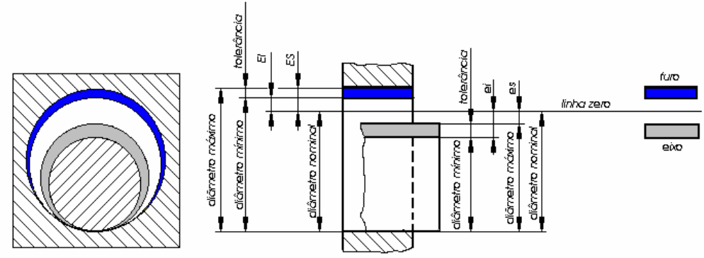 DESENHO TÉCNICO II Cláudio da Silva Andretta Rosangela De Sordi Afonso Valdemir Alves Junior TOLERÂNCIAS E AJUSTES (SISTEMA ISO) NBR 6158 GENERALIDADES O sistema ISO de tolerâncias e ajustes é relativo às tolerâncias para dimensões de peças uniformes e os ajustes correspondem a sua montagem. Para simplificar, somente as peças de seção circular são previstas explicitamente. No entanto tudo que se diz a respeito deste tipo de peças aplica-se integralmente a todas peças uniformes. Em particular “furo” e “eixo” são termos convencionalmente utilizados para designar características internas ou externas de uma peça qualquer: largura de um rasgo, espessura de uma chaveta, etc. TOLERÂNCIA Pela inevitável imprecisão dos processos de fabricação, uma peça não pode ser executada rigorosamente a um dimensão fixa, mas para que ela cumpra a sua função, é suficiente que ela esteja entre dois limites admissíveis e a diferença entre eles constitui a tolerância. DEFINIÇÕES Dimensão Número que expressa em uma unidade particular o valor numérico de uma dimensão linear. Dimensão nominal Dimensão a partir da qual são derivadas as dimensões limites pela aplicação dos afastamentos superior e inferior. Dimensão efetiva Dimensão de um elemento obtido pela medição. Dimensões limites Dimensões máxima e mínima admissíveis de um elemento dentre as quais se encontra a dimensão efetiva. Elemento Parte em observação de uma peça. Afastamentos fundamentais Diferença algébrica entre uma dimensão (dimensão efetiva, dimensão limite, etc.) e a correspondente dimensão nominal. Afastamento superior Furo: ES = Dmax - Dnom Eixo: es = Dmax - Dnom Afastamento inferior Furo: EI = Dmin - Dnom Eixo: ei = Dmin - Dnom Afastamento fundamental Afastamento que define a posição do campo de tolerância com base na linha zero. Linha zero Na representação gráfica é a materialização da cota nominal. Por convenção, já que a linha zero é uma reta desenhada horizontalmente, os afastamentos positivos são mostrados acima e os negativos abaixo da mesma. Campos de tolerância Em uma representação gráfica das tolerâncias, é o campo compreendido entre as duas linhas, representando as dimensões máxima e mínima, é definido pela magnitude da tolerância e sua posição relativa à linha zero. 38 DESENHO TÉCNICO II Cláudio da Silva Andretta Rosangela De Sordi Afonso Valdemir Alves Junior TOLERÂNCIAS E AJUSTES (SISTEMA ISO) NBR 6158 TOLERÂNCIA Diferença entre a dimensão máxima e a mínima, ou seja, diferença entre o afastamento superior e o afastamento inferior. A tolerância é um valor absoluto, sem sinal. Tolerância padrão (IT) Qualquer tolerância pertencente a este sistema. O símbolo IT significa International Tolerance Graus de tolerância padrão (IT) Grupo de tolerâncias considerado como correspondente ao mesmo nível de precisão para todas as dimensões nominais. Os graus de tolerância padrão são designados pelas letras IT e por um número. O sistema prevê um total de 20 graus de tolerância padrão, IT1, IT2, ..., IT18 são de uso geral. IT01 e IT0 são dadas para fim de informação. Valores dos graus de tolerância padrão. Para furos e eixos, ver tabela 1. Posição dos campos de tolerância A posição é definida pelo valor normalizado dos afastamentos fundamentais e é função da dimensão nominal, mas na maioria dos casos a posição do campo de tolerância é independente do grau de tolerância padrão. Furos O valor do afastamento fundamental é representado por letras maiúsculas (uma, ou por vezes duas) A, B, C, CD, ..., Z, ZA, ZB, ZC. Eixos O valor do afastamento fundamental é representado por letras minúsculas (uma, ou por vezes duas) a, b, c, cd, ..., z, za, zb, zc. Observações: O afastamento fundamental é nulo para as posições H e h. As letras I, i, L, l, O, o, Q, q, não são usados para evitar confusão com 1 ou 0 (zero). Para JS e js : afastamentos limites ( ES e EI ou es e ei ) são iguais ao grau de tolerância padrão dividido por dois, ou seja, + ITn/2 O quadro ao lado apresenta a representação esquemática dos afastamentos fundamentais. Valores dos afastamentos fundamentais. Para eixos, ver tabela 2. Para furos, ver tabela 3. 39 DESENHO TÉCNICO II Cláudio da Silva Andretta Rosangela De Sordi Afonso Valdemir Alves Junior TOLERÂNCIAS E AJUSTES (SISTEMA ISO) NBR 6158 Classe de tolerância Combinação de letras representando o afastamento fundamental, seguida por um número representando o grau de tolerância padrão. Exemplo: H7 (furos), h7 (eixos). Valores dos afastamentos superior e inferior Ver tabelas das páginas 8 e 9. Eixos Furos ei = es – IT ou es = ei + IT ES = EI + IT ou EI = ES – IT AJUSTES Relação resultante da diferença, antes da montagem, entre as dimensões de dois elementos a serem montados. Ajuste com folga Ajuste no qual sempre ocorre uma folga entre o furo e o eixo quando montados, isto é, a dimensão mínima do furo é sempre maior ou, em caso extremo, igual à dimensão máxima do eixo. Ajuste com interferência Ajuste no qual ocorre uma interferência entre o furo e o eixo quando montados, isto é, a dimensão máxima do furo é sempre menor ou, em caso extremo, igual à dimensão mínima do eixo. Ajuste incerto Ajuste no qual pode ocorrer uma interferência ou uma folga entre o furo e o eixo quando montados, dependendo das dimensões efetivas do furo e do eixo, isto é, os campos de tolerância do furo e do eixo se sobrepõem parcialmente ou totalmente. SISTEMA DE AJUSTES Sistema compreendendo eixos e furos pertencentes a um sistema de tolerâncias. Eixo-base Sistema de ajustes no qual as folgas ou interferências exigidas são obtidas pela associação de furos de várias classes de tolerâncias com eixos de uma única classe de tolerância. Neste sistema a dimensão do eixo é idêntica à dimensão nominal, isto é, o afastamento superior é zero. Furo-base Sistema de ajustes