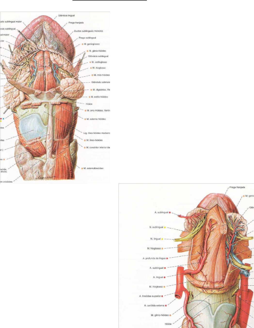 Odontologia – 2º semestre Músculos da língua Músculos extrínsecos da língua Músculo Genioglosso - Origem: Espinha geniana superior - Inserção: Língua e fibras posteriores do Hióide - Função: Projeta a língua para fora da cavidade oral, abaixando seu ápice Músculo Estiloglosso - Origem: Processo estilóide - Inserção: Margem da língua - Função: Traciona a língua súpero - posteriormente, elevando seu ápice Músculo Hioglosso - Origem: Corno maior do Hióide - Inserção: Margem da língua - Função: Abaixar a língua @ondadesorrir Odontologia – 2º semestre Músculos intrínsecos da língua Estão na própria língua, portanto, não possuem origem ou inserção Músculo longitudinal superior · Dispõe-se logo abaixo da mucosa do dorso da língua, desde a raiz até o ápice - Eleva o ápice da língua · Músculo longitudinal inferior · Dispõe-se profundamente à face inferior da língua, desde a raiz até o ápice - Abaixa o ápice da língua · Músculo transverso da língua · Entre o septo lingual e a margem da língua · Promove um achatamento laterolateral da língua · Músculo vertical da língua · Entre o dorso e a face inferior da língua · Promove um achatamento súpero-inferior da língua @ondadesorrir