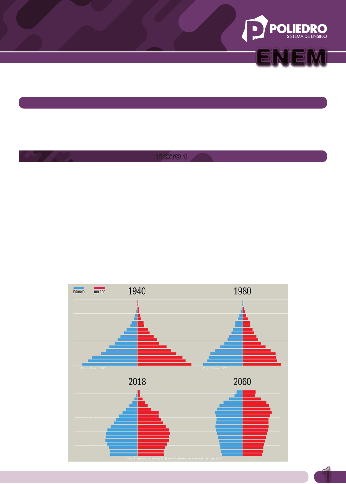 BALCÃO DE REDAÇÃO TEMA 14 – 2020 | Período de 11 a 17 de maio ENEM www.poliedroeducacao.com.br 1 PROPOSTA DE REDAÇÃO A partir da leitura dos textos motivadores e com base nos conhecimentos construídos ao longo de sua formação, redija um texto dissertativo-argumentativo, em modalidade escrita formal da língua portuguesa, sobre o tema Os desafios enfrentados pela terceira idade na sociedade contemporânea brasileira, apresentando proposta de intervenção que respeite os direitos humanos. Selecione, organize e relacione, de forma coerente e coesa, argumentos e fatos para a defesa do seu ponto de vista. TEXTO 1 Idosos indicam caminhos para uma melhor idade [...] De acordo com a Organização Mundial da Saúde (OMS), idoso é todo indivíduo com 60 anos ou mais. O Brasil tem mais de 28 milhões de pessoas nessa faixa etária, número que representa 13% da população do país. E esse percentual tende a dobrar nas próximas décadas, segundo a Projeção da População, divulgada em 2018 pelo IBGE. [...] A Pesquisa Nacional de Saúde (PNS), realizada pelo IBGE em 2013, mostrou que a cada quatro pessoas com 60 anos ou mais, pelo menos uma relatava participar de atividades sociais organizadas [...]. Entre as mulheres, o percentual era maior, chegando a quase 30%. Mas a participação dos homens também foi significativa, ficando bem pouco abaixo dos 20%. [...] A população idosa tende a crescer no Brasil nas próximas décadas, como aponta a Projeção da População, do IBGE, atualizada em 2018. Segundo a pesquisa, em 2043, um quarto da população deverá ter mais de 60 anos, enquanto a proporção de jovens até 14 anos será de apenas 16,3%. Segundo a demógrafa do IBGE, Izabel Marri, a partir de 2047 a população deverá parar de crescer, contribuindo para o pro- cesso de envelhecimento populacional – quando os grupos mais velhos ficam em uma proporção maior comparados aos grupos mais jovens da população. 90+ 75-79 55-59 15-19 0-4 35-39 90+ 75-79 55-59 15-19 0-4 35-39 OS DESAFIOS ENFRENTADOS PELA TERCEIRA IDADE NA SOCIEDADE CONTEMPORÂNEA BRASILEIRA BALCÃO DE REDAÇÃO – TEMA 14 – 2020 www.poliedroeducacao.com.br 2 A relação entre a porcentagem de idosos e de jovens é chamada de “índice de envelhecimento”, que deve aumentar de 43,19%, em 2018, para 173,47%, em 2060. Esse processo pode ser observado graficamente pelas mudanças no formato da pirâmide etária ao longo dos anos, que segue a tendência mundial de estreitamento da base (menos crianças e jovens) e alargamento do corpo (adultos) e topo (idosos). [...] Também de acordo com a PNS, 17,3% dos idosos apresentavam limitações funcionais para realizar as Atividades Instrumentais de Vida Diária (AIVD), que são tarefas como fazer compras, administrar as finanças, tomar remédios, utilizar meios de transporte, usar o telefone e realizar trabalhos domésticos. E essa proporção aumenta para 39,2% entre os de 75 anos ou mais. Porém, uma boa saúde também é pré-requisito para que as pessoas possam trabalhar até mais velhas. A professora titular de demografia da Universidade Federal de Minas Gerais (UFMG), Simone Wajnman, lembra que no Brasil os trabalhadores idosos vêm de uma época em que estudar era privilégio de uma elite e, portanto, têm baixos níveis de escolaridade. “O que a gente vê hoje no mercado brasileiro é que quem tem mais chance de continuar trabalhando nas idades mais elevadas são aquelas pessoas que têm mais escolaridade, que exercem ocupações que não dependem de força física”, diz. PERISSÉ, Camille; MARLI, Mônica. “Idosos indicam caminhos para uma melhor idade”. Agência IBGE Notícias. 19 mar. 2019. Disponível em: <https:// agenciadenoticias.ibge.gov.br/agencia-noticias/2012-agencia-de-noticias/noticias/24036-idosos-indicam-caminhos-para-uma-melhor-idade>. Acesso em: 29 abr. 2020. TEXTO 2 Violência contra idosos é crime; saiba como denunciar [...] Um levantamento feito pelo Ministério da Mulher, da Família e dos Direitos Humanos revelou que o número de denúncias de violência contra idosos aumentou 13% em 2018, em relação ao ano anterior. Foram registrados 102 casos por dia, sendo a maioria (85,6%) cometida nas residências das vítimas, por filhos (52,9%) e netos (7,8%). [...] Já a Organização Mundial da Saúde (OMS) diz que um em cada seis idosos é vítima de algum tipo de violência. Esse dado faz parte de um relatório publicado na revista Lancet Global Health, que alerta que quase 16% das pessoas com mais de 60 anos sofreram algum tipo de abuso. [...] A violência contra idosos pode ser definida como qualquer ato, ou ainda a ausência de uma ação, que cause dano ou incômodo à pessoa idosa. Para ser considerada como violência contra o idoso, o ato pode ser único ou repetitivo e deve acontecer em uma relação em que haja expectativa de confiança. Estão entre os casos mais comuns os abusos psicológicos, abusos financeiros, negligência, abusos físicos e os abusos sexuais. [...] No Brasil, conforme o Estatuto do Idoso (Lei 10.741), a violência contra idosos é crime e, portanto, não deve ser encarada como algo normal. Discriminar pessoa idosa pode levar o agressor à prisão por até cinco anos e ainda pagar multa. A pena pode ser aumentada se houver agressão física, se o agressor for responsável pelo idoso. [...] “Violência contra idosos é crime; saiba como denunciar”. Catraca Livre. 14 ago. 2019. Disponível em: <https://catracalivre.com.br/cidadania/violencia- contra-idosos/>. Acesso em: 29 abr. 2020. TEXTO 3 Pandemia dá vazão a preconceito represado contra idosos Muitos idosos, especialmente nas grandes cidades brasileiras, que precisam sair às ruas estão tendo que enfrentar olhares enviesados, quando não comentários indignados, de outros cidadãos mais jovens que acreditam que eles não deveriam estar ali. Seria essa atitude de indignação diante da presença de idosos nas ruas, nos transportes públicos ou no