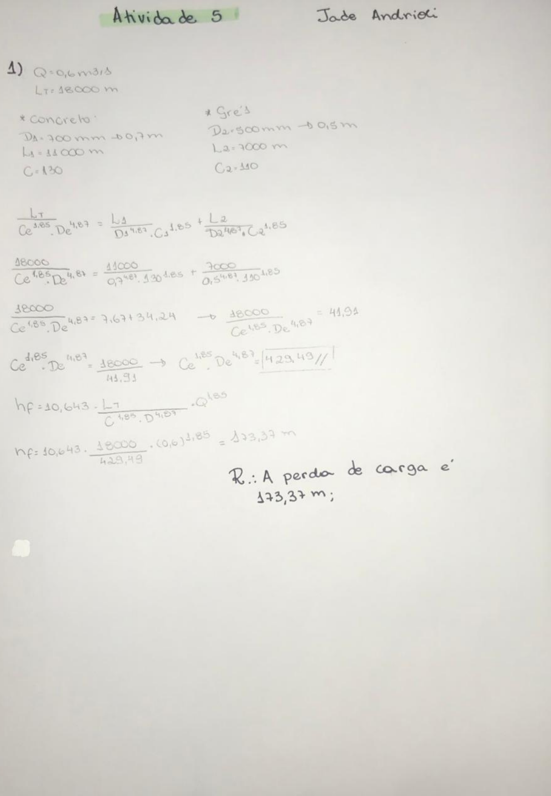 No dimensionamento de uma bomba para um sistema de bombeamento de água, o engenheiro deve calcular a altura manométrica total, que representa a ene...
