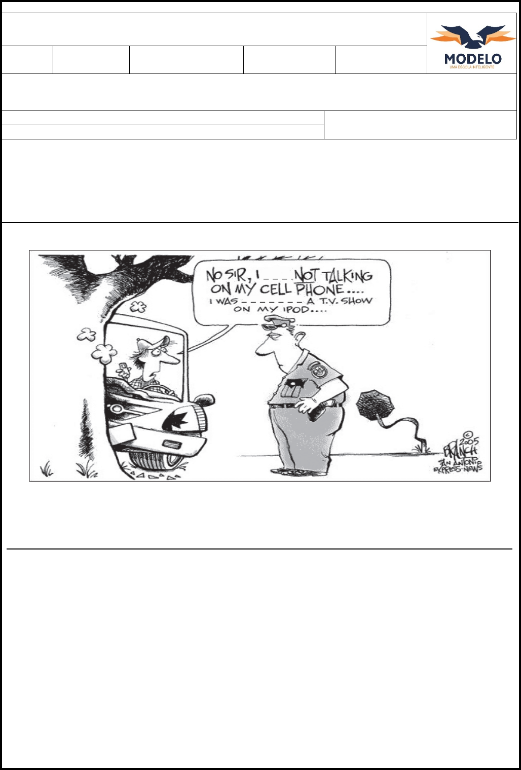 ATIVIDADES – LEM-INGLÊS - ROTEIRO 12 SIMPLE PAST and PAST CONTINUOUS Turma: 1.º ano Segmento: E. M. Data: / / Valor: Nota: Aluno(a): ________________________________________________________________ Professor: Horomar França Assinatura do responsável: Coordenação: Neusa Amaral INSTRUÇÕES: « Estas atividades poderão ser avaliativas; « Precisam ser enviadas para o professor por e-mail até o dia 16/07/2020; « Não é necessário imprimir, as respostas podem ser anotadas em uma folha separada; 1.What is the best option to complete the gaps in the following cartoon? a) wasn’t; watched. b) was; watched. c) wasn’t; watching. d) was; watching. 2.Complete the sentences with the correct form of the verbs. Use simple past or past conti- nuous tenses. a) When my mother _____________ us for dinner we _____________ the video game. (to call) (to play) b) Charles and Bill _____________ at the club when it _____________ to rain. (to swim) (to start) c) Last night while my brother and I _____________ the homework our neighbors _____________ a party. (to do) (to have) d) I _____________ a book last night when the lights _____________ .(to read) (go out) 3. Complete as orações a seguir com o past continuous. a) I _____________ (watch) TV while they _____________ (listen) to music. b) It _____________ (rain) this morning when I got up. c) While _____________ (take) a shower, Jennifer called me up. d) When I arrived home, my parents _____________ (sleep). e) When Bob called we _____________(have) dinner. f) The maid cut her finger while she _____________ (cut) the vegetables. 4. (AFA) Mark the option that completes the gaps respectively. “I ________ in Freeport, Illinois. My first job was at the local carwash. I ________ sixteen years old. I ________ every day, all summer, for a dollar an hour. I worked with ten other guys. All of us ________from different racial, religious and economic backgrounds. We had to clean cars in teams, and we quickly learned to work together. a) woke up / were / came back / came b) was born / had / traveled / got c) grew up / was / worked / were d) lived / got / tried / lived 5. (EFOMM) On the way home I _________Jane at the bus stop. She ______________a be- autiful dress but she _____________happy. a) met – was wearing – didn’t look b) meet – was wearing – didn’t look c) met – wore – doesn’t looked d) meet – is wearing – didn’t look e) met – wears – doesn’t looked 6. (PUC-CAMPINAS) Assinale a alternativa que traz os verbos entre parênteses em sua for- ma correta para preencher a seguinte frase: “The dinosaur (live) 100 million years ago. It (walk) on two legs. Its arms (be) very small. Its mouth (be) very big. It (have) long teeth. A alternativa correta é: a) lived, walked, were, was, had b) was living, was walking, was, were, had c) lived, walked, was, were, was having d) lived, was walking, was, were, were having e) lives, were walking, was, were, had