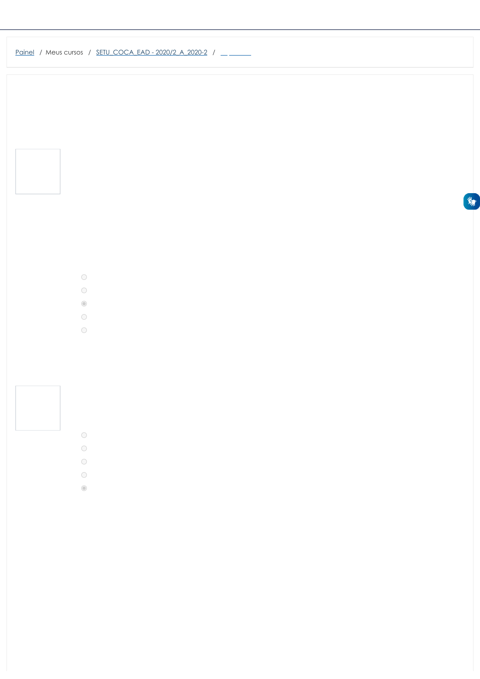 / Painel / Meus cursos / SETU_COCA_EAD - 2020/2_A_2020-2 / Supere-se Questão 1 Completo Atingiu 10,00 de 10,00 Questão 2 Completo Atingiu 10,00 de 10,00 Iniciado em segunda, 23 Nov 2020, 15:39 Estado Finalizada Concluída em segunda, 23 Nov 2020, 15:57 Tempo empregado 17 minutos 40 segundos Avaliar 60,00 de um máximo de 100,00 Ainda acerca do Significado do Trabalho, julgue os itens a seguir: 1 – Na sociedade ocidental em que vivemos, centrada no mercado e orientada por relações típicas de conveniência (Ramos, 1989), o trabalho está associado ao conceito de atividade remunerada, geralmente realizada sob a denominação de emprego, em contextos burocratizados, repletos de normas e rotinas, em evidentes incompatibilidades com a vida familiar e social das pessoas. 2 – As relações de poder estão se alterando não só no topo da hierarquia organizacional. O chefe do escritório e o supervisor de “chão de fábrica” estão descobrindo que os trabalhadores já não aceitam mais ordens “cegamente”. 3 – Em que pesem as mazelas e metamorfoses processadas na atualidade, o trabalho ocupa um pequeno espaço na constituição da existência humana. Marque a a alternativa correta: Escolha uma: a. F; F; F b. V; F; V c. V; V; F d. V; V; V e. F; F; V Sua resposta está correta. O aconselhamento de carreira pode ocorrer em diferentes formas de interações entre profissionais e organizações. São exemplos dessas formas de interações, EXCETO: Escolha uma: a. Mapeamento de potenciais de alto desempenho b. Entrevista de emprego c. Processo de avaliação de desempenho d. Gestão do dia a dia e. Processo de desligamento Sua resposta está correta. https://avagraduacao.unievangelica.edu.br/disciplinasonline/my/ https://avagraduacao.unievangelica.edu.br/disciplinasonline/course/view.php?id=3794 https://avagraduacao.unievangelica.edu.br/disciplinasonline/mod/quiz/view.php?id=298978 / Questão 3 Completo Atingiu 10,00 de 10,00 Questão 4 Completo Atingiu 0,00 de 10,00 Questão 5 Completo Atingiu 0,00 de 10,00 Os movimentos das pessoas para fora da organização, decorrentes da decisão da pessoa de se retirar de forma definitiva do mercado de trabalho ou de mudar de carreira ou, ainda, decorrentes de decisão da organização, da pessoa ou de ambos, objetivando extinguir a relação de trabalho, são próprios do processo de Escolha uma: a. transferência b. internalização c. extradição d. recolocação e. expatriação Sua resposta está correta. Nacional e internacionalmente, o coaching tem se expandido do mundo esportivo para áreas relacionadas com a educação, a gestão de empresas e o desenvolvimento de recursos humanos. Esse movimento acontece porque, desde a sua concepção, o coaching é definido como uma maneira de orientar, ensinar e instruir indivíduos. Existem alguns tipos de coaching. O coaching no trabalho pode ser definido como: Escolha uma: a. um processo de coaching que se dá no contexto de trabalho, com empregados não executivos. Representa um coaching on- the-job conduzido por gerentes de linha e supervisores, com o objetivo de aumentar a produtividade e o desenvolvimento individual das habilidades dos trabalhadores, além de aprimorar sua compreensão dos requisitos do cargo b. relacionamento no qual um cliente se compromete com um coach visando facilitar sua transformação em um líder mais efetivo c. é um processo sistemático, focado em soluções e orientado para resultados, no qual visa-se pelo aprimoramento da experiência de vida e do desempenho do indivíduo em vários domínios (como determinado pelo mesmo), conduzindo ao aprendizado auto direcionado e crescimento pessoal d. uma relação de ajuda formada entre um cliente que possui autoridade gerencial e responsabilidade em uma organização, e um consultor que utiliza uma variedade de técnicas comportamentais e métodos para auxiliar o cliente a alcançar um conjunto de metas mutuamente identificadas para aprimorar o desempenho e a satisfação pessoal, para consequentemente melhorar a efetividade da organização do cliente através de um acordo de coaching formalmente definido e. representa apenas uma ou uma série de conversas colaborativas com um profissional treinado que opera sob um código de ética. O processo é fundamentado em abordagens de coaching baseadas em evidências, incorporando teorias e ferramentas sobre carreira, visando chegar a um resultado positivo para o cliente em relação a sua realização pessoal e profissional, assim como nas decisões de carreira Sua resposta está incorreta. O Coaching de carreira é a profissão que tem como principal objetivo auxiliar pessoas que estão no processo de mudança em suas carreiras. Podemos destacar algumas vantagens do coaching de carreira, tais como: Escolha uma: a. mais conscientização dos colaboradores a respeito do potencial que têm e das responsabilidades que podem ressignificar e assumir, tomando protagonismo de suas práticas b. maior domínio do chefe sobre os colaboradores, levado à maior unidade da equipe c. áreas da organização mais centradas em suas atividades, de maneira que os colaboradores passem a não se distrair mais com questões de outras áreas d. diminuição do número de psicólogos nas organizações pela falta de necessidade que vai se apresentando com as melhorias alcançadas e. integração entre múltiplas áreas para o alcance de metas gerais e desvio de foco sobre especificidades Sua resposta está incorreta. https://avagraduacao.unievangelica.edu.br/disciplinasonline/mod/lti/view.php?id=298946 https://avagraduacao.unievangelica.edu.br/disciplinasonline/mod/lti/view.php?id=298946 / Questão 6 Completo Atingiu 0,00 de 10,00 Questão 7 Completo Atingiu 10,00 de 10,00 Questão 8 Completo Atingiu 10,00 de 10,00 Sobre o Desenvolvimento de habilidades necessárias para a carreira, julgue os itens a seguir: 1 - Pesquisas indicam que inúmeras práticas organizacionais distintas podem melhorar a ret