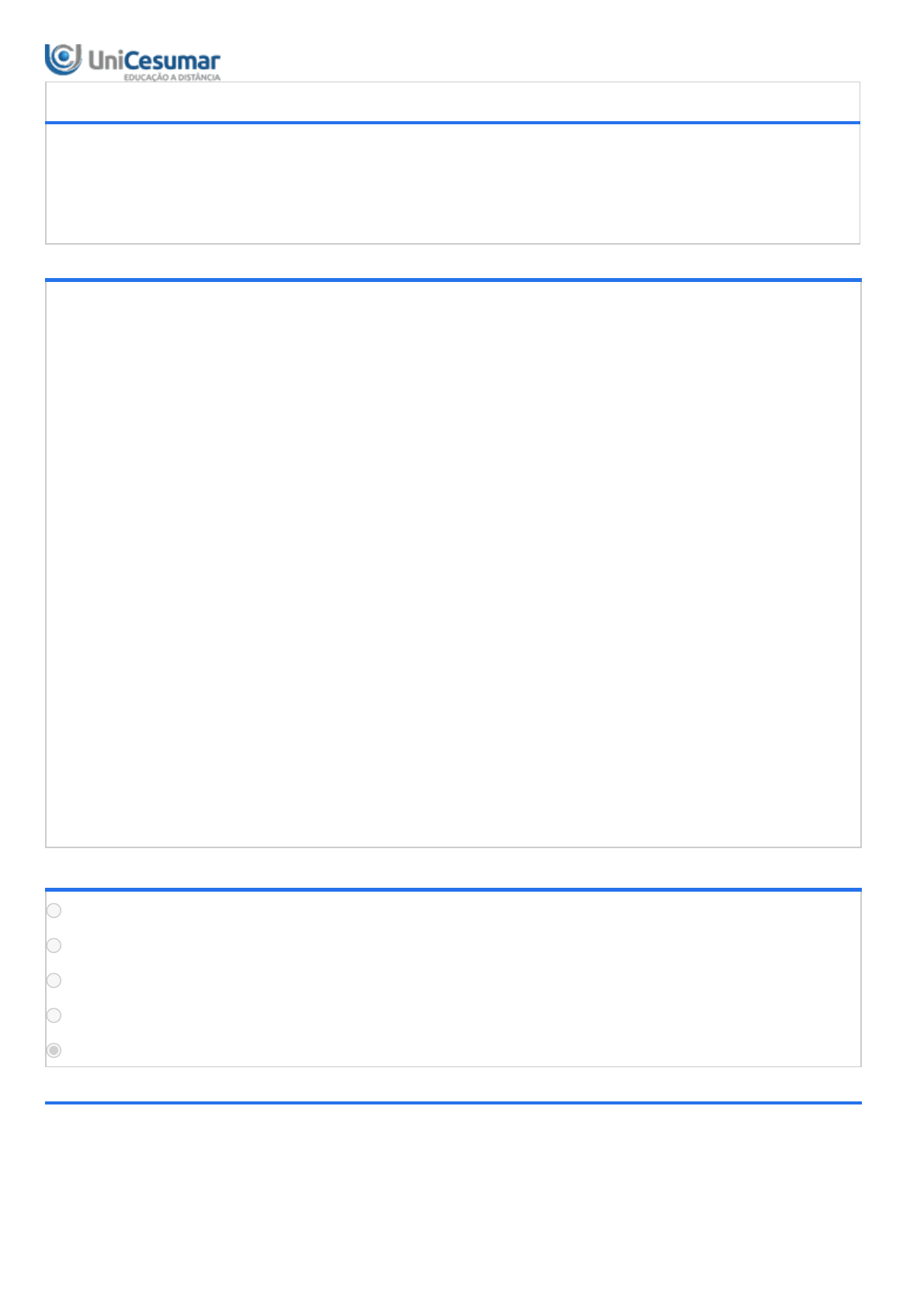 25/11/2020 Unicesumar - Ensino a Distância 1/6 ATIVIDADE 01 - EDU - ESPORTES COLETIVOS: BASQUETE E HANDEBOL - 2018C2 Período:04/09/2018 22:30 a 11/09/2018 23:59 (Horário de Brasília) Data Final:21/09/2018 23:59 valendo 50% data nota! Status:ENCERRADO Nota máxima:0,50 Gabarito:Gabarito será liberado no dia 23/09/2018 00:00 (Horário de Brasília) Nota obtida:0,50 1ª QUESTÃO A valorização da estruturação do processo de instrução e o tratamento didático das tarefas são fundamentais para que os estudantes possam adquirir novas habilidades motoras. Visto que, no Modelo Desenvolvimentista existe uma preocupação de que essa abordagem assuma a responsabilidade com os diferentes domínios da aprendizagem psicomotora, afetiva e cognitiva (COSTA; KRAVCHYCHYN, 2018). COSTA; KRAVCHYCHYN. Esportes Coletivos Basquete e Handebol. Maringá: Unicesumar, 2018. Considerando as informações mencionadas acima, associe as duas colunas, relacionando os diferentes domínios de aprendizagem com os seus respectivos enfoques. (1) Pscimotor ( ) Neste domínio, ocorre a assimilação, a compreensão dos movimentos, princípios, estratégias e táticas realizadas durante a a aprendizagem. (2) Afetivo ( ) Neste domínio, a preocupação é o ensino de habilidades motoras, como: saltos, arremessos e rolamentos. (3) Cognitivo ( ) Neste domínio, os professores devem ter como objetivo trabalhar com o sentimento dos alunos, suas atitudes, valores e comportamentos sociais. A sequência correta desta classificação é: ALTERNATIVAS 1; 2; 3. 2; 1; 3. 3; 2; 1. 2; 3; 1. 3; 1; 2. 2ª QUESTÃO 25/11/2020 Unicesumar - Ensino a Distância 2/6 Desde os anos 1960, o ensino dos esportes tem frequentemente a estruturação da técnica como prioridade (GARGANTA, 1998). Dessa forma, o objetivo do ensino da técnica é realizar uma ação mais econômica e efetiva dos movimentos, melhorando os resultados alcançados (COSTA; KRAVCHYCHYN, 2018). COSTA; KRAVCHYCHYN. Esportes Coletivos Basquete e Handebol. Maringá: Unicesumar, 2018. Considerando a estruturação da técnica como prioridade, analise as afirmativas como (V) para as verdadeiras e (F) para as falsas. I. A utilização da técnica é bastante comum, tanto nos treinamentos esportivos quanto na escola. II. Essa forma de ensino é pautada no modelo tecnicista, o qual o professor acredita que é necessário o ensino da técnica antes de ensinar conceitos táticos. III. A técnica é meramente uma etapa da preparação, sendo uma das formas de obter rendimento. As afirmações são respectivamente: ALTERNATIVAS V; V; V. V; F; V. V; F; F. F; F; V. V; V; F. 3ª QUESTÃO James Naismith teve como objetivo desenvolver uma modalidade que se adequasse ao clima da região, ao ponto de que sua prática pudesse ser realizada durante todo ano criou basquetebol. Isse se deu em 1891, no Colégio Internacional da Associação Cristã de Moços (ACM) de Springfield, Massachussets, Estados Unidos da América (EUA). KRAVCHYCHYN, Cláudio; COSTA, Luciane Cristina Arantes da. Esportes Coletivos: Basquetebol e Handebol. Maringá:UniCesumar, 2016. Dentro dessa temática, assinale a alternativa que corresponde às principais caraterísticas priorizadas por James Naismith para criar o basquetebol. I Para evitar o embate físico, a condução da bola só poderia ser feita quicando ou rolando. Tais regras estimularam o jogo coletivo pela necessidade de se passar a bola. O alvo também não poderia ser no chão. II James Naismith priorizava os grandes embates físicos. Pois, o basquetebol deveria ser um jogo motivante similar aos dos esportes coletivos praticados em ambientes abertos. III A maior preocupação de James Naismith foi a segurança. O basquetebol deveria ser um jogo motivante e que não tivesse embates físicos similares aos dos esportes coletivos praticados em ambientes abertos. Está correto o que se afirma em: ALTERNATIVAS 25/11/2020 Unicesumar - Ensino a Distância 3/6 I, II apenas. I, III apenas. II, III apenas. II apenas. I, II, III. 4ª QUESTÃO As habilidades técnicas dos esportes de invasão estão relacionados às características do jogo formal. Nos esportes coletivos, as situações que ocorrem durante o jogo se modificam a cada ataque, fazendo com que as habilidades técnicas estejam sujeitas a variações (COSTA; KRAVCHYCHYN, 2018). COSTA; KRAVCHYCHYN. Esportes Coletivos Basquete e Handebol. Maringá: Unicesumar, 2018 De acordo com o exposto acima, assinale a alternativa correta que representa essas variações. ALTERNATIVAS Amplitude, Frequência e Intensidade. Ritmo, Velocidade e Entrosamento. Agilidade, Ritmo e Velocidade. Ritmo, Intensidade e Amplitude. Velocidade, Escassez e Ritmo. 5ª QUESTÃO Reis e Castellani (2013) destacam que a denominação “fundamentos” é utilizada para os gestos técnicos e táticos em cada modalidade esportiva. A partir dos estudos da pedagogia do esporte nas últimas décadas, as produções científicas apresentaram o termo “técnico-tático”, ampliando o conceito do que é mais importante na aprendizagem inicial dos esportes coletivos. REIS, H. B.; CASTELLANI, R. M. O perfil das disciplinas de handebol das instituiçõesde ensino superior. Kinesis, v. 31, n.1, p. 19-38, jan./jun., 2013. Dentro dessa temática, assinale a alternativa correta que corresponde aos fundamentos do basquetebol. ALTERNATIVAS Os fundamentos do basquetebol são subdivididos em domínio de corpo, manejo de bola, drible, passes, arremessos e rebotes. Os fundamentos do basquetebol são subdivididos em passe, recepção, arremesso, drible e finta. Os fundamentos do basquetebol são subdivididos em domínio de corpo, manejo de bola, drible, passes, arremessos, finta e rebotes. Os fundamentos do basquetebol são subdivididos em domínio de corpo, manejo de bola, recepção, passes, arremessos e rebotes. Os fundamentos do basquetebol são subdivididos em manejo de bola, drible, passes, arremessos e rebotes. 6ª QUESTÃO 25/11/2020 Unicesumar - Ensino a 