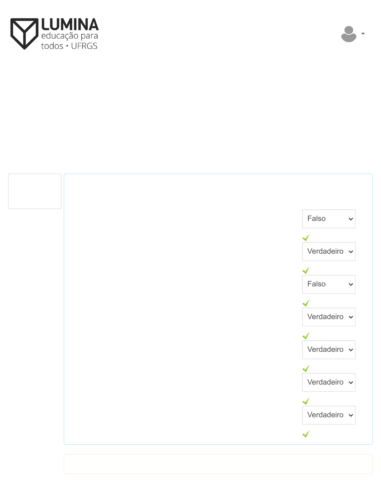 / Página inicial Lingüística, Letras e Artes Introdução ao Texto Acadêmico – 2ª edição Módulo 5 - Resumo e resenha acadêmica Questionário 5.2 Questão 1 Correto Atingiu 2,00 de 2,00 Iniciado em quarta, 25 Nov 2020, 15:25 Estado Finalizada Concluída em quarta, 25 Nov 2020, 15:34 Tempo empregado 9 minutos 8 segundos Avaliar 10,00 de um máximo de 10,00(100%) Comentários Parabéns, você alcançou a maior nota possível nesta avaliação! Leia a resenha “Administração na era das grandes transformações”, de Fabrício Binda Lírio e escolha Verdadeiro ou Falso: Não é possível perceber um balanço entre crítica e opinião elogiosa do resenhista no texto. Há um excesso de citações em discurso direto, o que torna a leitura por vezes monótona. A apresentação da obra está organizada em capítulos. A recomendação da Resenha poderia ser mais dirigida a um público leitor específico. O parágrafo de abertura está corretamente escrito, porém, seu estilo não instiga a leitura. A resenha apresenta descrição das credenciais do autor de forma articulada com o conteúdo do texto. A ficha catalográfica está redigida de acordo com as normas básicas de produção das referências bibliográficas. Sua resposta está correta. Falso Verdadeiro Falso Verdadeiro Verdadeiro Verdadeiro Verdadeiro Roger Scattolin de Matos https://lumina.ufrgs.br/ https://lumina.ufrgs.br/course/index.php?categoryid=6 https://lumina.ufrgs.br/course/view.php?id=72 https://lumina.ufrgs.br/course/view.php?id=72#section-7 https://lumina.ufrgs.br/mod/quiz/view.php?id=4049 https://lumina.ufrgs.br/ / Questão 2 Correto Atingiu 2,00 de 2,00 Questão 3 Correto Atingiu 2,00 de 2,00 Leia o resumo do artigo “Desenvolvimento sustentável, consumo e cidadania: um estudo sobre a (des)articulação da comunicação de organizações da sociedade civil, do Estado e das Empresas”. Em seguida, escolha V para as afirmações verdadeiras e F para as afirmações falsas. A contextualização é realizada de forma breve e sucinta. Os objetivos da pesquisa não apresentados de forma assertiva e direta. Não há separação clara entre a informação metodológica e os resultados da pesquisa. As conclusões não são escritas com marcador discurso explícito. Todas as palavras-chave dizem respeito ao cerne do conteúdo do artigo. Sua resposta está correta. Marque as seis (6) palavras mais importantes contidas no resumo. Em seguida, assinale a alternativa que contém essas palavras. Escolha uma: a. consumo – construção de direitos – consumo sustentável – comunicação – práticas de consumo – cidadania socioambiental b. consumo sustentável – sustentabilidade – sociedade do consumo – articulação governo e sociedade civil – cidadania socioambiental – discurso ambientalmente correto c. práticas de consumo – sustentabilidade – sociedade do consumo – sistema de valores – modelo civilizatório – cidadania socioambiental d. construção de direitos – modelo civilizatório – impactos do consumismo – comunicação – consumo sustentável – discurso ambientalmente correto e. consumo sustentável – sociedade do consumo – comunicação – articulação governo e sociedade civil – sistema de valores – discurso ambientalmente correto Sua resposta está correta. F V V V F / Questão 4 Correto Atingiu 2,00 de 2,00 Questão 5 Correto Atingiu 2,00 de 2,00 Dentre as frases abaixo, retiradas da Introdução do Artigo, aquela que melhor resume a Contextualização é: Escolha uma: a. O ato do consumo é pertencente à vida humana contemporânea, pois baliza as relações sociais e faz parte da dinâmica da economia. b. Por trás do suposto raciocínio consensual em torno do consumo politicamente correto, há interesses, disputas de poder e projetos díspares de organização social que se espelham na maneira de interagir com o meio ambiente na dinâmica da sociabilidade contemporânea. c. As discussões sobre consumo sustentável se caracterizam por importantes debates conceituais e grandes dificuldades de materialização de iniciativas que visem à promoção de padrões de desenvolvimento politicamente corretos. d. A proliferação de termos que, a princípio, remeteriam ao mesmo significado, tais como consumo verde, responsável, ético, solidário e consciente, entre outros, pode ser considerada uma expressão dos debates, desafios e dilemas construídos nesse campo, marcado pela polissemia. e. Como objeto de análise, foram elencadas organizações da sociedade civil que atuam no campo do consumo, empresas de comunicação que atuam com projetos de mobilização social para a cidadania ambiental e órgãos do Estado em seus três níveis, que desenvolvem políticas públicas no campo ambiental. Sua resposta está correta. A frase que melhor resume a Conclusão é: Escolha uma: a. O consumo na contemporaneidade cumpre diferentes funções e implica múltiplas referências como construção social, porém, nos padrões atuais, é insustentável, tanto na perspectiva ambiental quanto da construção de direitos e da cidadania. b. A repercussão pública sobre a questão ambiental tem movido governos, organizações da sociedade civil, empresas e cidadãos a se apropriarem da discussão da sustentabilidade, seja como um novo campo de ação, um elemento de regulação, uma exigência das formas de produção e consumo, seja como uma Bandeira defendida em todo o mundo. c. Uma análise da questão no Brasil indica que um dos impasses existentes está no campo da conscientização e mobilização da sociedade em torno de soluções para a promoção do desenvolvimento sustentável. d. As incertezas sobre a ampliação da esfera pública e a formação de cidadãos socioambientais, com a entrada do eco desenvolvimento no campo da política, merecem estudos mais complexos sobre as perspectivas que anunciam avanços nas lutas para a sustentabilidade. e. A pesquisa mostrou que o mov