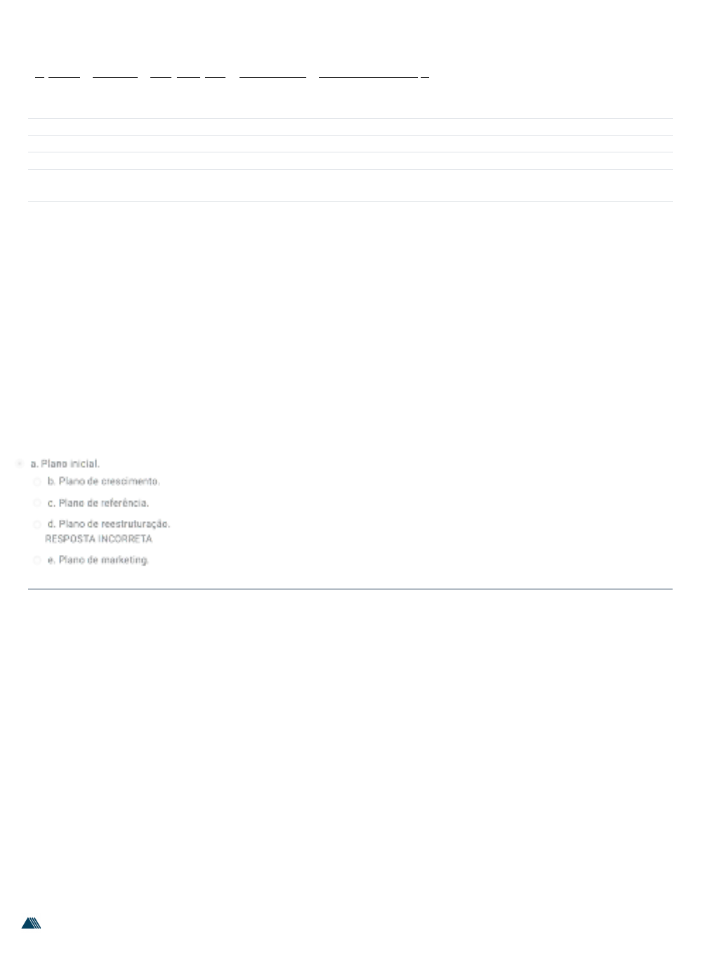 Página inicial / Meus Cursos / ENIAC_20202F_14451 / Materiais de Estudo / Unidade 1 - Exercícios de Cxação Iniciado em quarta, 5 ago 2020, 09.23 Estado Finalizada Concluída em quarta, 5 ago 2020, 09.30 Tempo empregado 6 minutos 30 segundos Avaliar 10,00 de um máximo de 10,00(100%) Questão 1 Correto Atingiu 1,00 de 1,00 Qual meu sonho de negócio? Como posso viabilizar uma empresa? O que espero para o meu empreendimento? Qual imagem e identidade pretendo passar? Que tipo de produto apresentar e como apresentar? Essas perguntas nos levam a pensar em como podemos viabilizar essas ideias de maneira formal, documental e objetiva. Quando você tem uma ideia de negócio e precisa colocar suas ideias no papel, você precisa de um norte que te oriente para as melhores opções e estratégias para seu futuro negócio. A alternativa que melhor se adequa ao plano de negócio acima citado é: Escolha uma: ! Unidade 1 - Exercícios de fixação: avaliação da tentativa https://portalacademico.eniac.edu.br/mod/quiz/review.php?atte... 1 de 6 24/11/2020 8:07 PM Questão 2 Correto Atingiu 1,00 de 1,00 Questão 3 Correto Atingiu 1,00 de 1,00 Simon Sinek (2018) elucida a teoria do Círculo Dourado (Golden Circle) como uma visão alternativa para o entendimento da inauência de algumas organizações e do quanto uma inovação pode afetar um segmento de clientes ou até mesmo o mundo todo. Nessa teoria, é possível aCrmar que o Círculo Dourado considera as inovações: Escolha uma: ! De acordo com a literatura, o plano de negócios ou plano empresarial é um documento elaborado pelo empreendedor que deseja criar, expandir ou reformular seu negócio. Nele, é possível demonstrar a viabilidade do empreendimento sob diversos pontos de vista. De modo geral, o plano de negócios pode ser comparado a um: Escolha uma: ! Unidade 1 - Exercícios de fixação: avaliação da tentativa https://portalacademico.eniac.edu.br/mod/quiz/review.php?atte... 2 de 6 24/11/2020 8:07 PM Questão 4 Correto Atingiu 1,00 de 1,00 Questão 5 Correto Atingiu 1,00 de 1,00 Ferramenta importante que pode ser usada a Cm de entender os clientes de forma mais aprofundada. Foi criada pela companhia de pensamento visual XPLANE e auxilia no desenvolvimento de uma compreensão melhor do ambiente do cliente, incluindo comportamentos, preocupações e aspirações. Que ferramenta é essa? Escolha uma: ! Suponha que você tem um negócio do ramo alimentício há 10 anos. A empresa vem crescendo e já tem três Cliais, todas apresentando resultados positivos. Entretanto, quando você criou a empresa, não foi elaborado um plano de negócio e agora você se vê diante de oportunidades de instalar novas Cliais em outras regiões. Com isso, assinale a opção que representa o tipo de plano de negócio mais adequado para a empresa: Escolha uma: ! Unidade 1 - Exercícios de fixação: avaliação da tentativa https://portalacademico.eniac.edu.br/mod/quiz/review.php?atte... 3 de 6 24/11/2020 8:07 PM Questão 6 Correto Atingiu 1,00 de 1,00 Questão 7 Correto Atingiu 1,00 de 1,00 Os objetivos iniciais e futuros de uma nova empresa, quando bem deCnidos, remetem a deCnição precisa das atividades, estruturação, orientação e estratégias, embasadas pela visão da gestão e do mercado. Com essas informações, podemos aferir o elemento necessário para efetivação do plano de negócio, com sua primeira atividade de validação, para que se obtenha um empreendimento equilibrado e formalizado. Sendo assim, os procedimentos considerados mais adequados, sensatos e seguros para as empresas que estão planejando um plano de crescimento são: Escolha uma: ! Osterwalder e Pigneur (2011), autores da metodologia Business Model Canvas, destacam nove componentes que formam esse quadro de modelo de negócios. Segundo a teoria, existem dois elementos que estão localizados na parte de baixo desse quadro. São eles: Escolha uma: ! Unidade 1 - Exercícios de fixação: avaliação da tentativa https://portalacademico.eniac.edu.br/mod/quiz/review.php?atte... 4 de 6 24/11/2020 8:07 PM Questão 8 Correto Atingiu 1,00 de 1,00 Questão 9 Correto Atingiu 1,00 de 1,00 Empreendedorismo é um tema muito discutido atualmente. Algumas competências e características são imprescindíveis a serem desenvolvidas pelo empreendedor ao elaborar o plano de negócios mais adequado a sua empresa. Quais são essas caracterísitcas? Escolha uma: ! Osterwalder e Pigneur (2011) mencionam que a construção de um modelo de negócios inovador pode ser encarada como um processo de cinco fases. Relacione cada fase com seu conceito: (I) Mobilização (II) Compreensão (III) Design (IV) Implementação (V) Gerenciamento ( ) Fase de evolução. ( ) Fase para colocar em prática o que foi pensado. ( ) Momento dos questionamentos. ( ) Preparação dos cenários. ( ) Imersão na ideia. A ordem correta de preenchimento das lacunas, de cima para baixo, é: Escolha uma: ! Unidade 1 - Exercícios de fixação: avaliação da tentativa https://portalacademico.eniac.edu.br/mod/quiz/review.php?atte... 5 de 6 24/11/2020 8:07 PM Questão 10 Correto Atingiu 1,00 de 1,00 É uma das ferramentas mais utilizadas para modelagem de negócios por sua capacidade de desenvolver estratégias e de criação de valor sob as perspectivas de todas as faces de um modelo de negócios. Recomenda-se que ela seja impressa em uma grande superfície para que as pessoas possam opinar, rascunhar e discutir. Que ferramenta é essa? Escolha uma: ! ◀ Assunto 02 - Tipos de planos de negócio Seguir para... Assunto 03 - Canvas ▶ Unidade 1 - Exercícios de fixação: avaliação da tentativa https://portalacademico.eniac.edu.br/mod/quiz/review.php?atte... 6 de 6 24/11/2020 8:07 PM