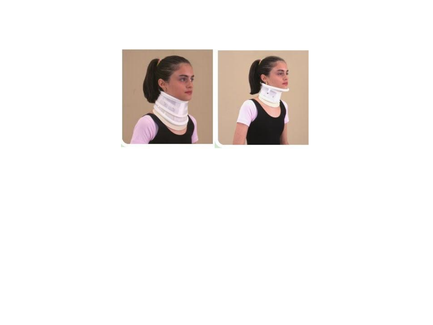 ÓRTESES PARA COLUNA CERVICAL • As órteses cervicais, também conhecidas como colares, auxiliam na imobilização da coluna cervical. Algumas podem ser feitas sob medida, mas, em sua maioria, são produzidas pela indústria e adquiridos pela pessoa conforme prescrição (EDELSTEIN, 2006). COLARES FLEXÍVEIS, SEMIRRÍGIDOS E RÍGIDOS • Os colares flexíveis para a coluna cervical são feitos de espuma de borracha, de espuma plástica ou feltro envolvido em algodão e preso com velcro. São enrolados no pescoço e promovem limitação parcial da coluna (EDELSTEIN, 2006). • Algumas órteses cervicais possuem laminados de polietileno para dar maior estabilidade, nestes casos são conhecidos como colares semirrígidos (EDELSTEIN, 2006). COLARES FLEXÍVEIS, SEMIRRÍGIDOS E RÍGIDOS • Os colares rígidos (Figura 2) são feitos em polipropileno e forrados´nos bordos superior e inferior com uma espuma de média densidade. • Podem ter ou não o apoio mentoniano. São conhecidos também como colar de Thomas (EDELSTEIN, 2006). Estes colares do tipo flexível, semirrígido e rígido são indicados em casos de hipermobilidade, pós-traumatismo, cervicalgias, torcicolos, pós-operatório de cirurgias cervicais e artrose e atrite leves. A imobilidade necessária à situação é o critério para indicar um ou o outro tipo (EDELSTEIN, 2006). Figura Colar rígido. Fonte: Arquivo pessoal de Michel Davitt, 2014 COLAR PHILADELPHIA • Colar Philadelphia (1971) – espuma de polietileno com reforço vertical anterior. • Se estende desde o queixo até o manúbrio, na frente, e tuberosidades occipitais até a região acima dos ângulos superiores das escapulas, nas costas. • Alguns modelos têm um orifício na frente para favorecer os indivíduos com traqueostomia. • Indicação: mesma do colar macio, rígido ou semirrígido, porém, usar em situações que exigem maior imobilidade da coluna cervical. Pode usar para controlar cicatrização em pessoas com queimaduras (EDELSTEIN, 2006). Figura 3. Colar Philadelphia. Fonte: Arquivo pessoal de Michel Davitt, 2014. ÓRTESES SOMI (IMOBILIZADOR ESTERNO-OCCIPITO-MANDIBULAR) • Indicação: imobilização da coluna cervical. • Porção superior em contato com o queixo anteriormente e com o occipital posteriormente, e sua parte inferior repousa sobre o tórax, ao nível do esterno, e sobre a parte superior da coluna torácica na região posterior. • A esta órtese podem ser acopladas hastes verticais, que podem ser ajustáveis, que se estendem da parte superior para a inferior (EDELSTEIN, 2006). ÓRTESES SOMI (IMOBILIZADOR ESTERNO-OCCIPITO-MANDIBULAR) • SOMI com 2, 3 ou 4 hastes. • 2 hastes: limita a flexão e extensão do pescoço, uma vez que as hastes se encontram na linha média anterior e posterior, porém, não são muito eficazes para controlar a rotação e flexão lateral (EDELSTEIN, 2006). • 3 hastes (imobilizador esternooccipito-mandibular (IEOM), apresenta haste vertical na linha média anterior que termina em uma placa mandibular e 2 hastes verticais curvas que vão deste o tórax anterior até o occipital. • Indicação: pessoas que permanecem em supino e necessitam de limitação dos movimentos da cervical (EDELSTEIN, 2006). ÓRTESES SOMI (IMOBILIZADOR ESTERNO-OCCIPITO-MANDIBULAR) • 4 hastes verticais apresenta duas hastes anteriores e duas posteriores que estão fixadas nas placas mandibular e occipital. • Eficaz em situações que requerem limitação dos movimentos de flexão, extensão, rotação e flexão lateral da coluna cervical (EDELSTEIN, 2006).