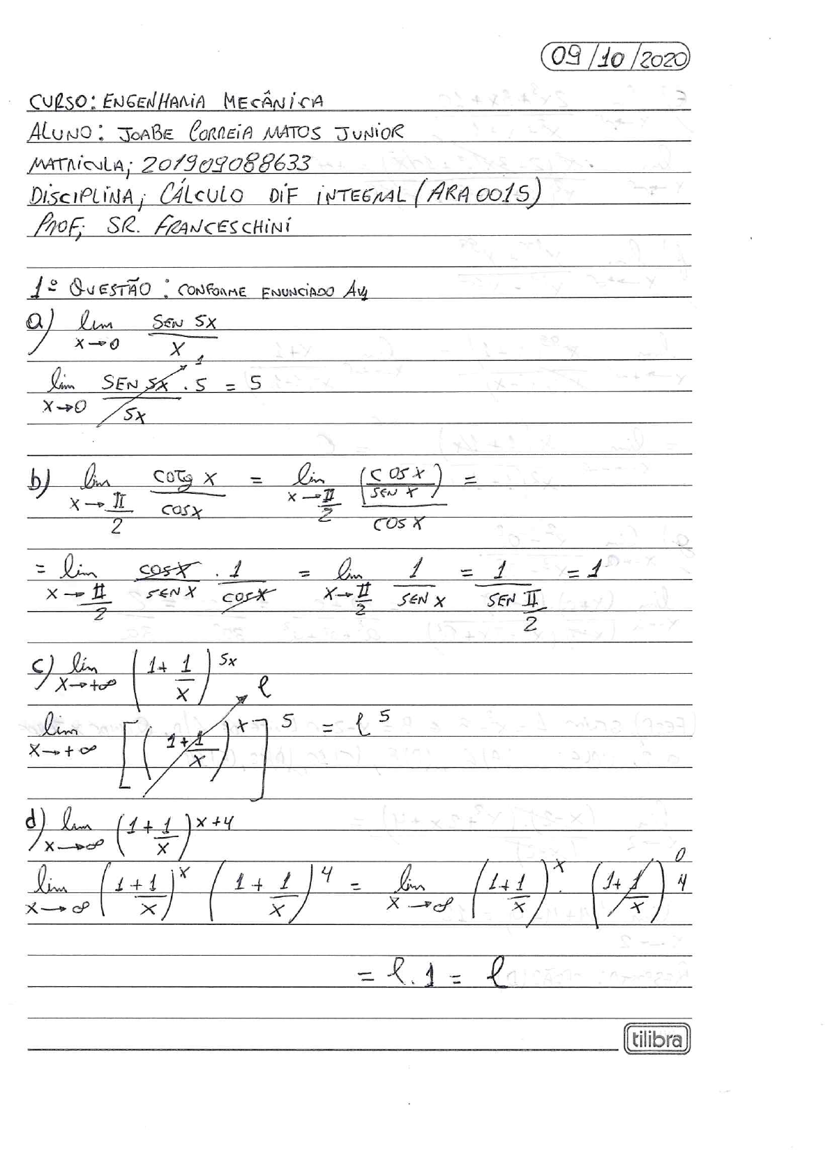 001 - Plano de aula Cálculo Diferencial e Integral - ARA0015