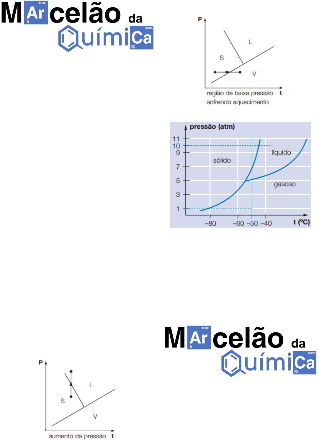 ☑ Extensivo de Química no YouTube ☑ Aula 05 – Química II Link da Aula: https://goo.gl/Ssdvxf 1- E 2- a) éter: 30 ºC; etanol: 78 ºC b) éter: gás; etanol: líquido 3- C 4- a, b, f, g 5- I — sólido; II — líquido; III — gasoso; IV — gasoso 6- B — A: sólido gasoso C — A: sólido líquido D — A: líquido gasoso 7- t = –56,6 ºC; P = 5,1 atm; ponto triplo 8- Seu ponto triplo está acima de 1 atm. 9- A temperatura dos freezers não é suficientemente baixa. 10- a) A é o mais volátil porque apresenta a maior pressão de vapor para qualquer temperatura indicada. b) 75 °C 11- B 12- a) A = 60 ºC; B = 70 ºC b) A = 0,7 atm 13- flecha c 14- a) b) 15- Observando o gráfico, temos: A –50 ºC e 1 atm, o dióxido de carbono encontra-se no estado gasoso. Mantendo-se a temperatura constante e elevando-se a pressão, temos que: •ao redor de 5 atm, ele passa para o estado líquido; •ao redor de 7 atm, ele passa para o estado sólido. Portanto, a –50 ºC e 10 atm ele está no estado sólido. Compartilhe o nosso trabalho com a galera 😉 https://goo.gl/Ssdvxf